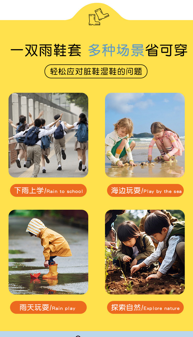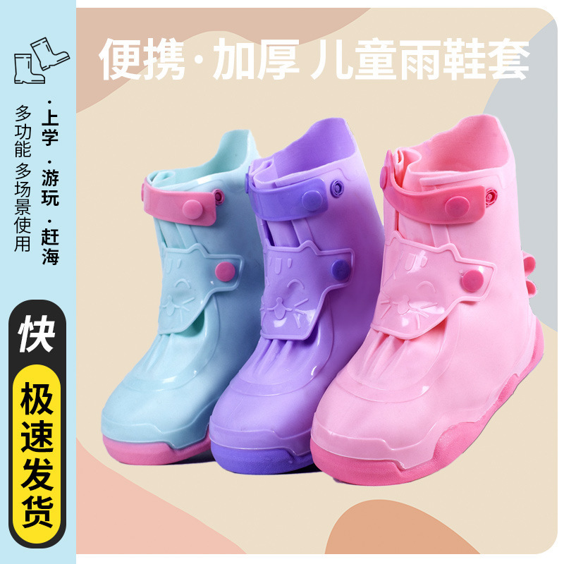 어린이 장화 커버 방수 및 미끄럼 방지 소년 소녀 방수 발 커버 아기 초등학생 두꺼운 내마모성 카드 어린이 장화스토어 가기
