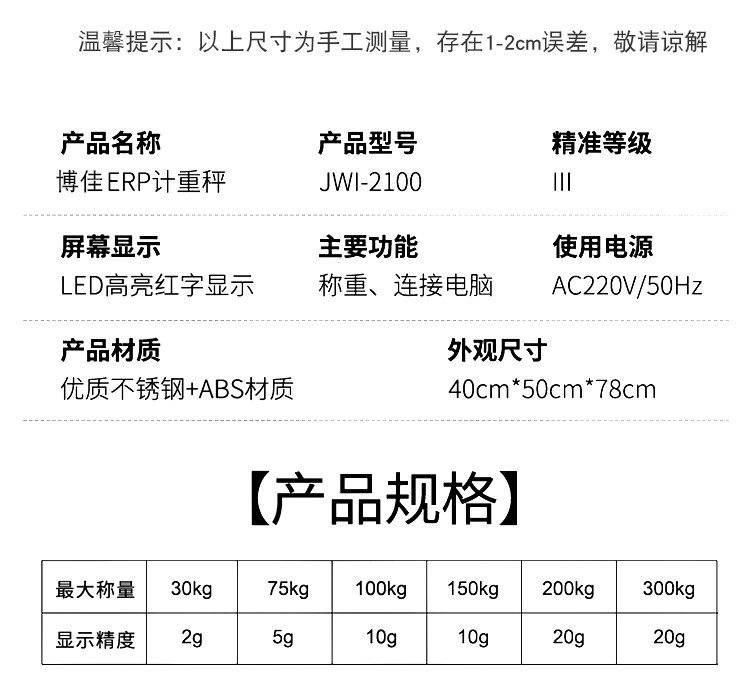 Bojia JWI-2100 Guanyi Wanli Niuma Bang Puyuan Sumpulse ERP 특수 전자 저울 USB 무선 컴퓨터 연결스토어 가기