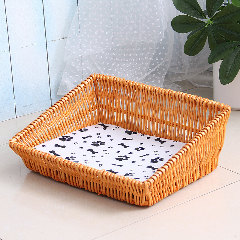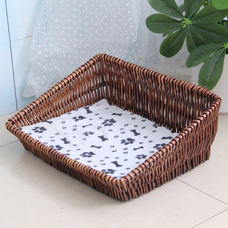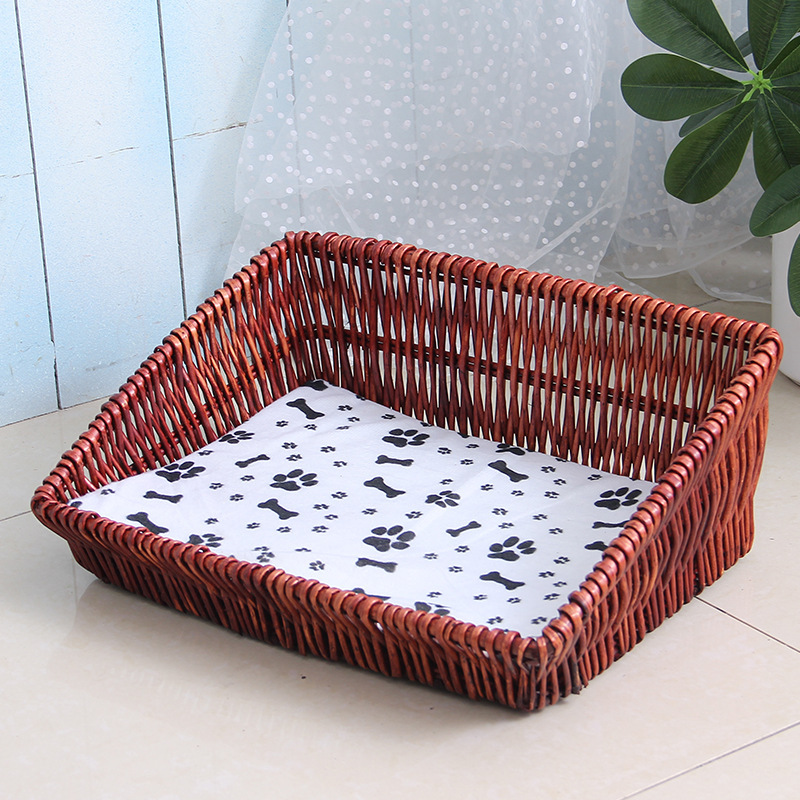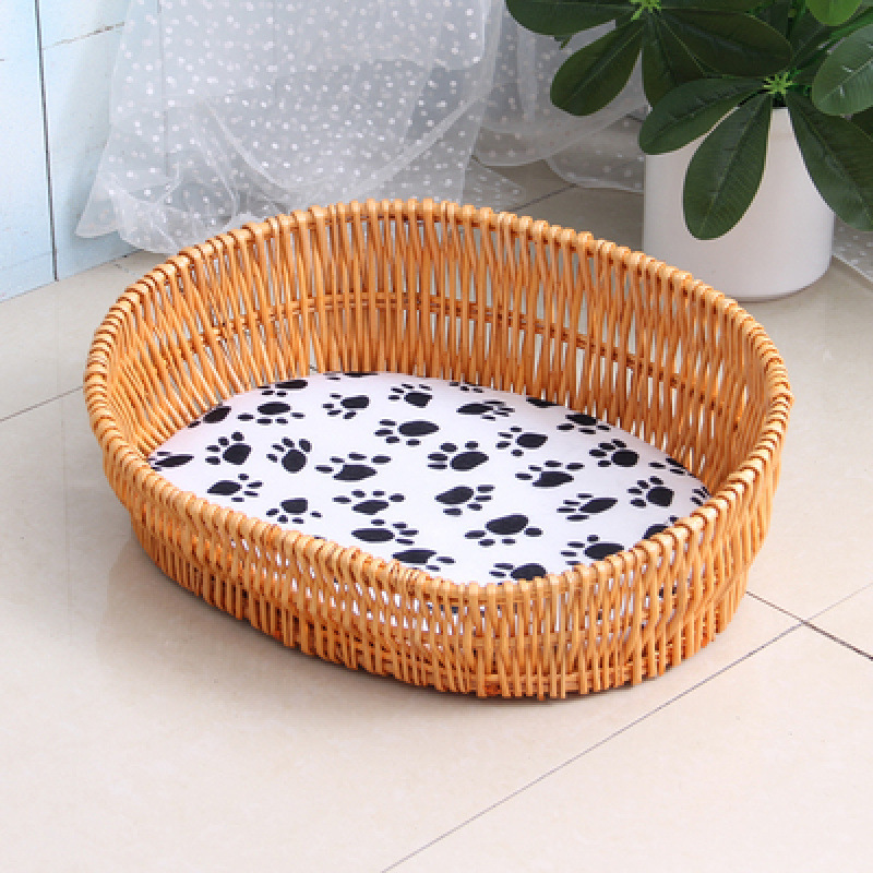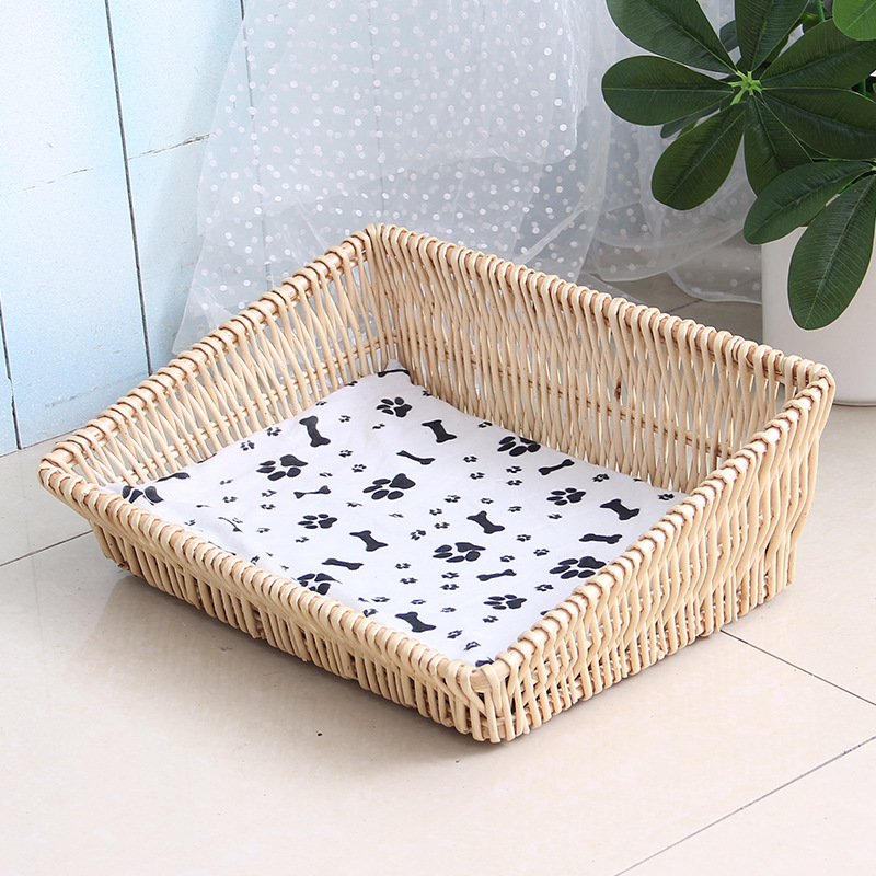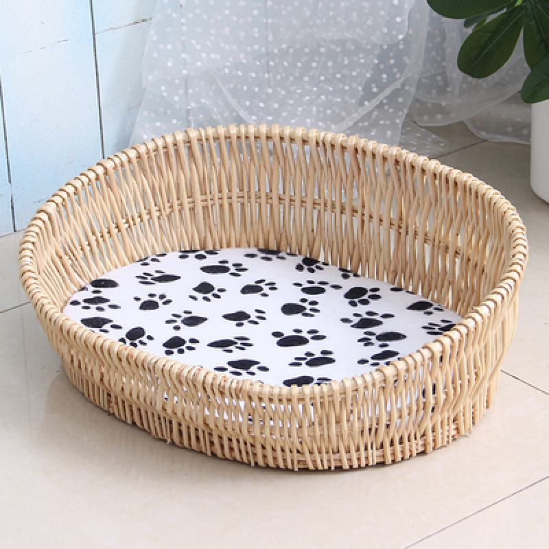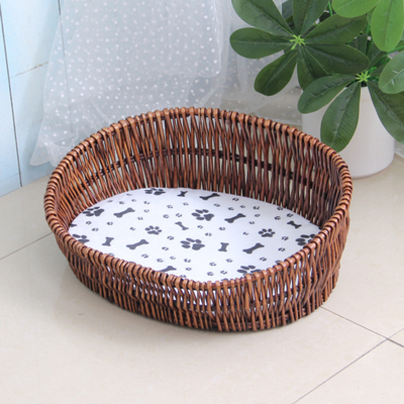 여름에 시원한 대형견, 중형견, 소형견을 위한 등나무 개집, 코기 포메라니안 짠 개 침대, 물림 방지, 사계절 모두 사용 가능, 탈부착 및 세탁 가능