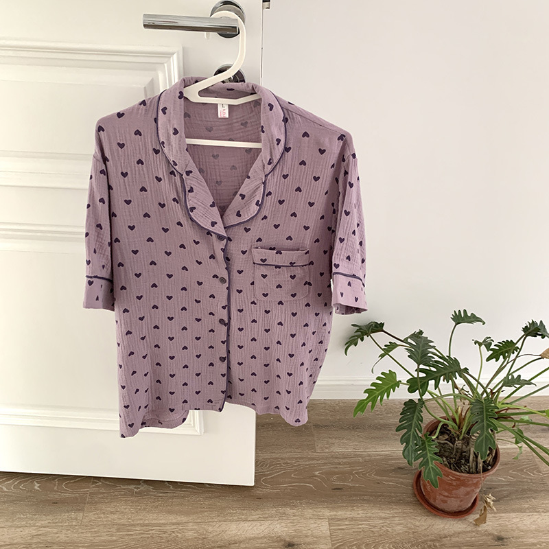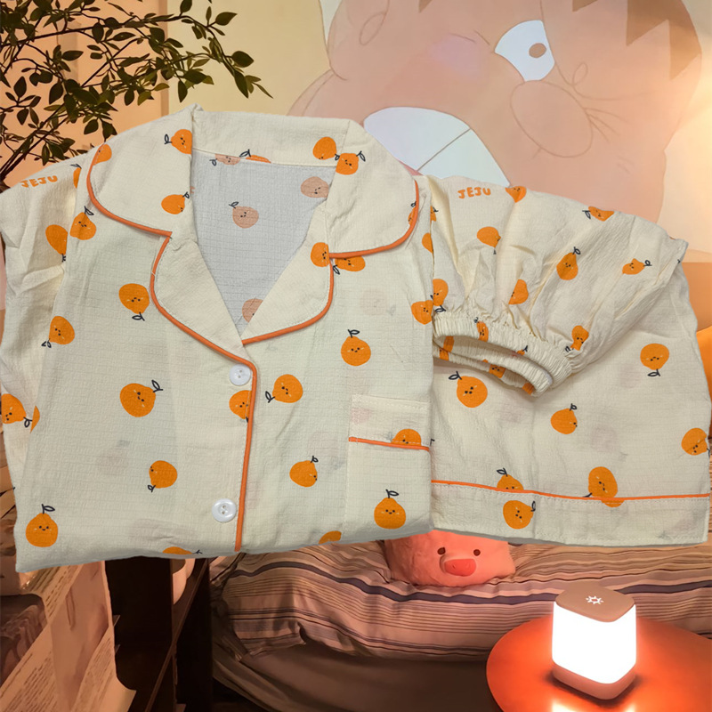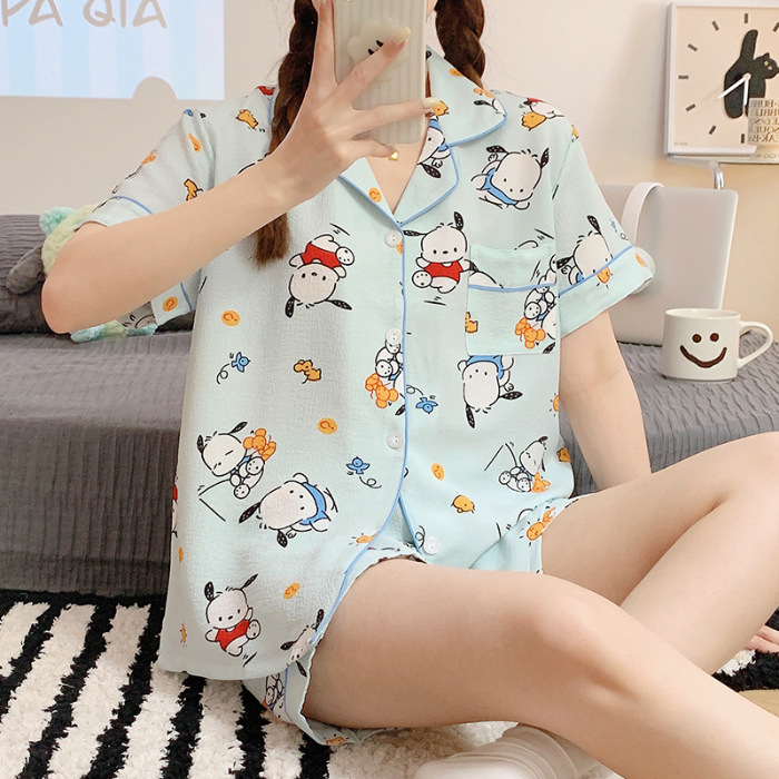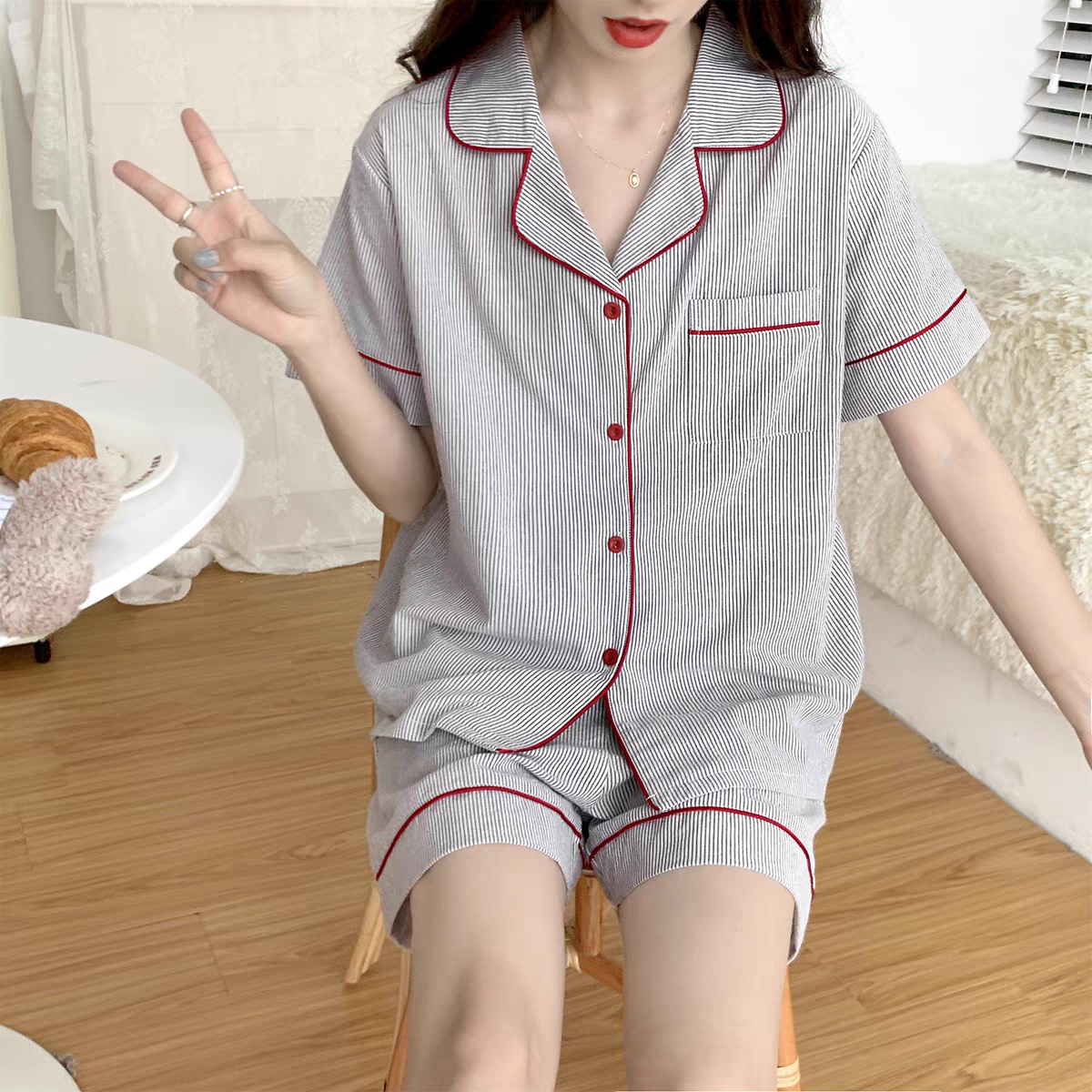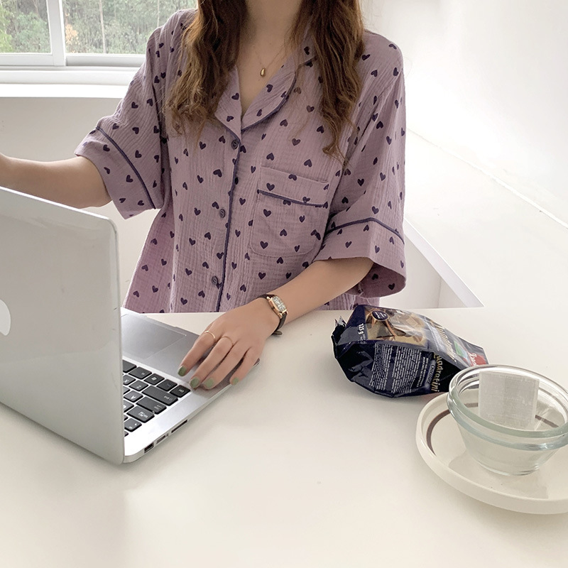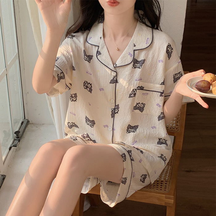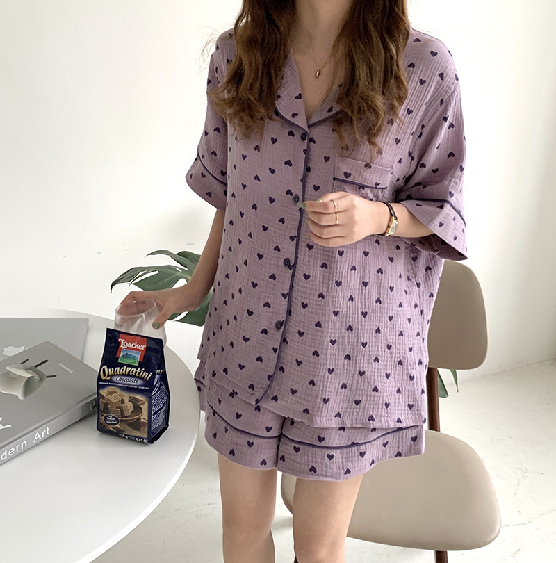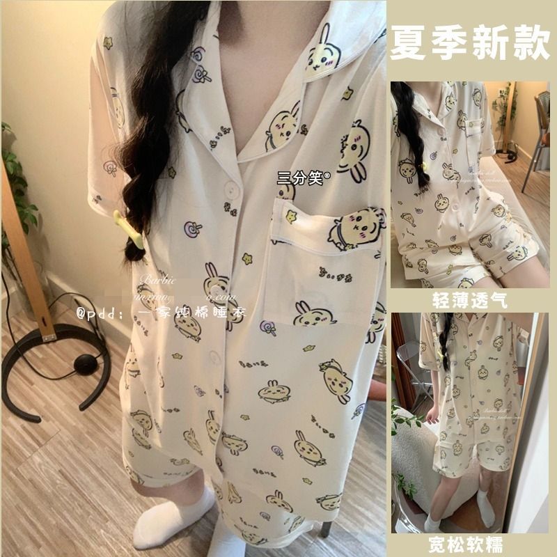Ins 목가적 인 스타일 꽃 무늬 버블 코튼 잠옷 여성 여름 카디건 옷깃 반팔 반바지 공주 스타일 홈웨어 세트스토어 가기