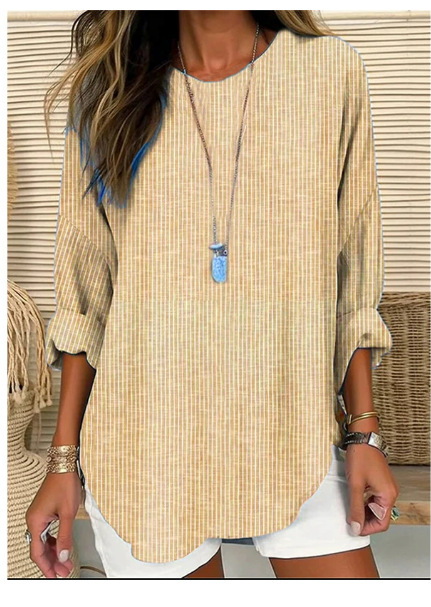 2025 유럽과 미국의 패션 봄과 여름 새로운 줄무늬 느슨한 긴 소매 라운드 넥 탑 여성 패션 캐주얼 셔츠