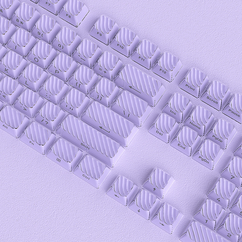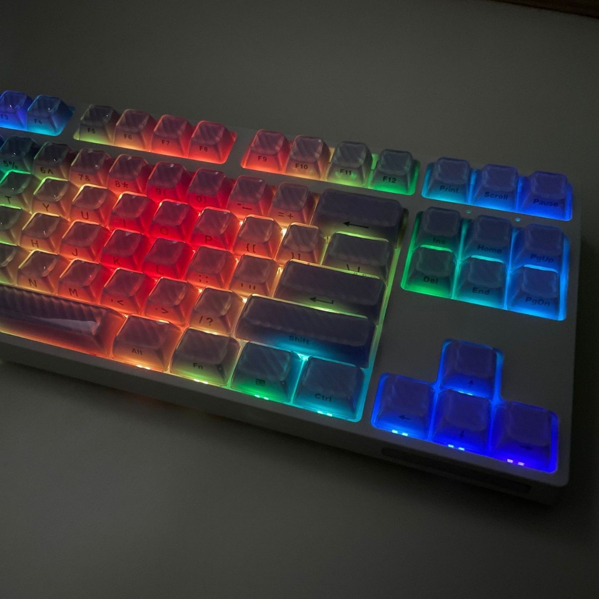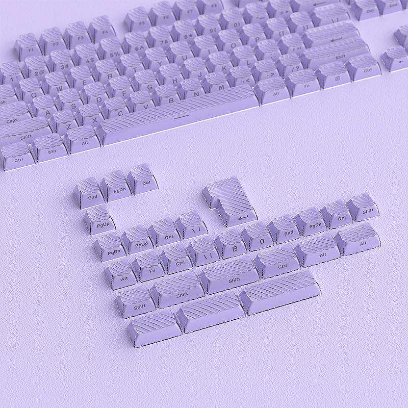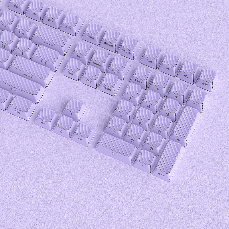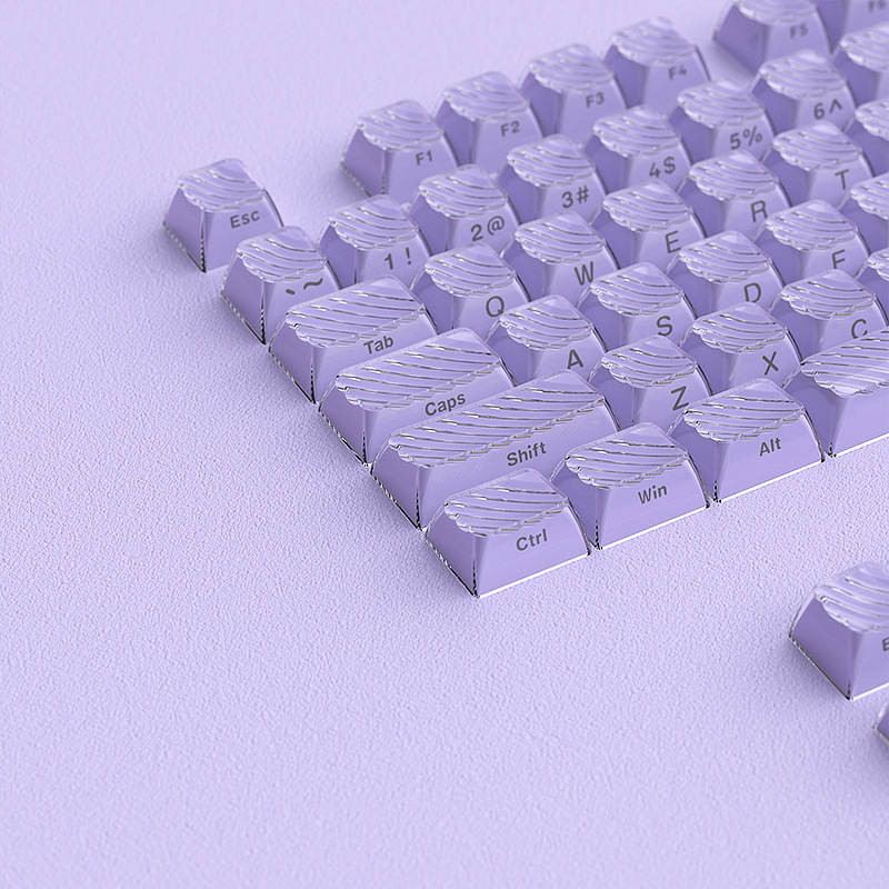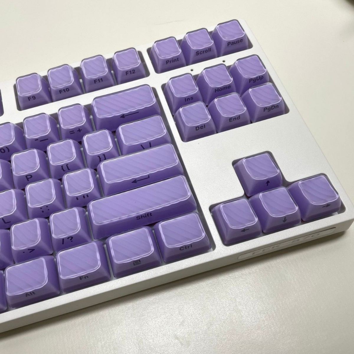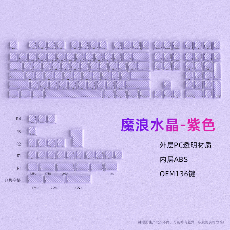 국경 간 현물 도매 Amazon Molang 보라색 키캡 0EM 측면 새겨진 소형 풀 세트 136 키 PC 투명 자기 축 키보드