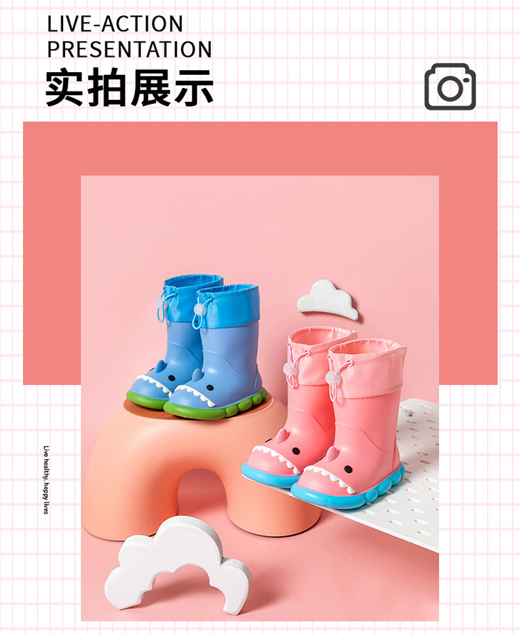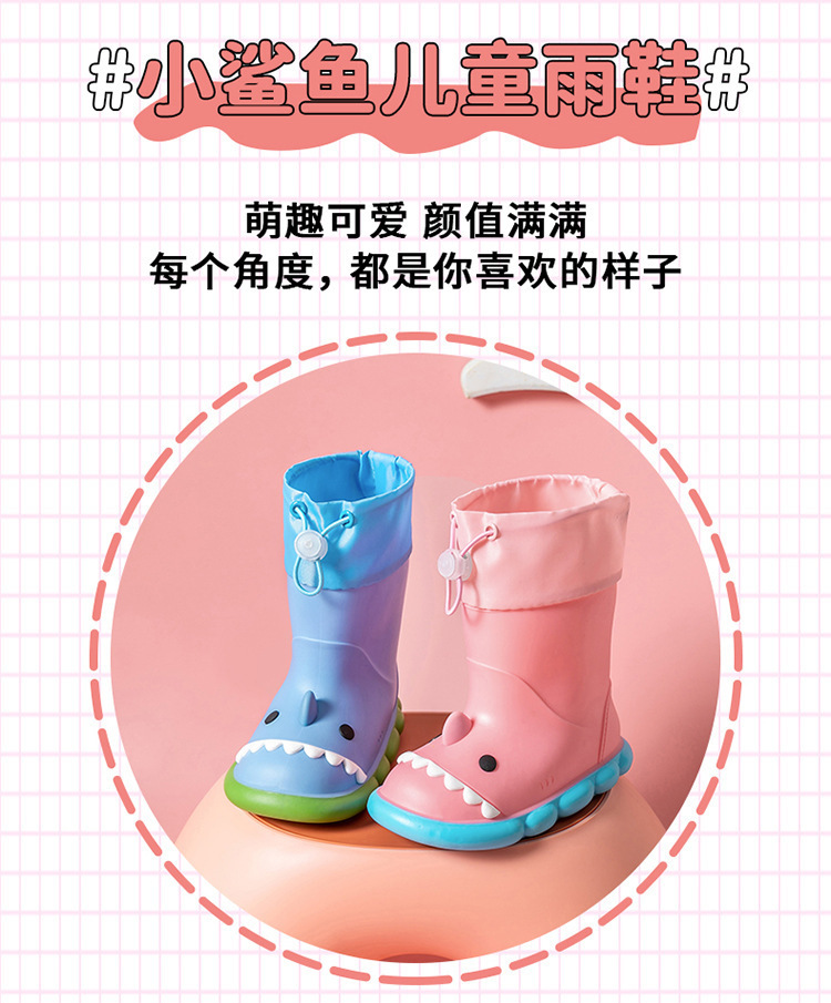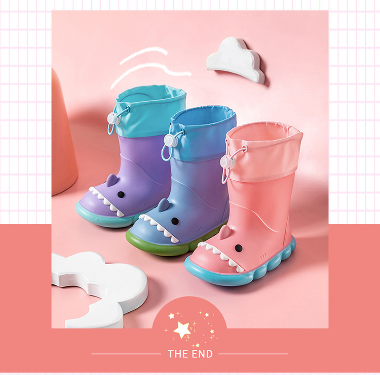 상어 어린이 장화 중간 튜브 소녀 미끄럼 방지 귀여운 여름 아기 소녀 어린이 장화 유치원 끈 신발