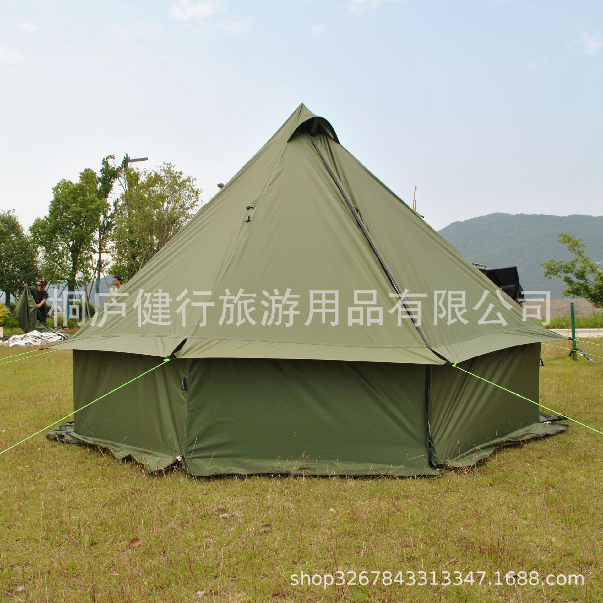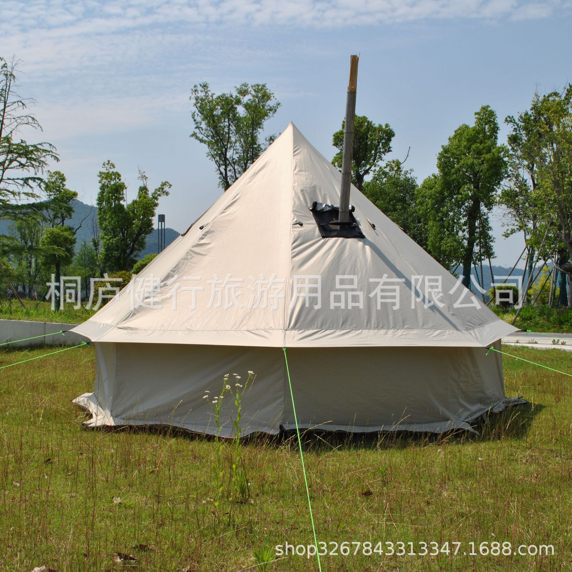 功能特点:这款印第安蒙古包帐篷是把印第安帐篷,蒙古包帐篷和柴火炉野营炉结合一体,除了前后气窗和门可以通风外,还新增加了一个方形烟窗口。这个烟窗口可以打开和关闭,主要功能是通风和观望。天热时可以打开,特别是在里面用汽炉做饭烧水时可以加通风,防止过热、水气过多或者一氧化碳,也可以打开观察外面情况,适合很多观鸟摄影爱好者使用。烟窗口配有一块防火布,这款帐篷如果要配合带烟囱柴火炉用的话,烟囱配合防火布使用,防止烫坏帐篷。