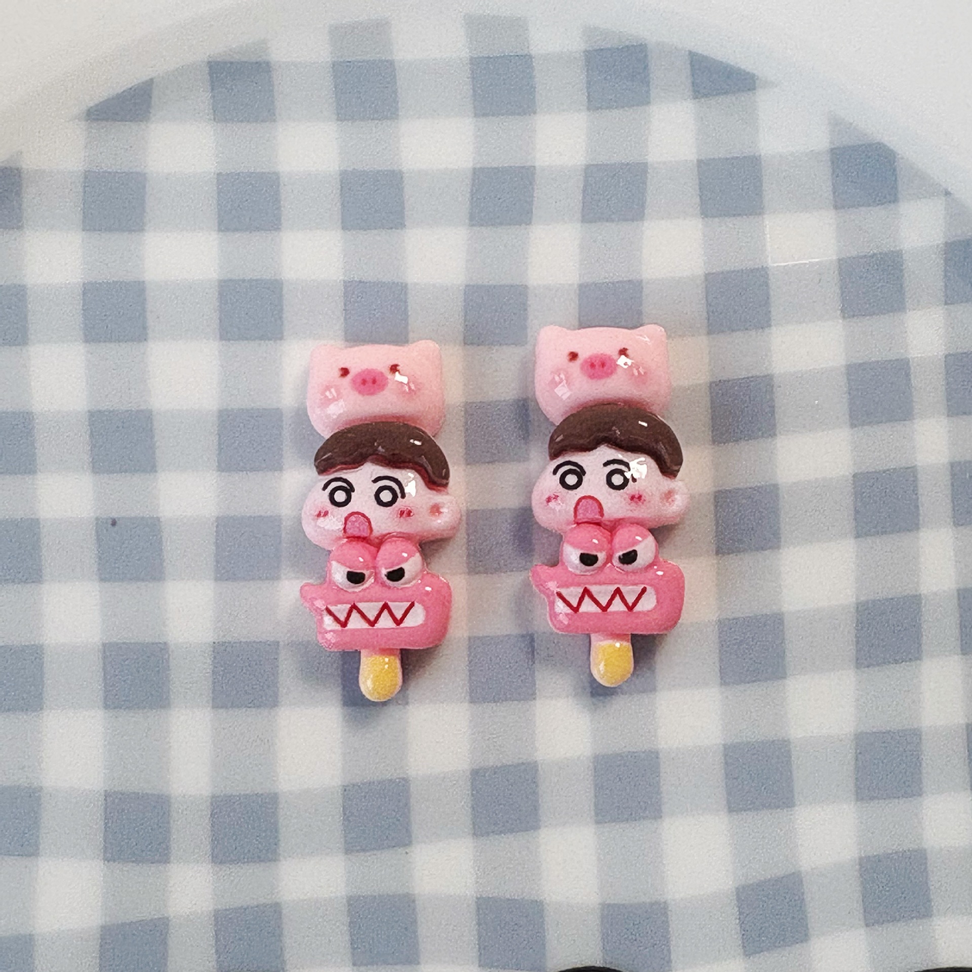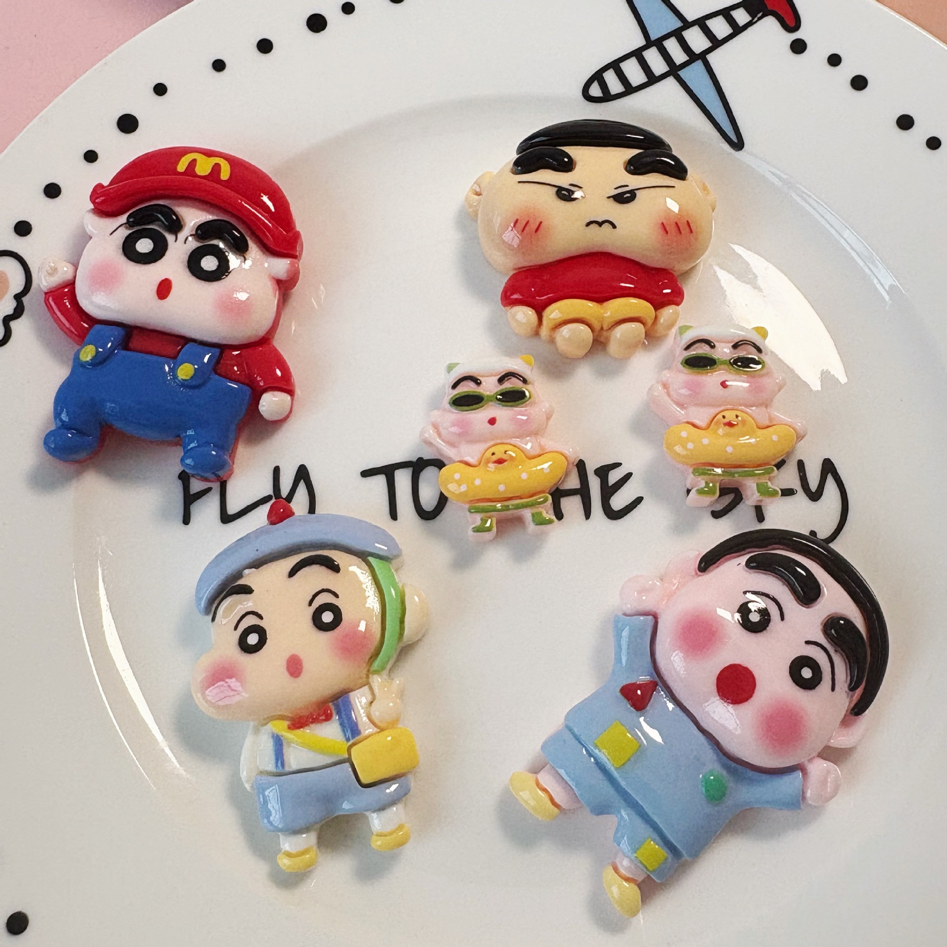 Crossdressing 크레용 신짱 수지 액세서리 diy 수제 머리핀 휴대 전화 케이스 냉장고 자석 슬리퍼 버클 키 체인 소재