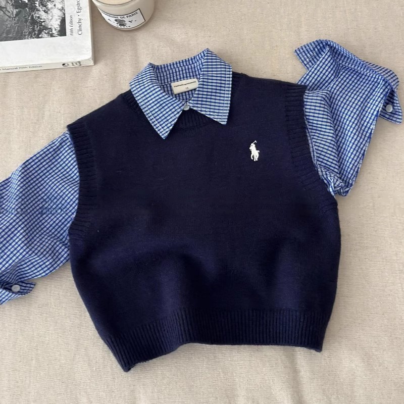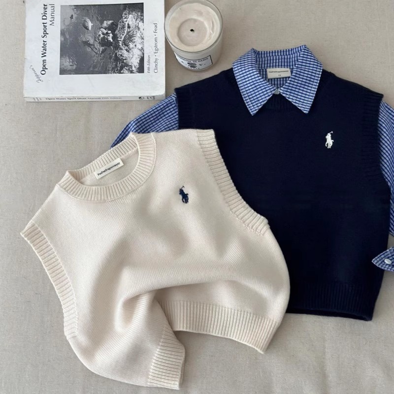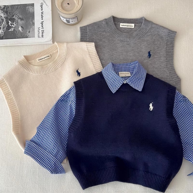 아동용 스웨터 조끼, 남성용 봄, 가을 스타일, 아동용 트렌디 브랜드 니트 탑, 여성용 베이비 솔리드 컬러 조끼, 패셔너블스토어 가기