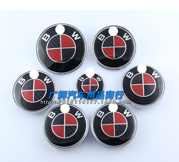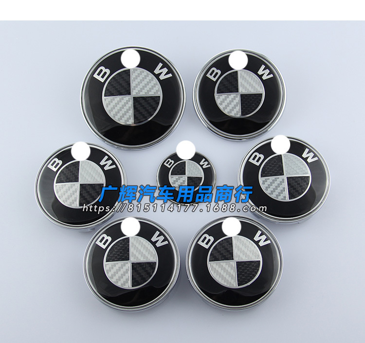 BMW 탄소 섬유 자동차 로고에 적합 BMW 흑백 탄소 섬유 전면 로고 휠 커버 스티어링 휠 라벨 7 피스 세트