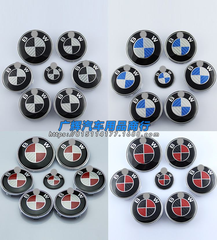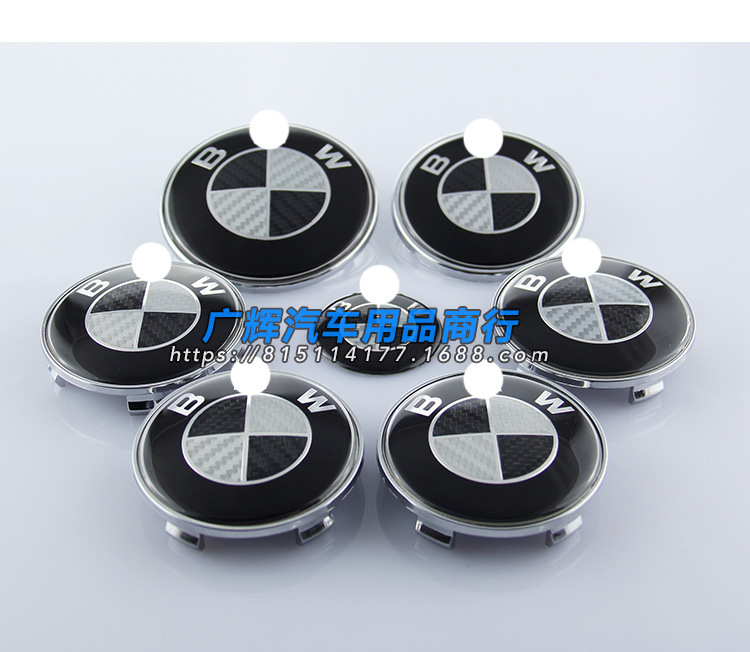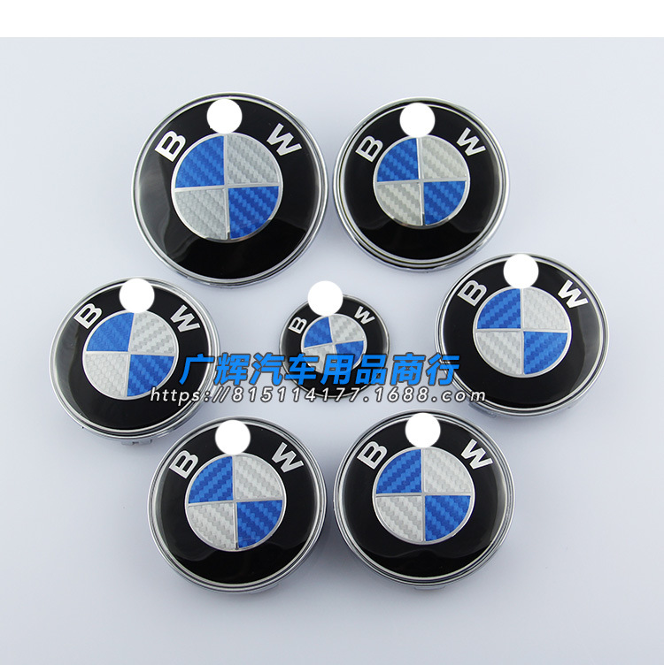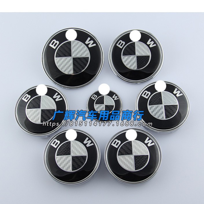 BMW 탄소 섬유 자동차 로고에 적합 BMW 흑백 탄소 섬유 전면 로고 휠 커버 스티어링 휠 라벨 7 피스 세트스토어 가기