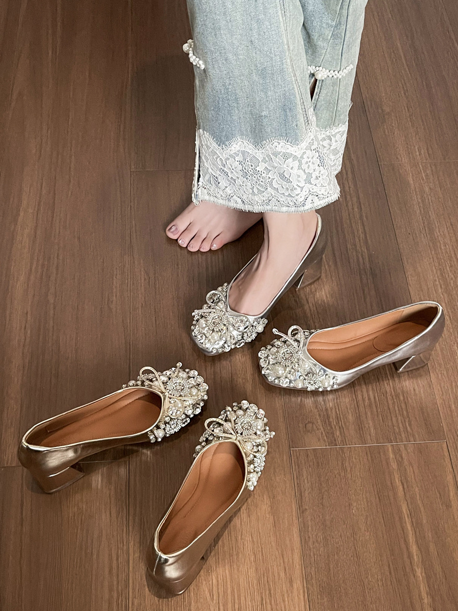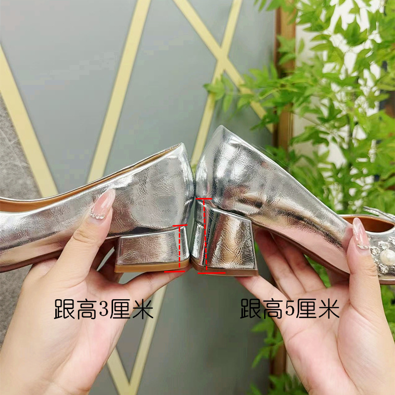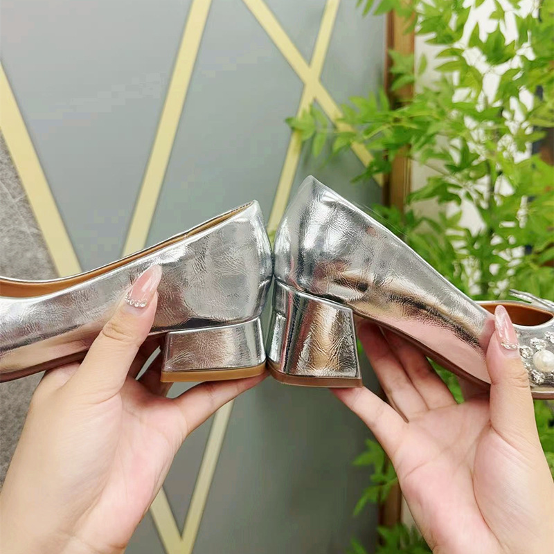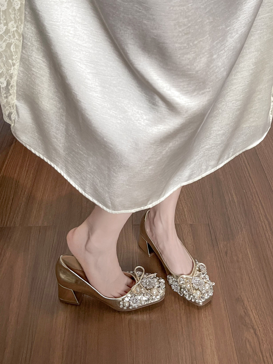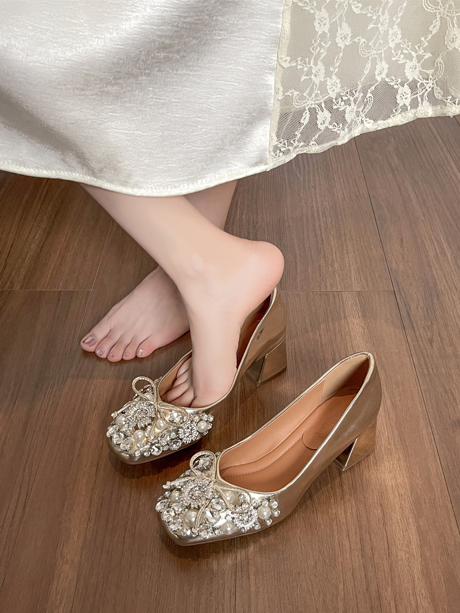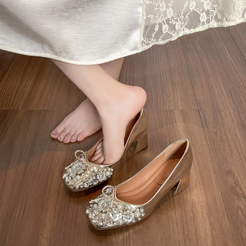크리스탈 슈즈는 스커트와 잘 어울립니다. 두꺼운 굽의 여성용 프렌치 슈즈 2025 신작 가을 부드러운 스타일 이브닝 하이힐 여성화스토어 가기