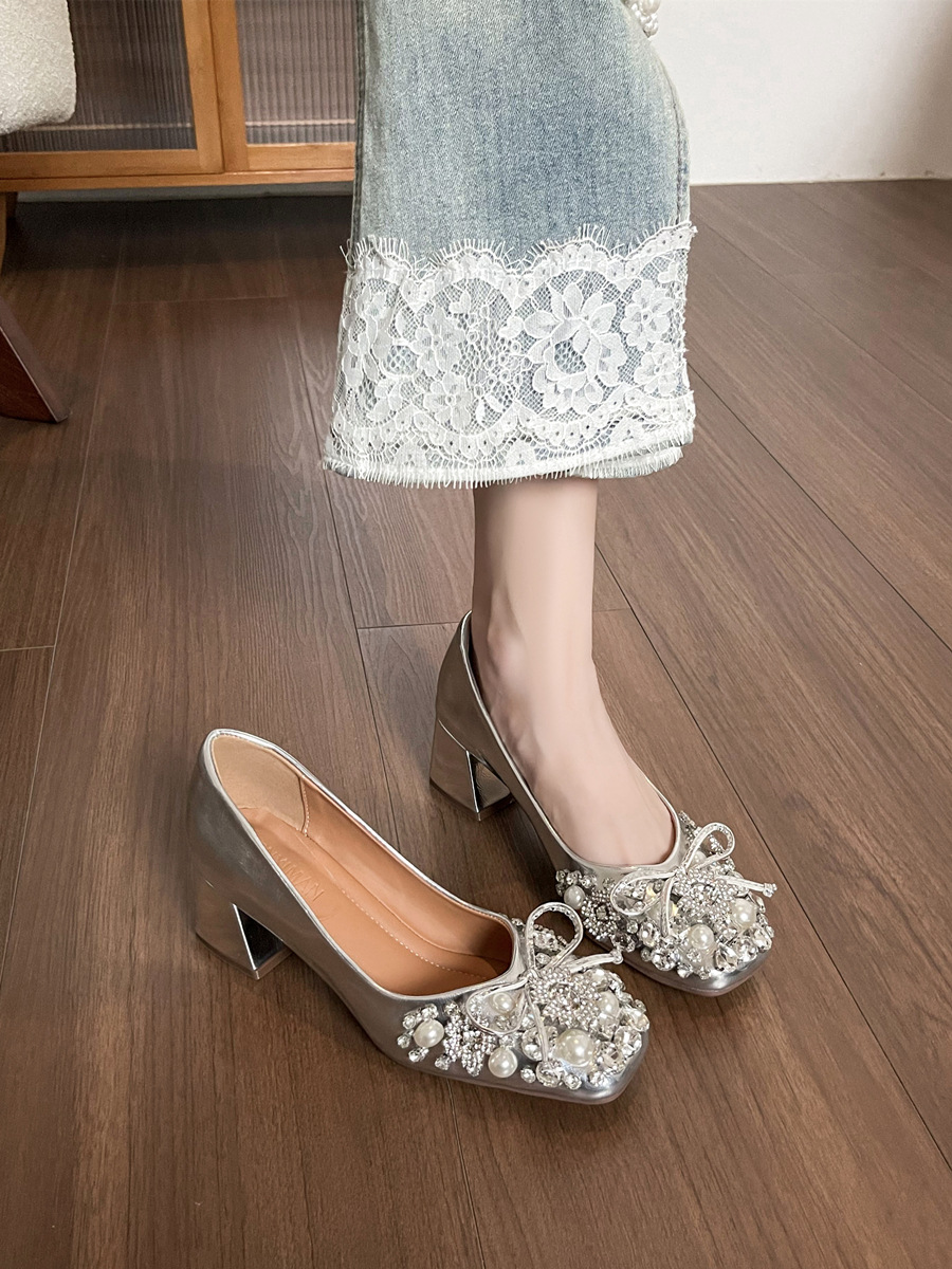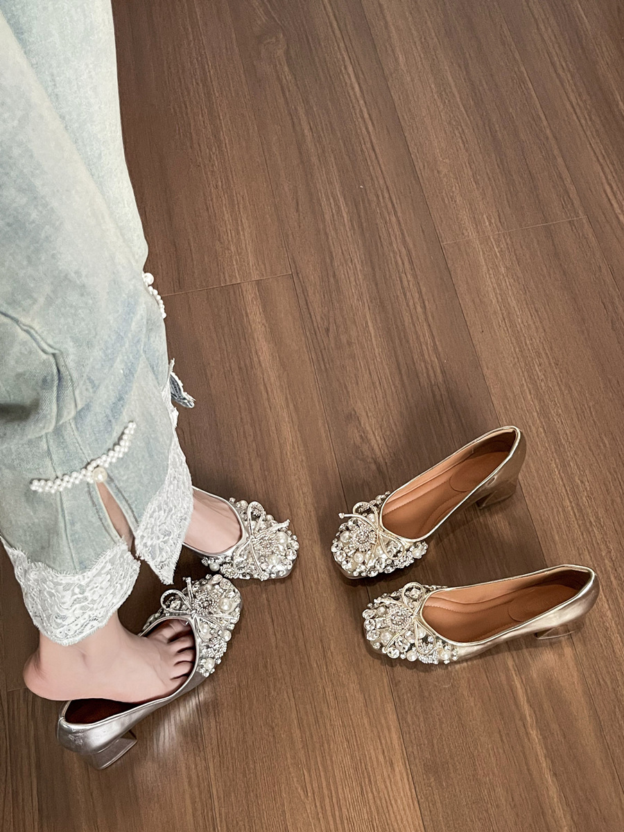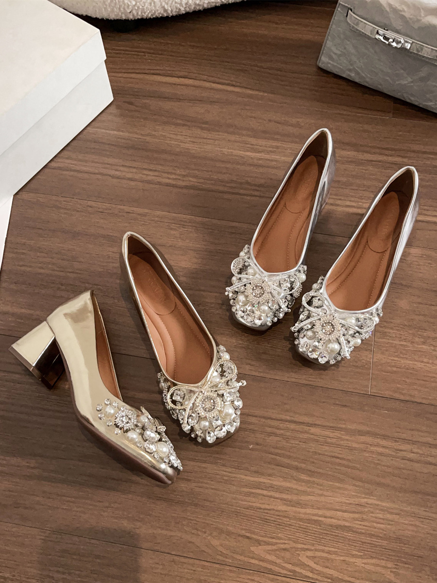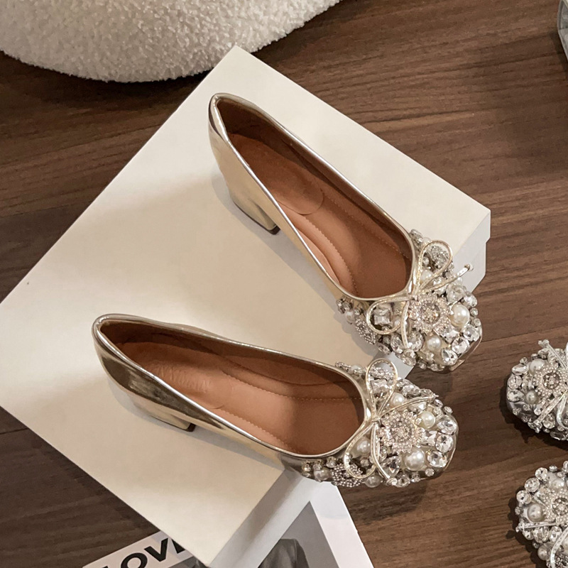 크리스탈 슈즈는 스커트와 잘 어울립니다. 두꺼운 굽의 여성용 프렌치 슈즈 2025 신작 가을 부드러운 스타일 이브닝 하이힐 여성화스토어 가기
