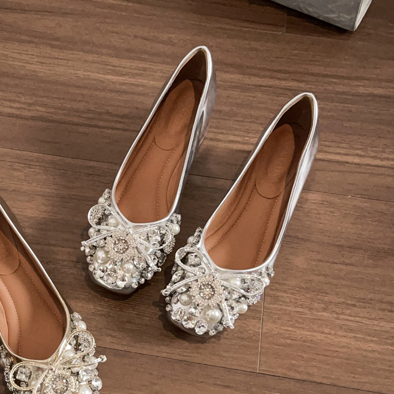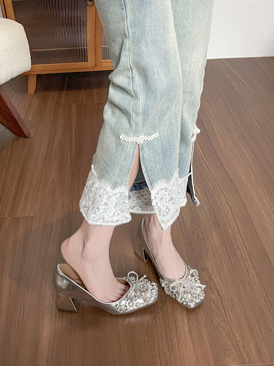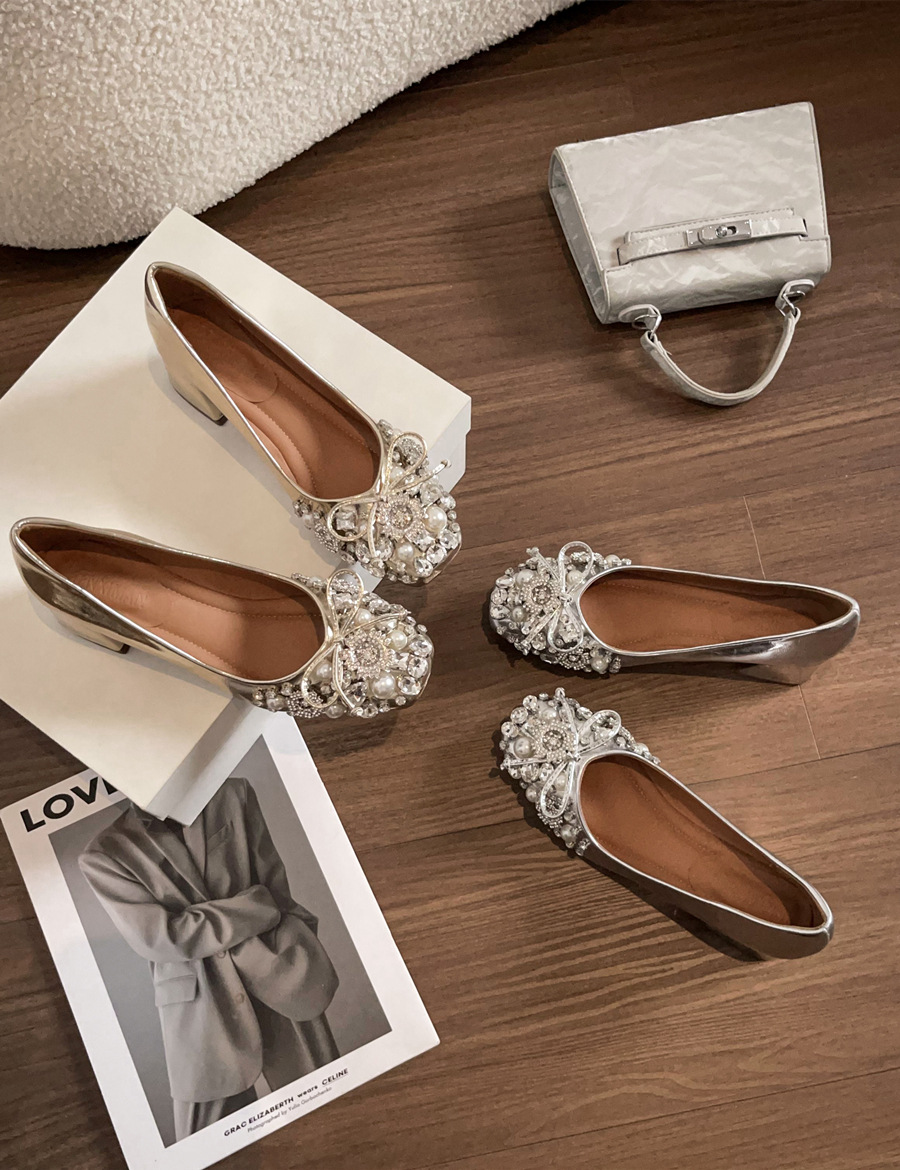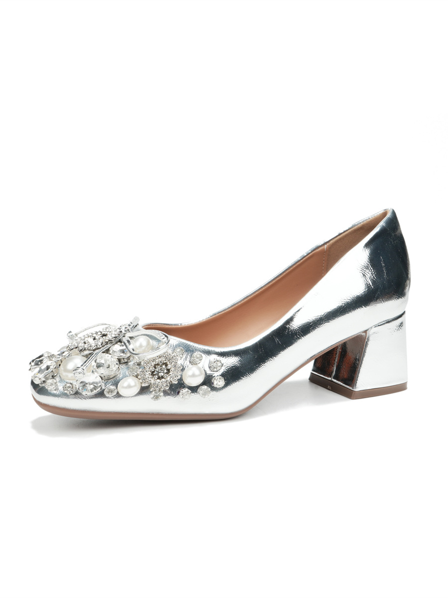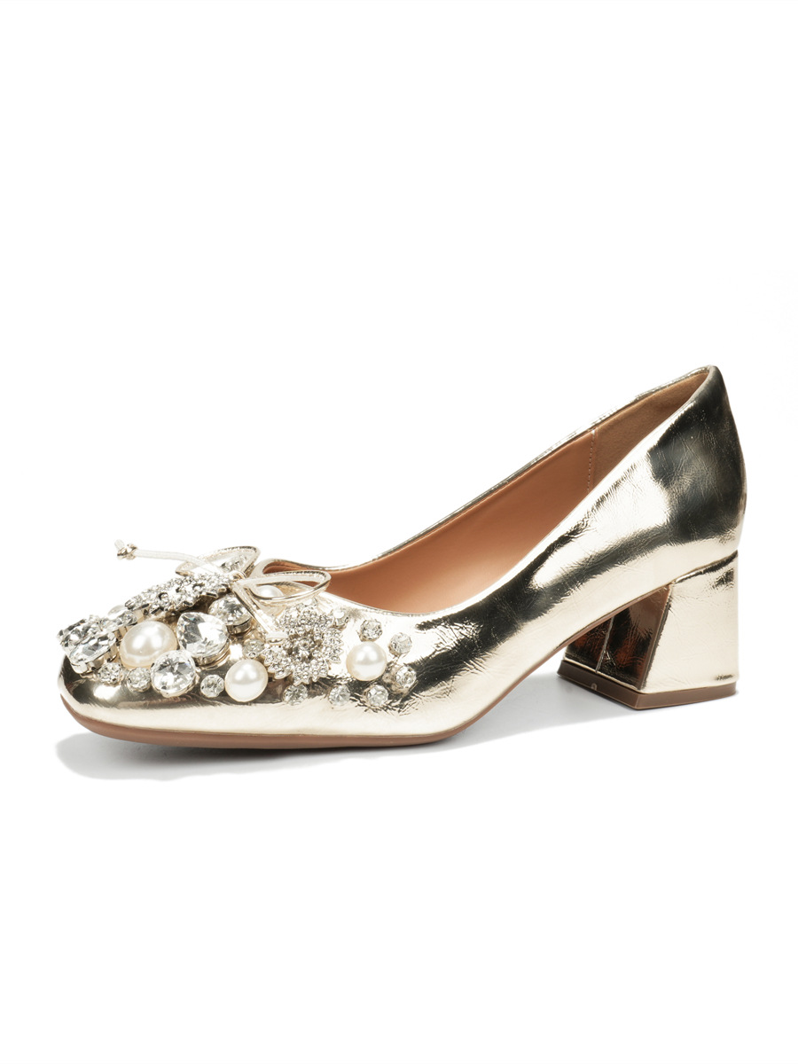 크리스탈 슈즈는 스커트와 잘 어울립니다. 두꺼운 굽의 여성용 프렌치 슈즈 2025 신작 가을 부드러운 스타일 이브닝 하이힐 여성화스토어 가기