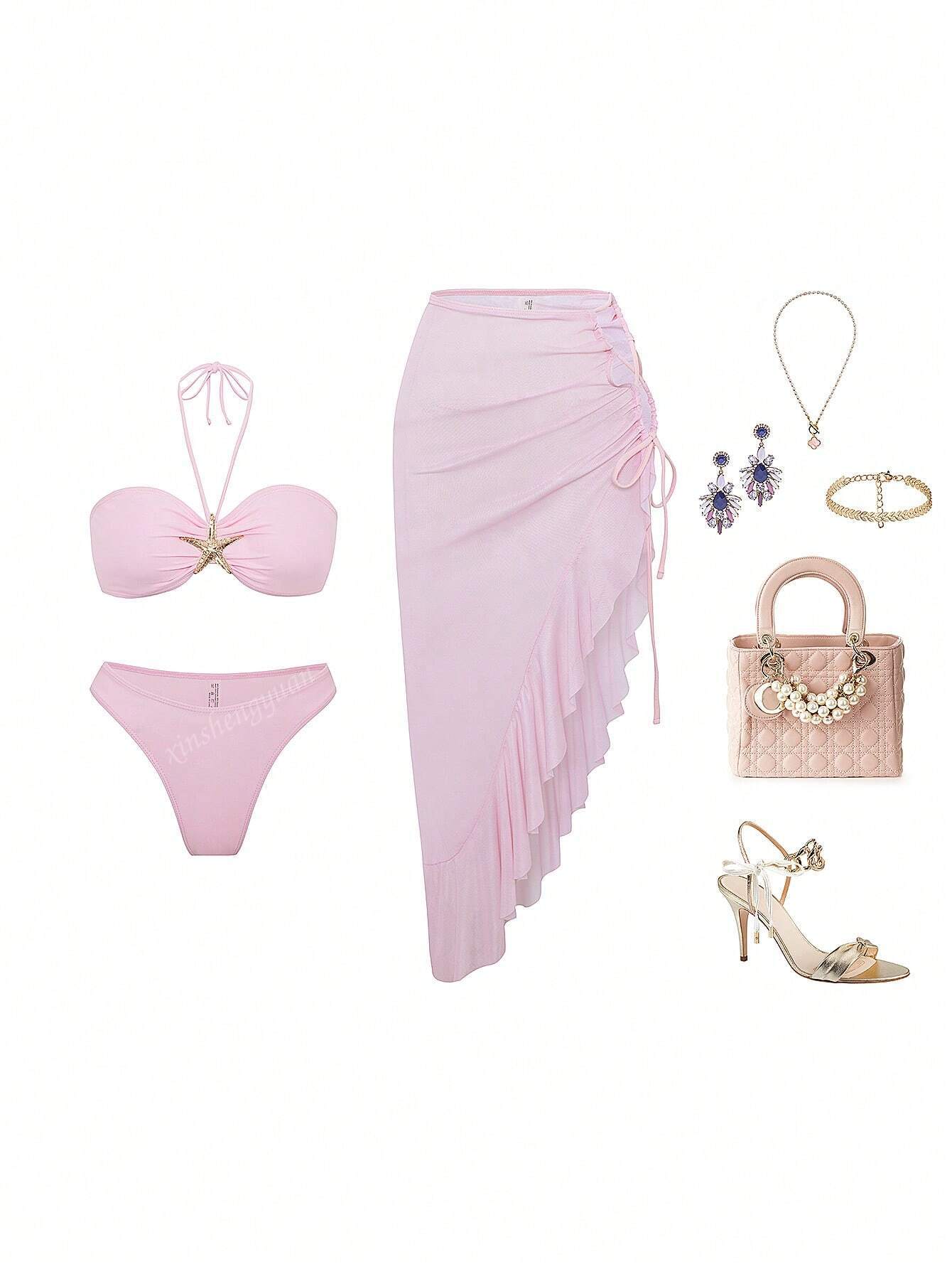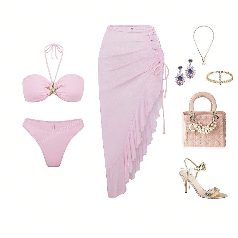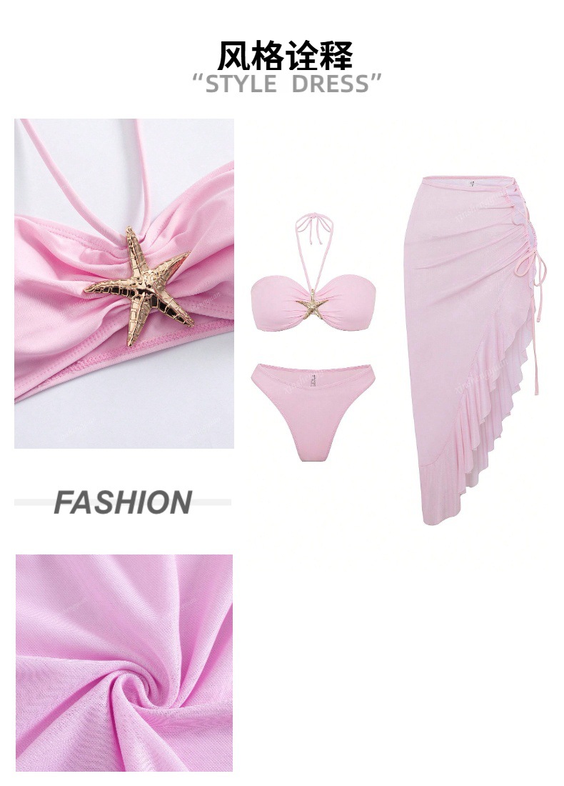 2026 유럽 및 미국 해변 휴가용 3피스 짧은 스커트 여성 수영복 비키니 수출용 섹시 분리형 비키니