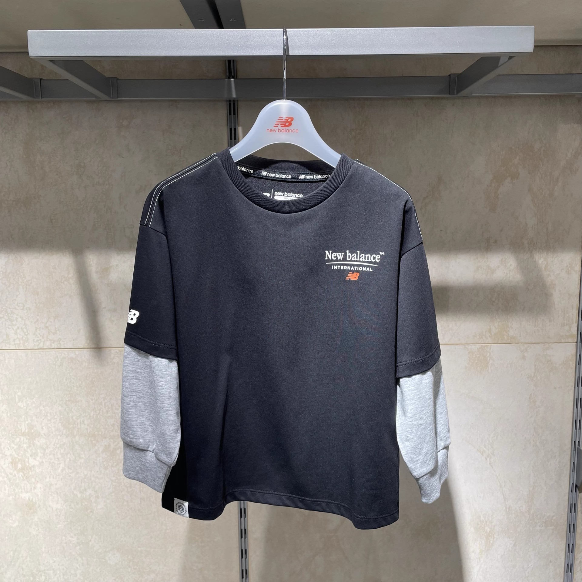 중대형 어린이, 남아 및 여아를 위한 2025년 가을 신제품, 부드러운 면 페이크 투피스 대비 컬러 슬리브 라운드 넥 긴팔 티셔츠스토어 가기