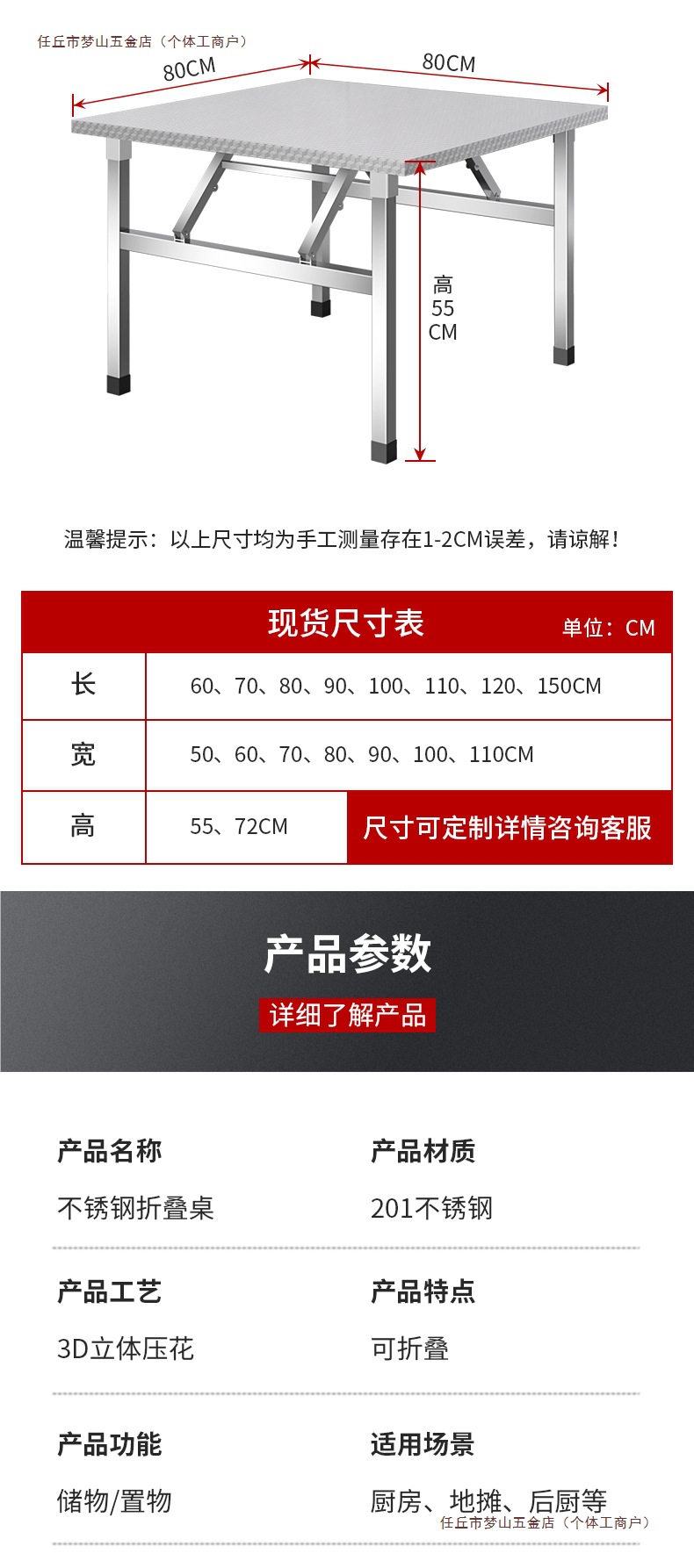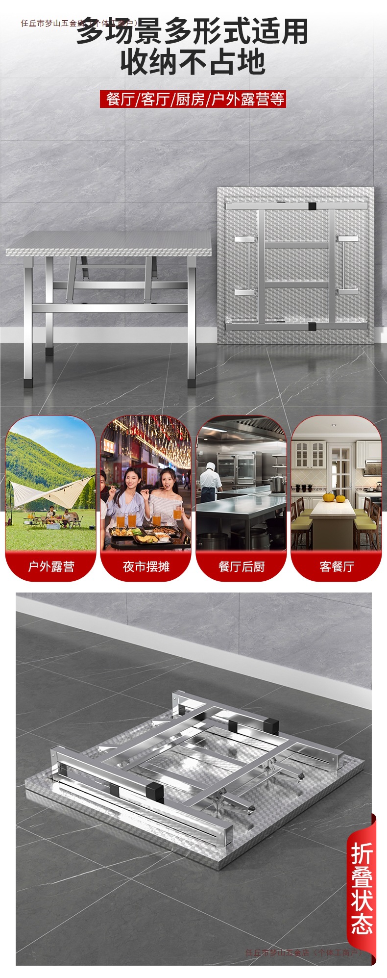 스테인레스 스틸 접이식 테이블 가정용 식탁 임대실 야외 바베큐 스톨 휴대용 야시장 스톨 사각형 테이블스토어 가기