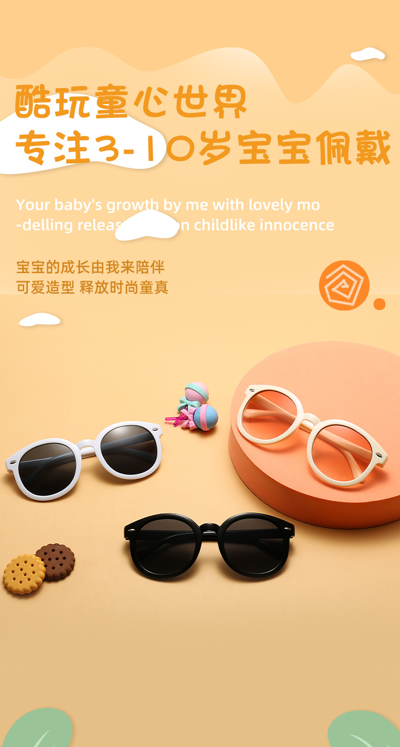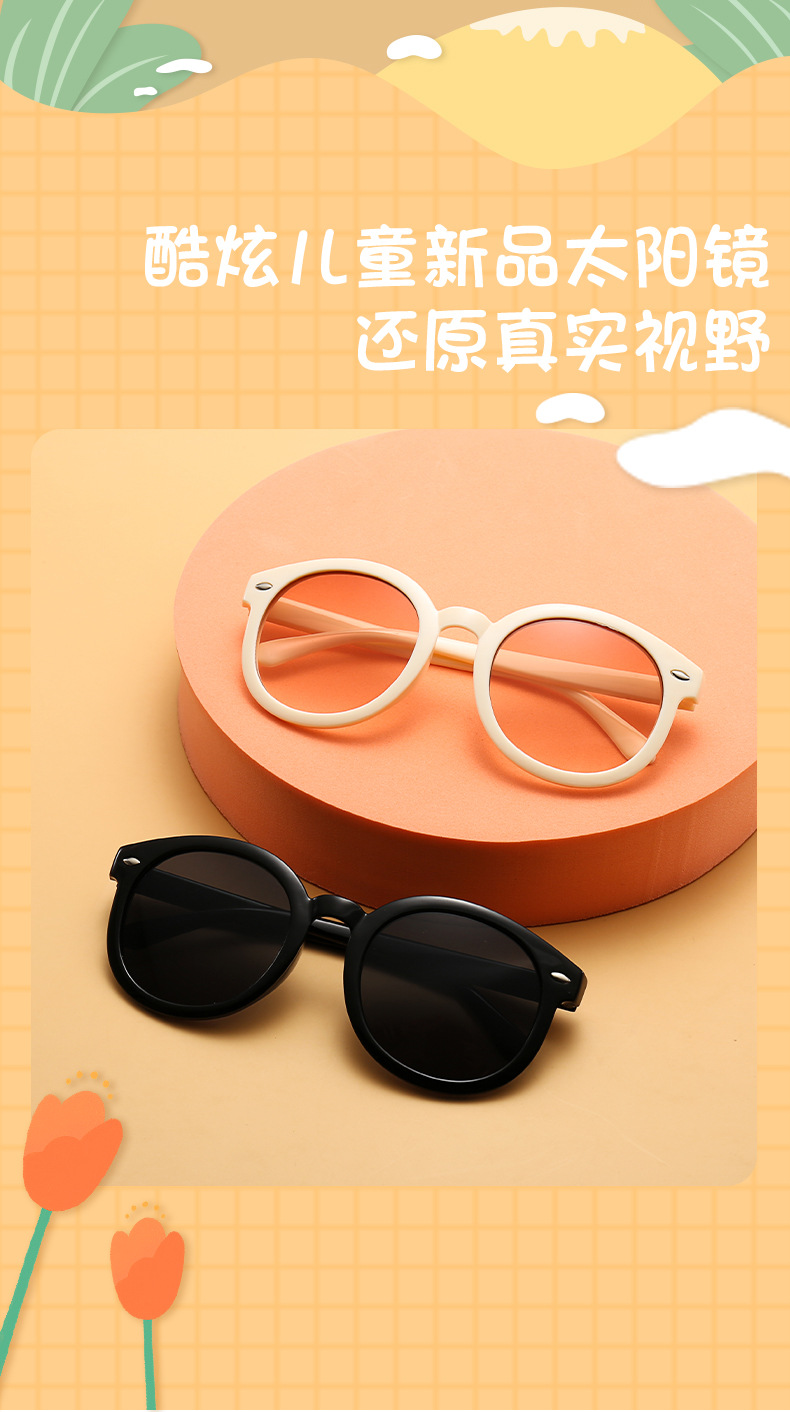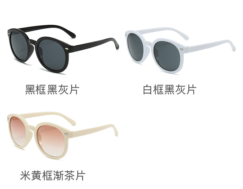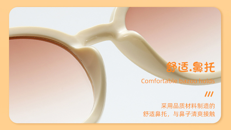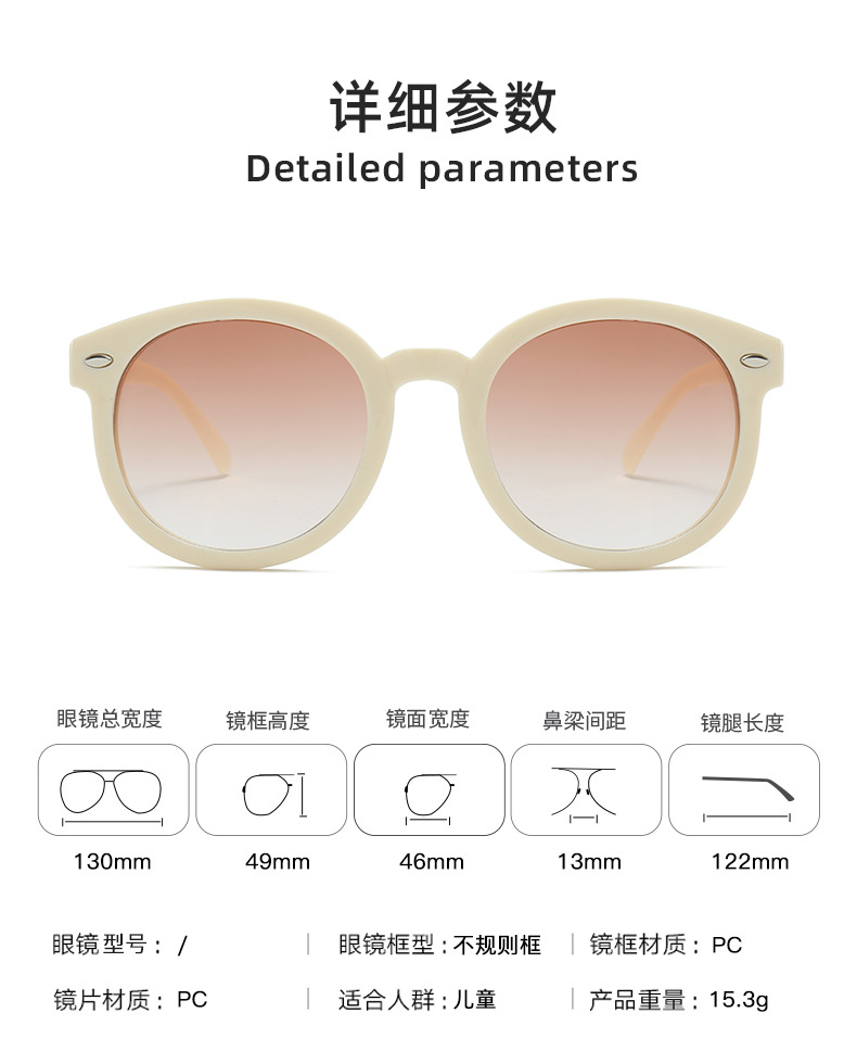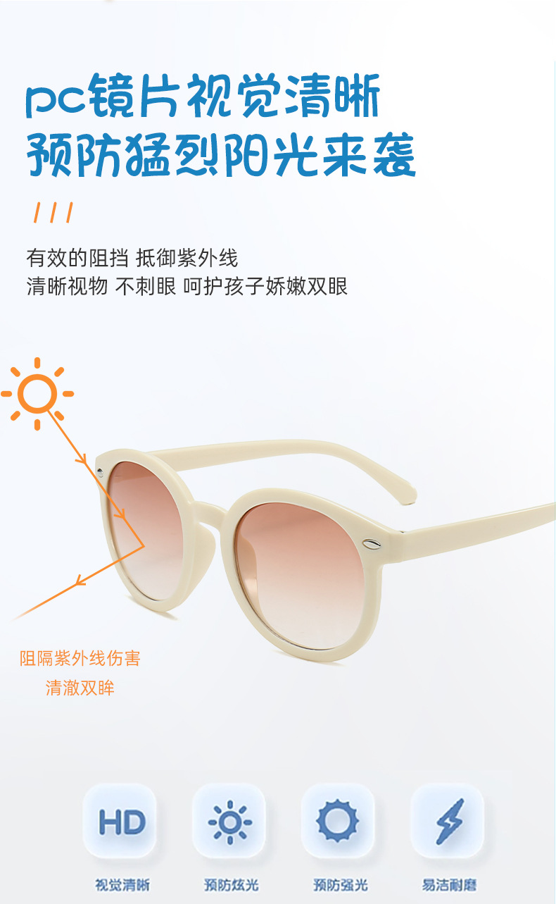 한국식 귀여운 베이지색 라운드 프레임 어린이 선글라스, 간단하고 다재다능한 야외 여행 자외선 차단 아기 선글라스 트렌드스토어 가기