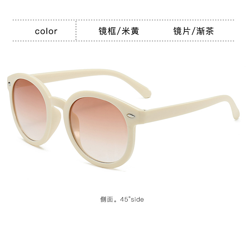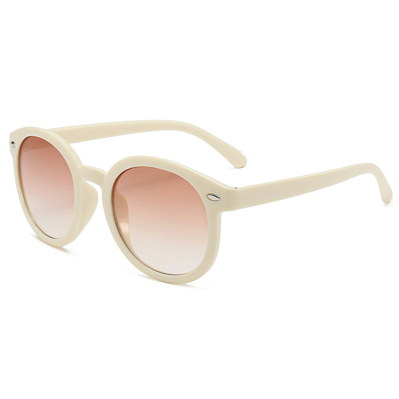 한국식 귀여운 베이지색 라운드 프레임 어린이 선글라스, 간단하고 다재다능한 야외 여행 자외선 차단 아기 선글라스 트렌드