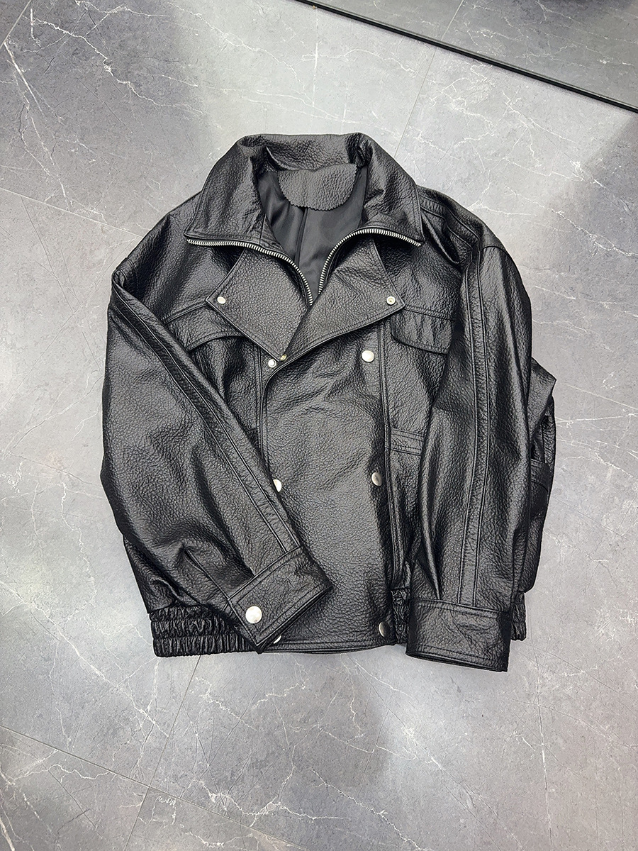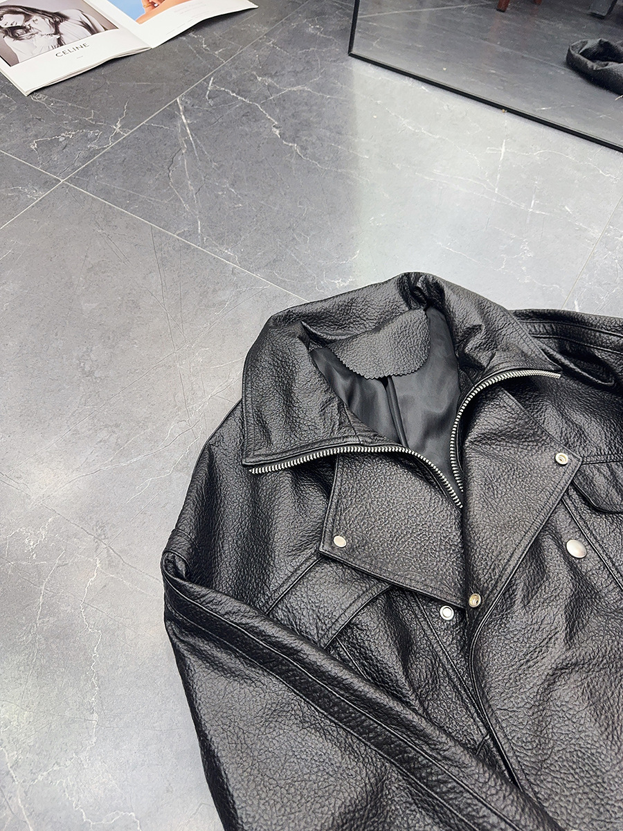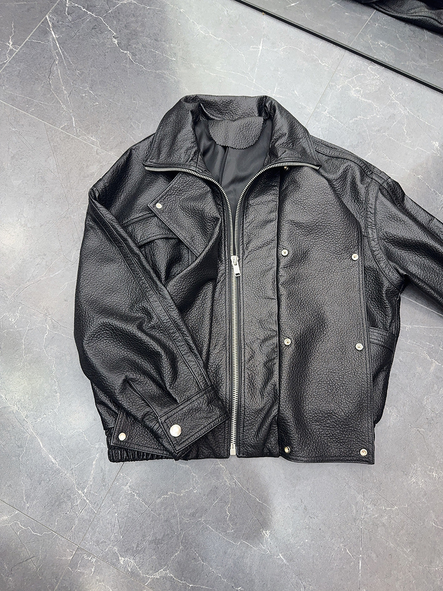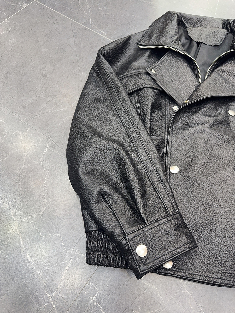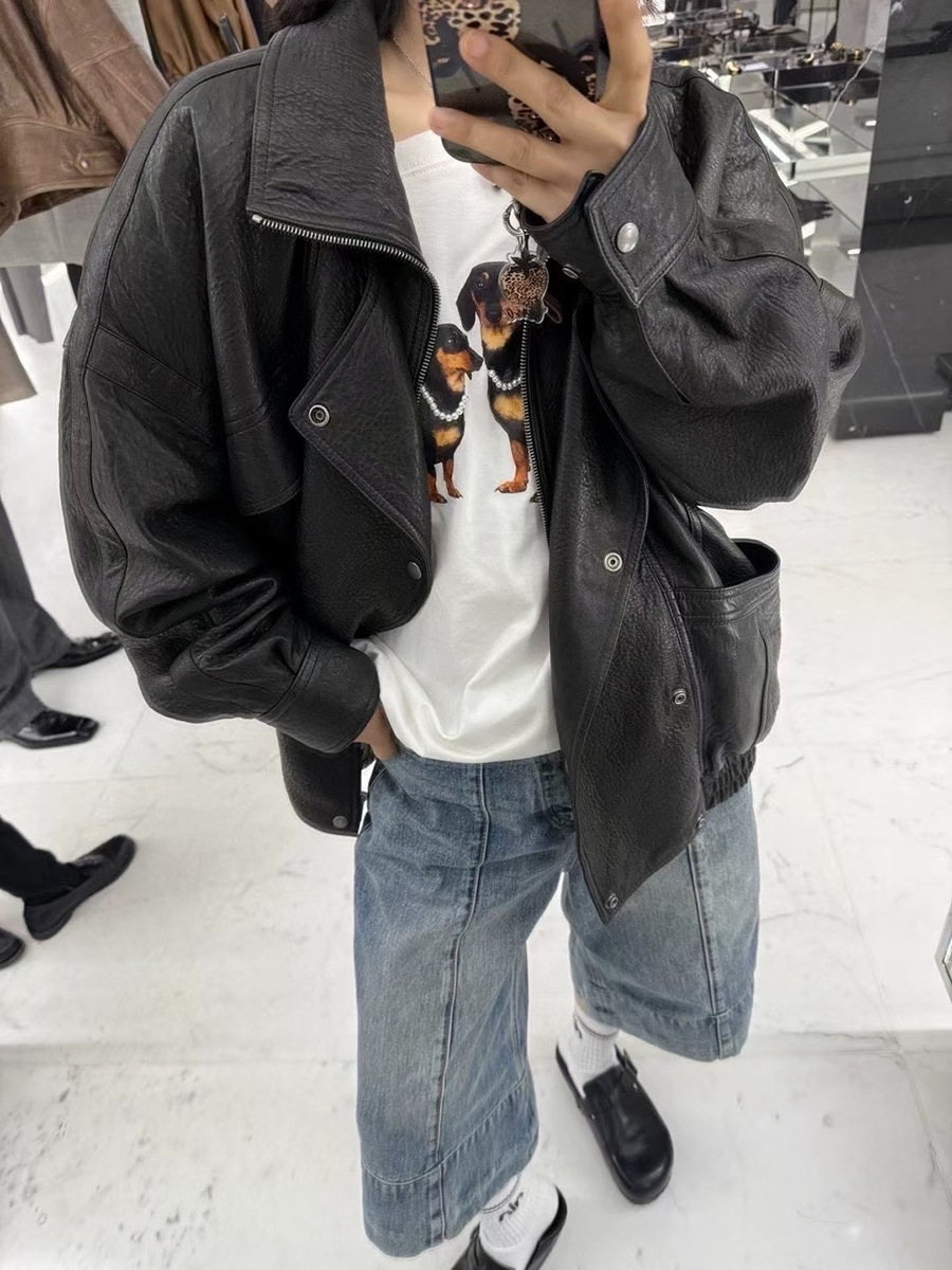 "Free Secret" 정품 양가죽 자켓 스탠드 라펠 블랙 버블 가죽 자켓 여성 2025 가을 새로운 스타일스토어 가기