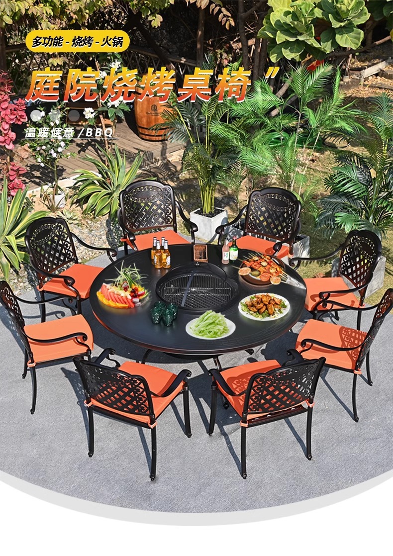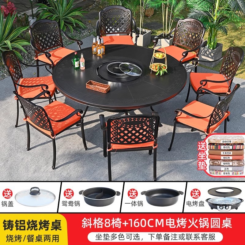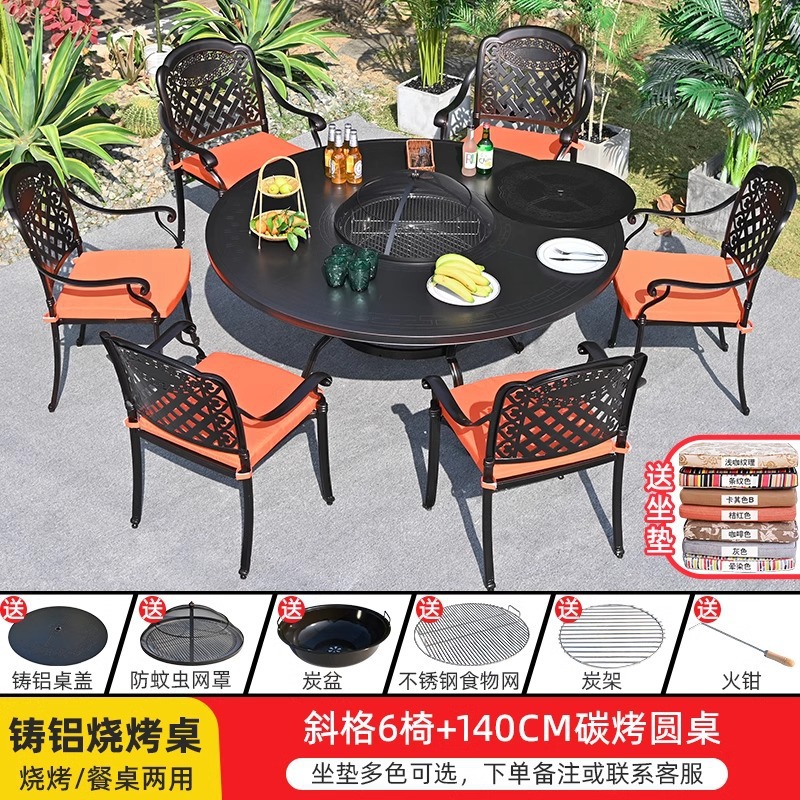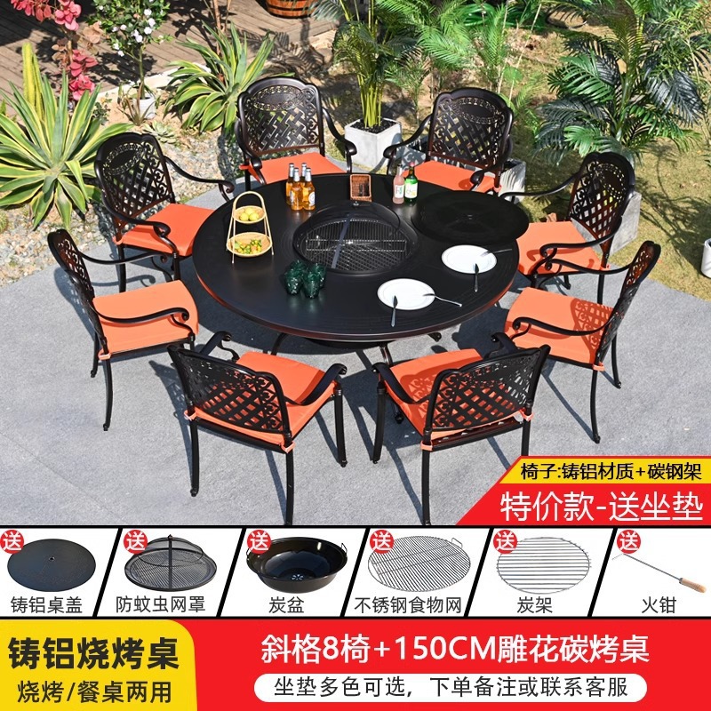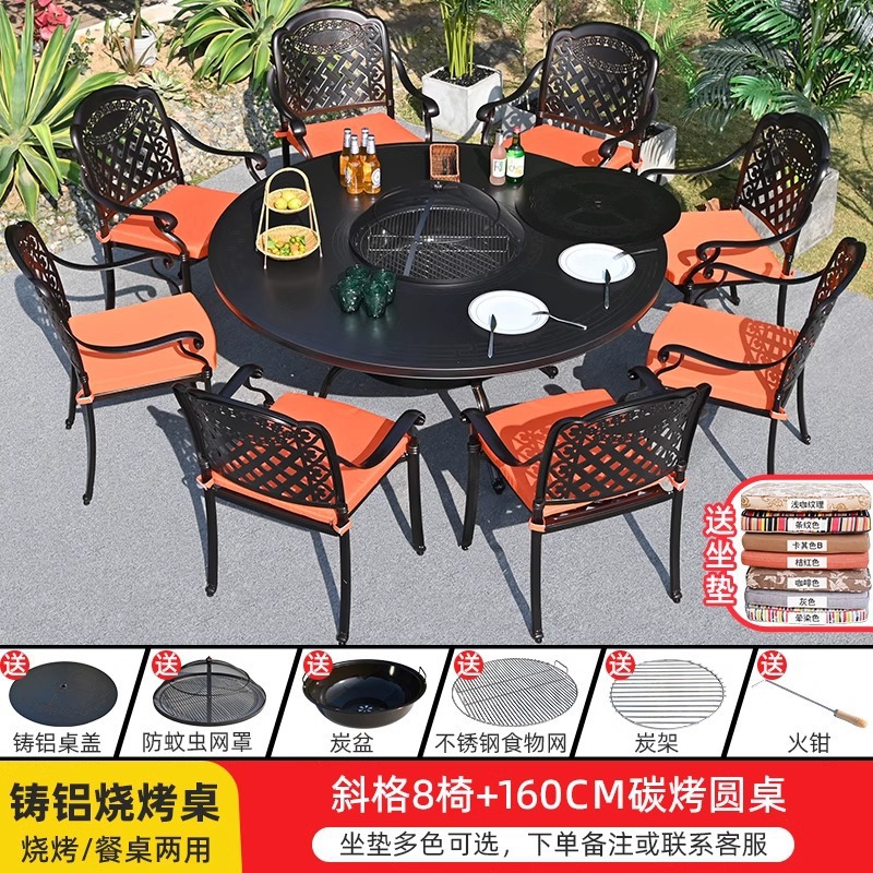 • 경사형 그리드 의자 8개 + 160cm 숯불구이 조각 원형 테이블