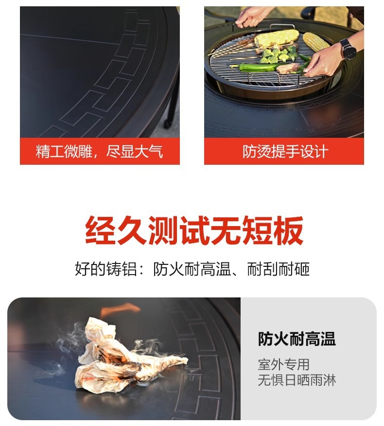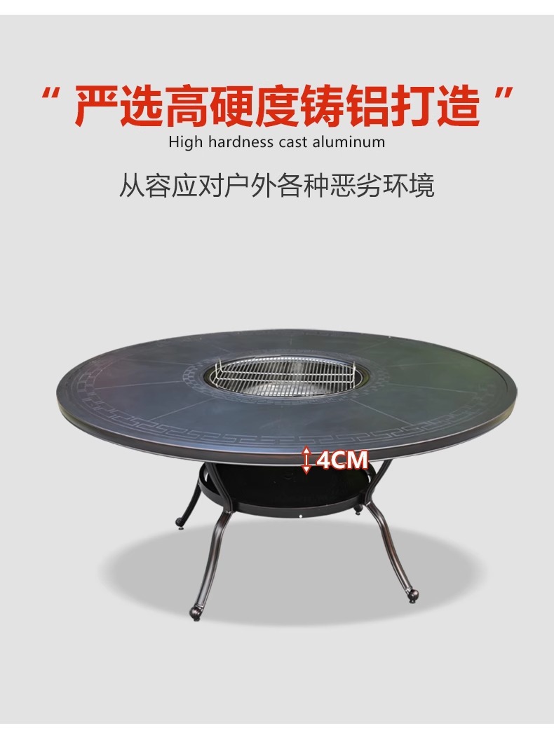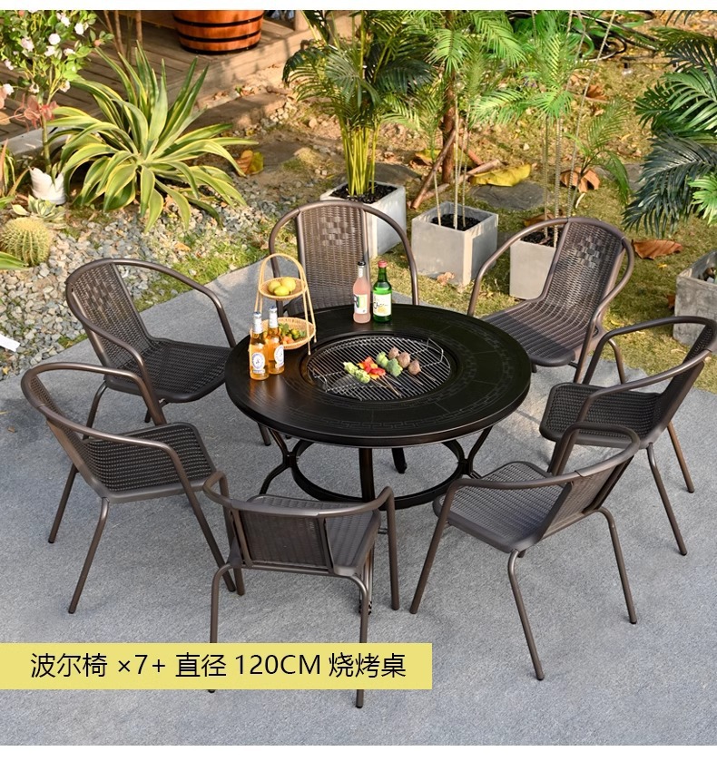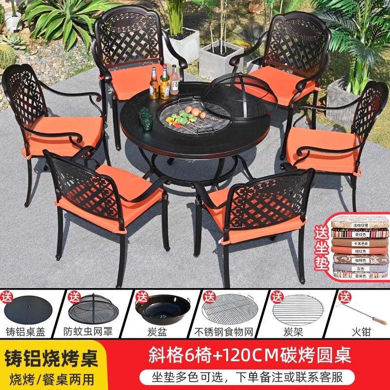 • 경사형 그리드 의자 8개 + 160cm 숯불구이 조각 원형 테이블