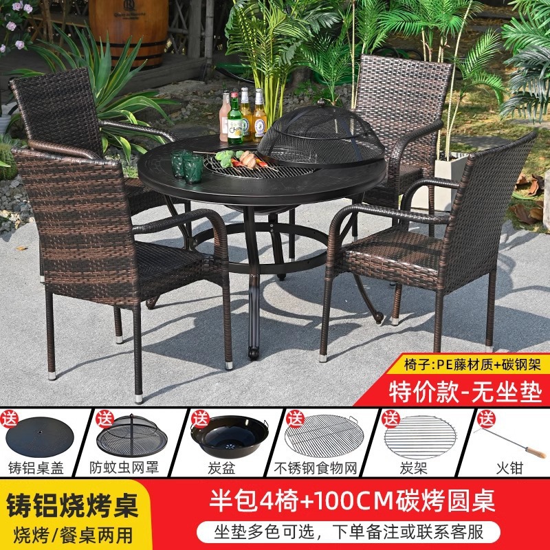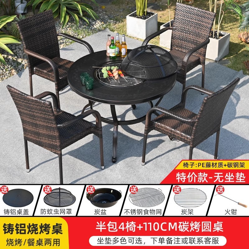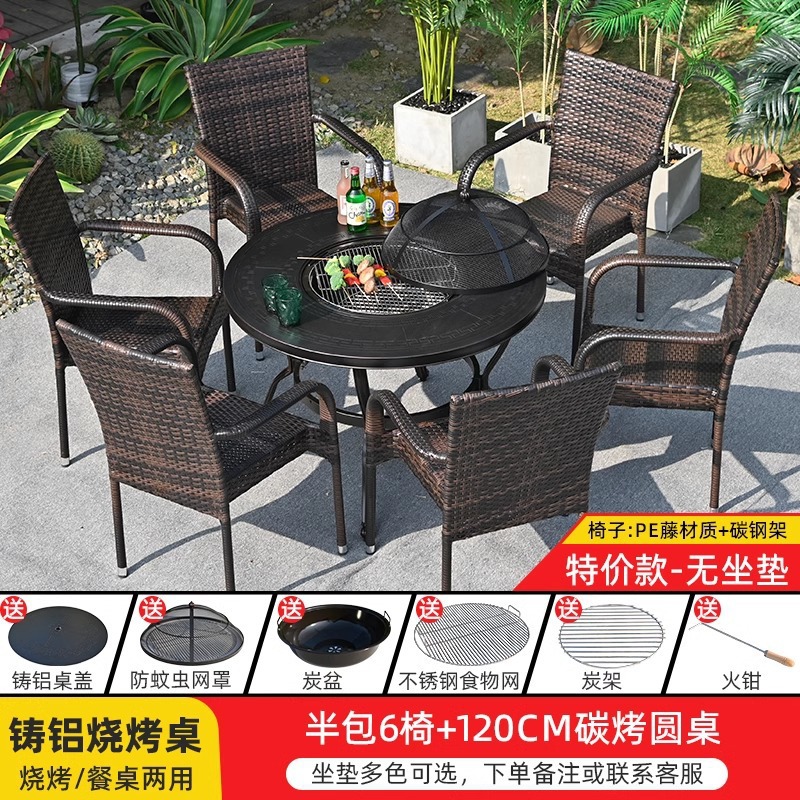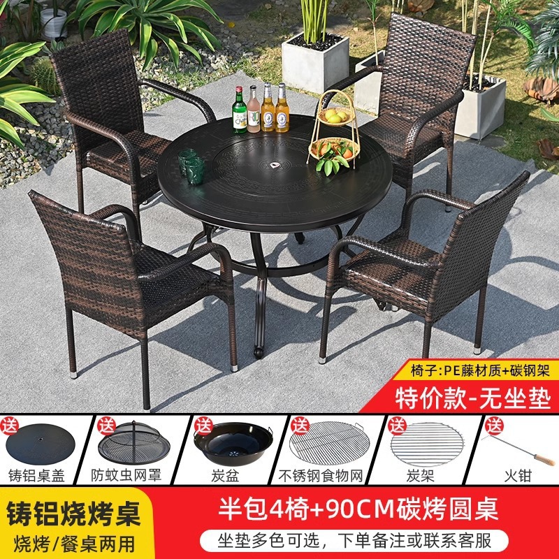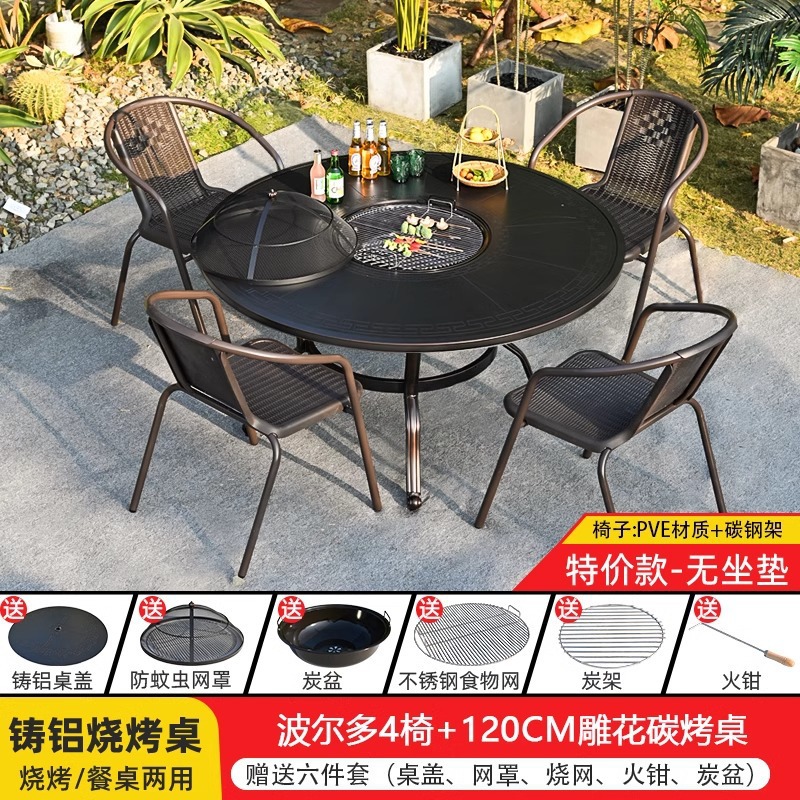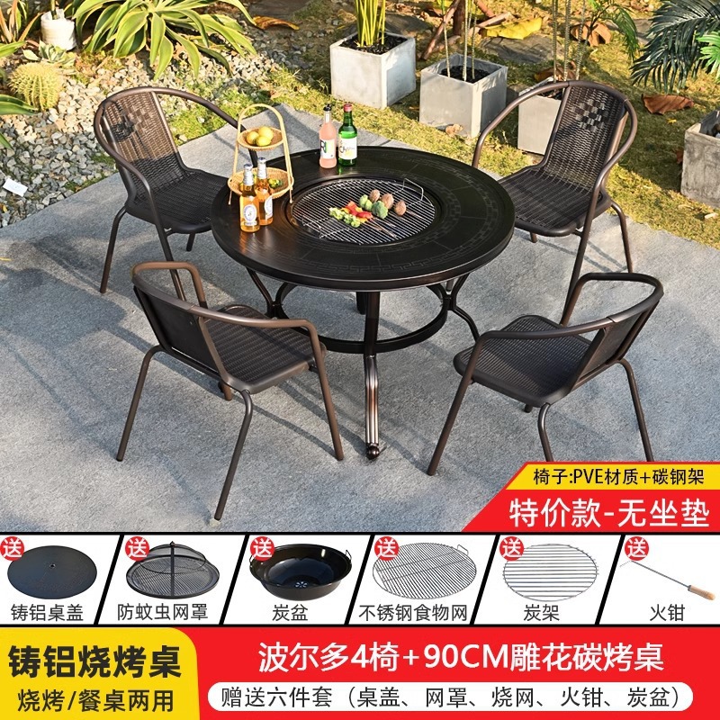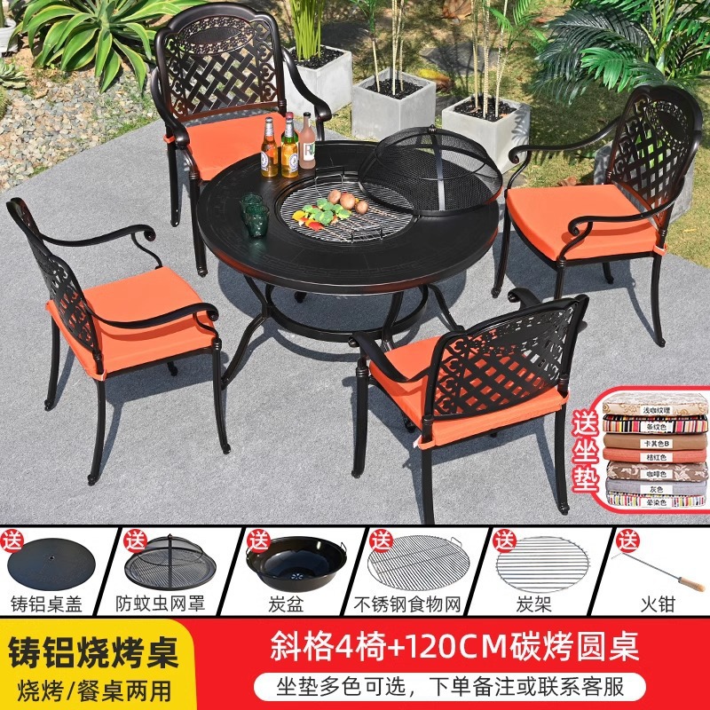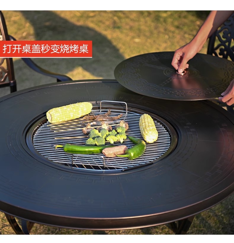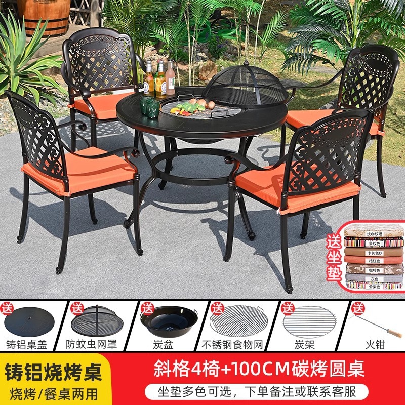 야외 테이블과 의자 전기 바베큐 식탁 주조 알루미늄 야외 안뜰 야외 정원 철 홈 레저 조합 바베큐 테이블스토어 가기