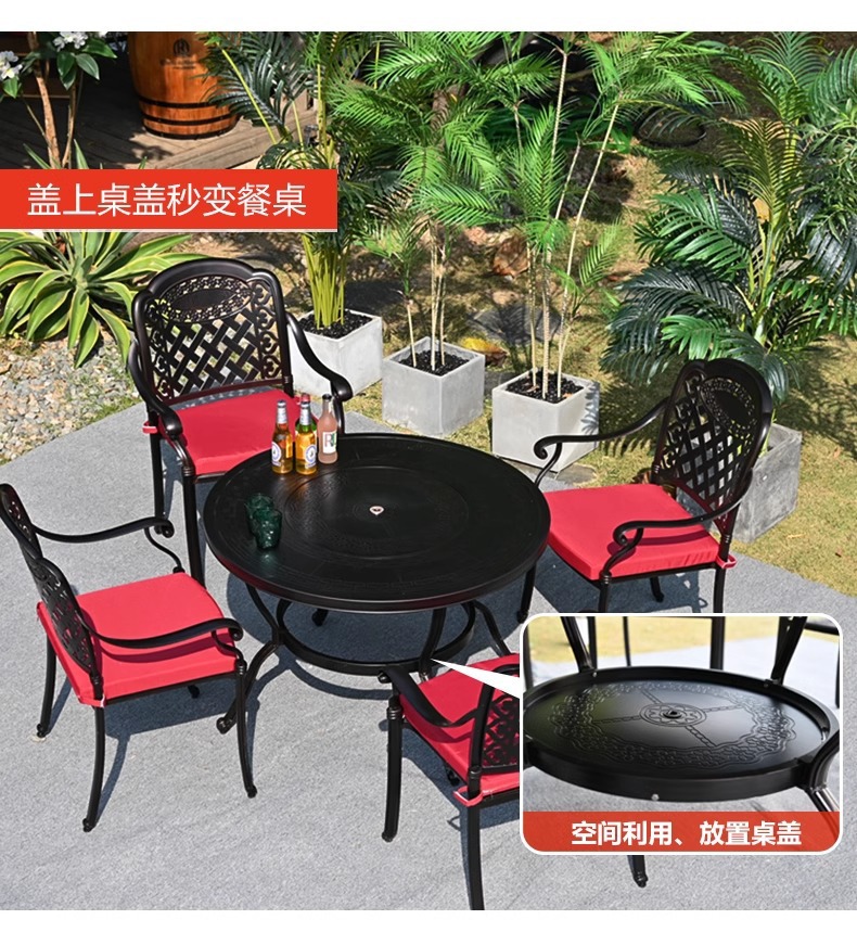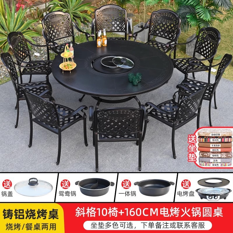 야외 테이블과 의자 전기 바베큐 식탁 주조 알루미늄 야외 안뜰 야외 정원 철 홈 레저 조합 바베큐 테이블