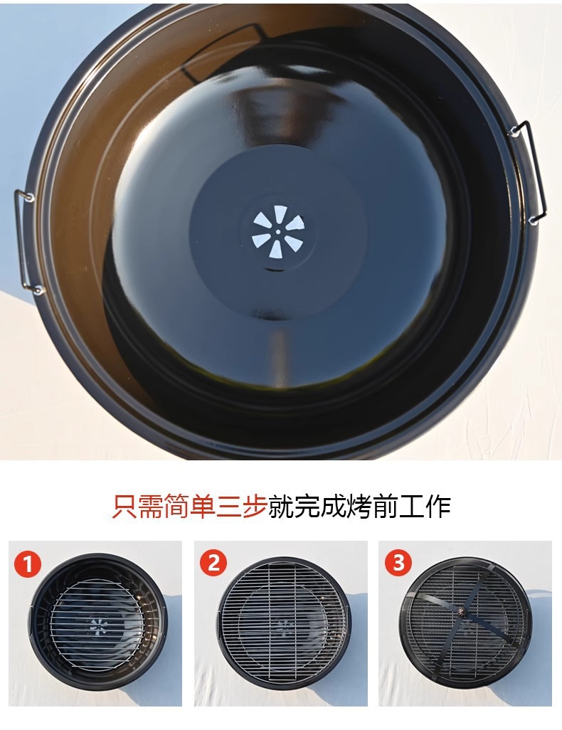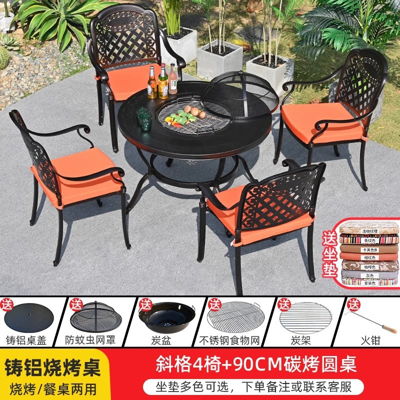 • 경사형 그리드 의자 4개 + 90cm 숯불구이 조각 원형 테이블