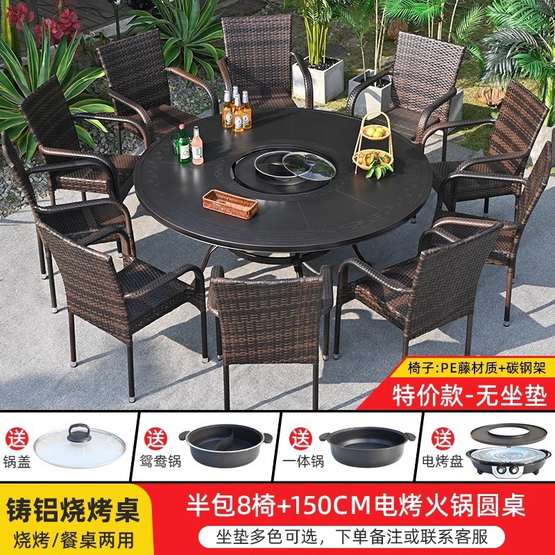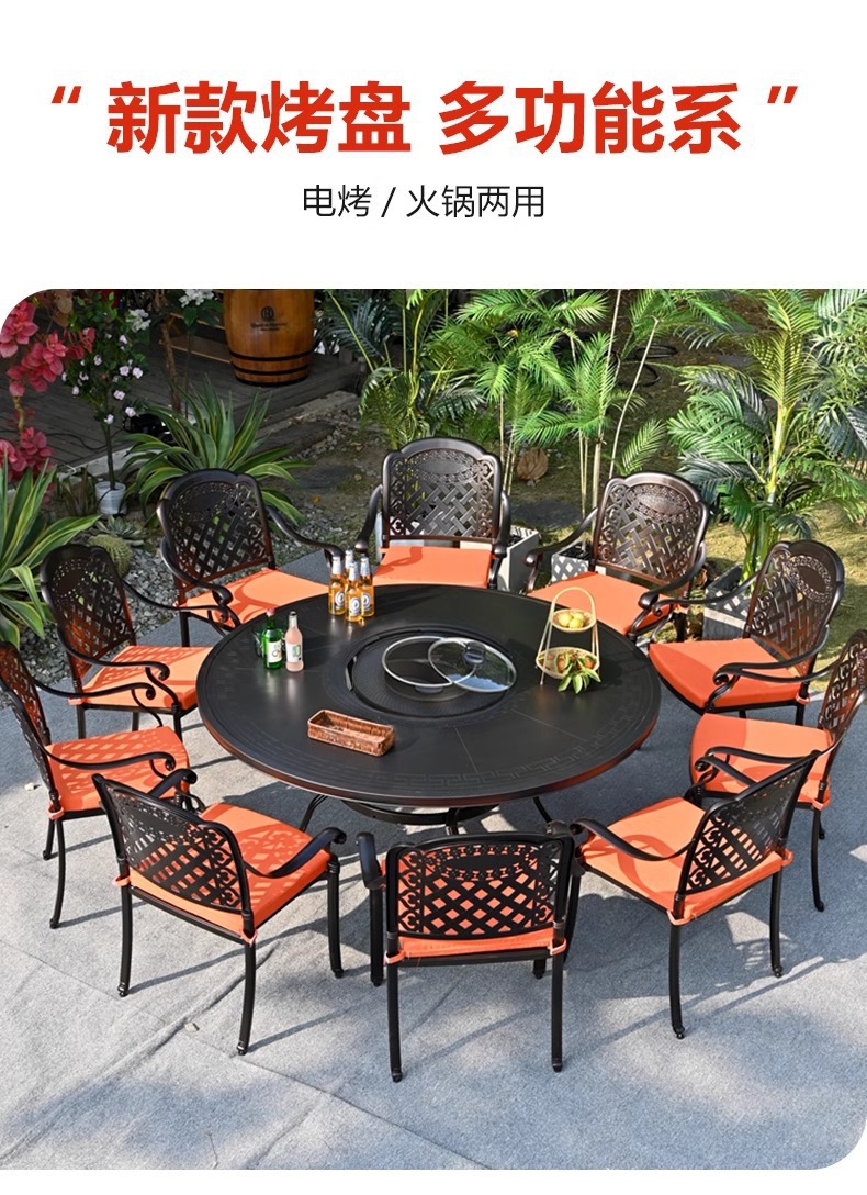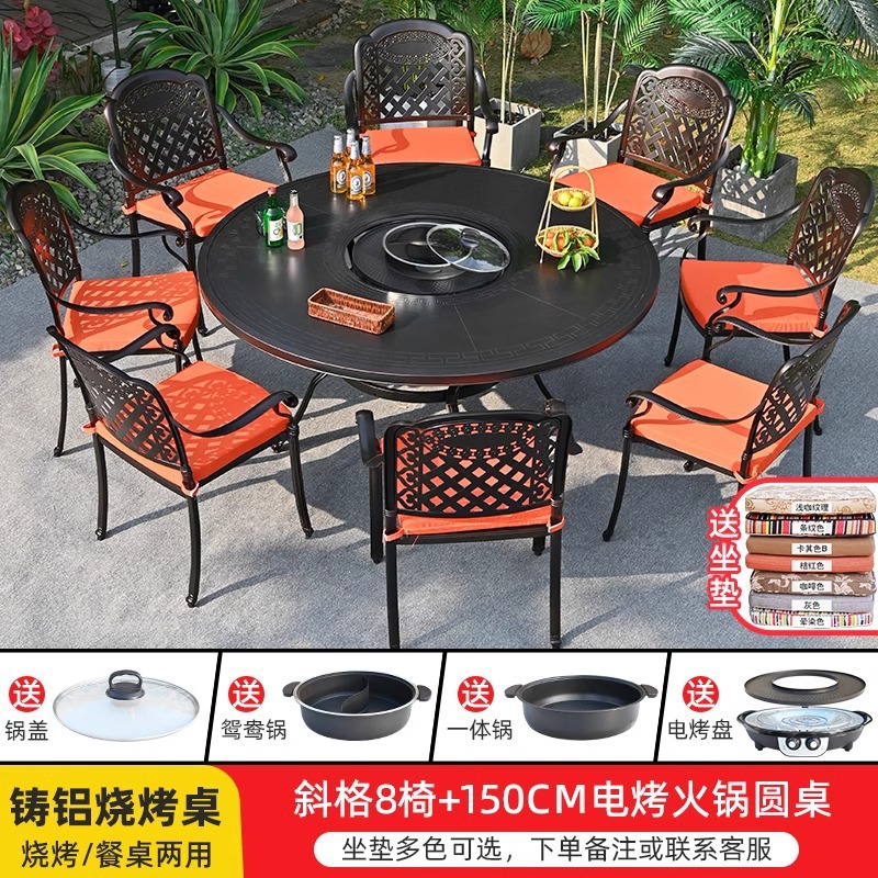 • 경사형 그리드 의자 8개 + 150CM 전기 냄비 조각 원형 테이블