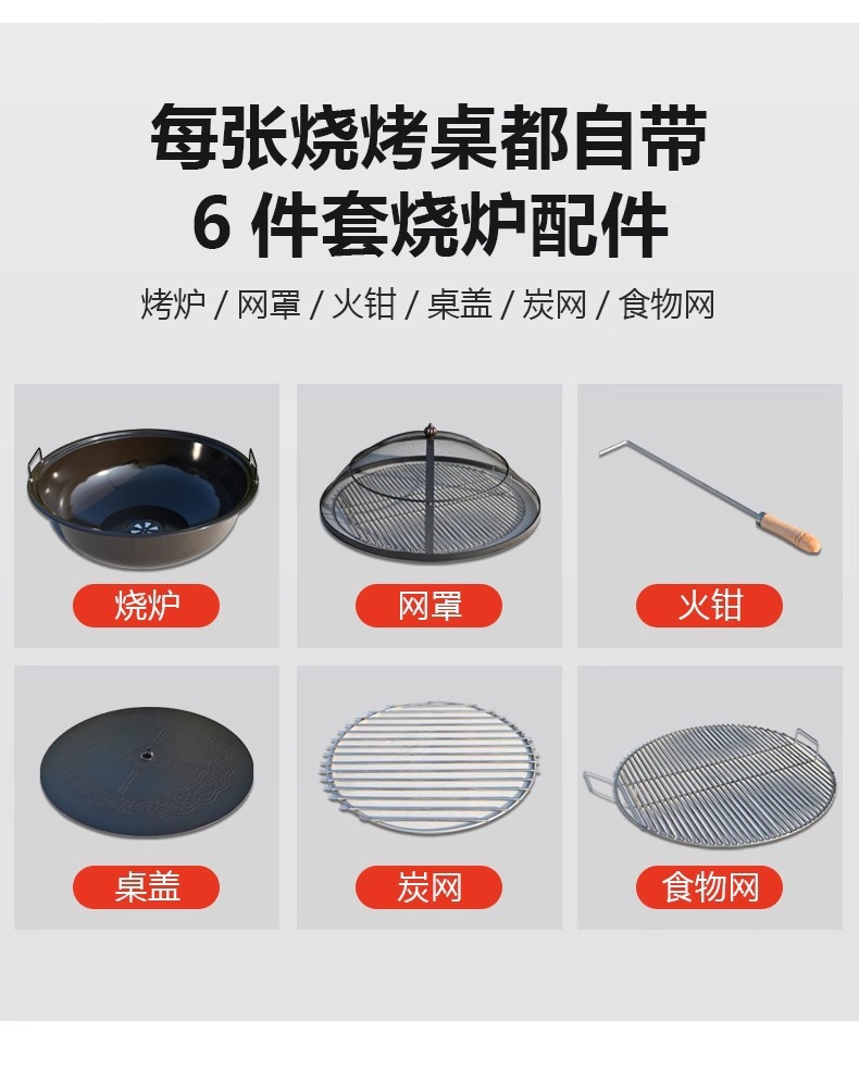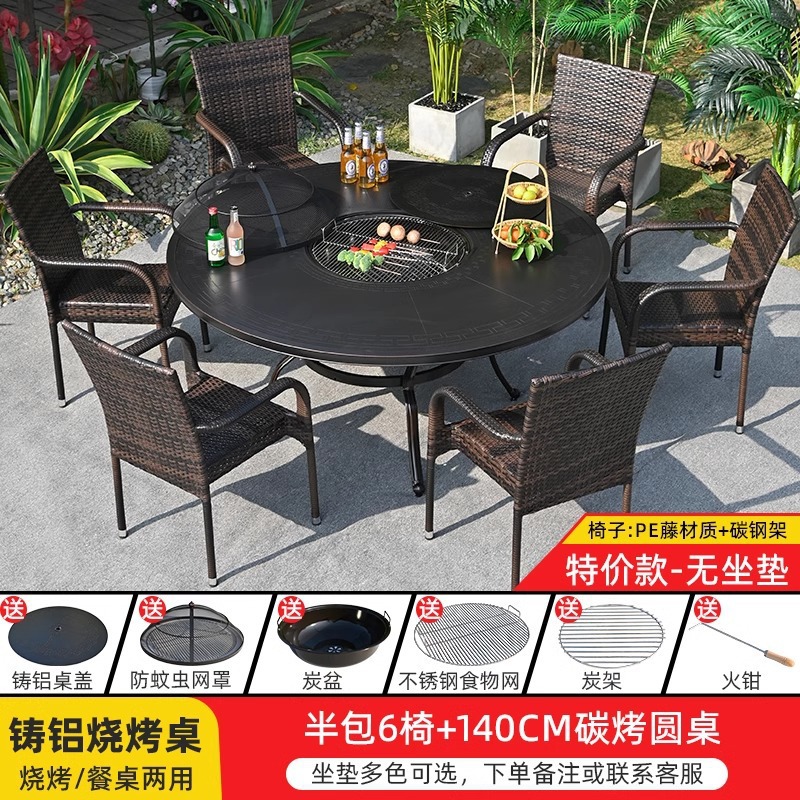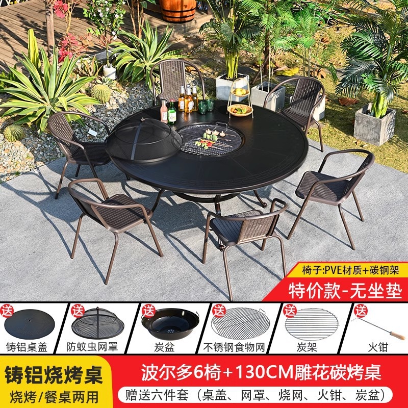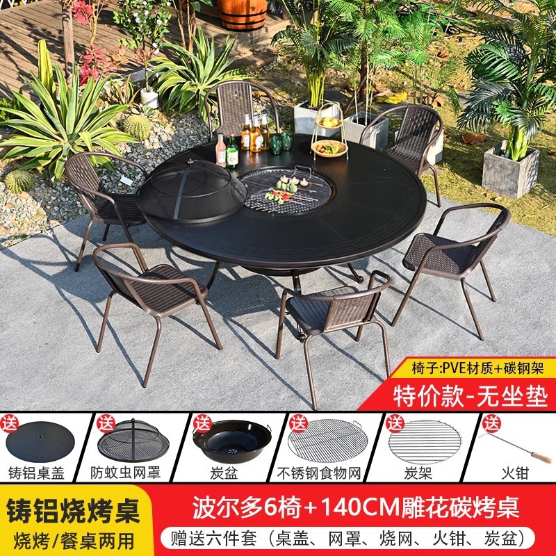 • 의자 6개 반팩 + 140cm 숯불구이 조각 원형 테이블
