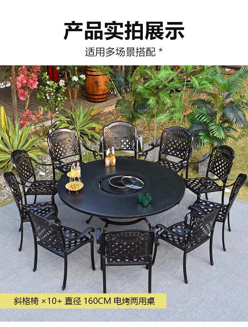 • 경사형 그리드 의자 10개 + 160CM 전기 냄비 조각 원형 테이블