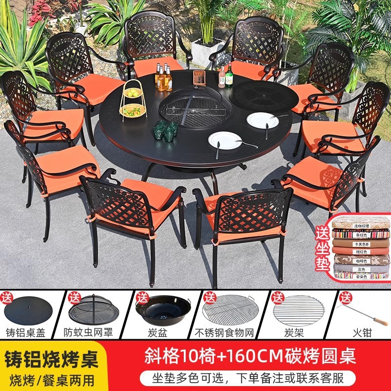 • 경사형 그리드 의자 10개 + 160cm 숯불구이 조각 원형 테이블