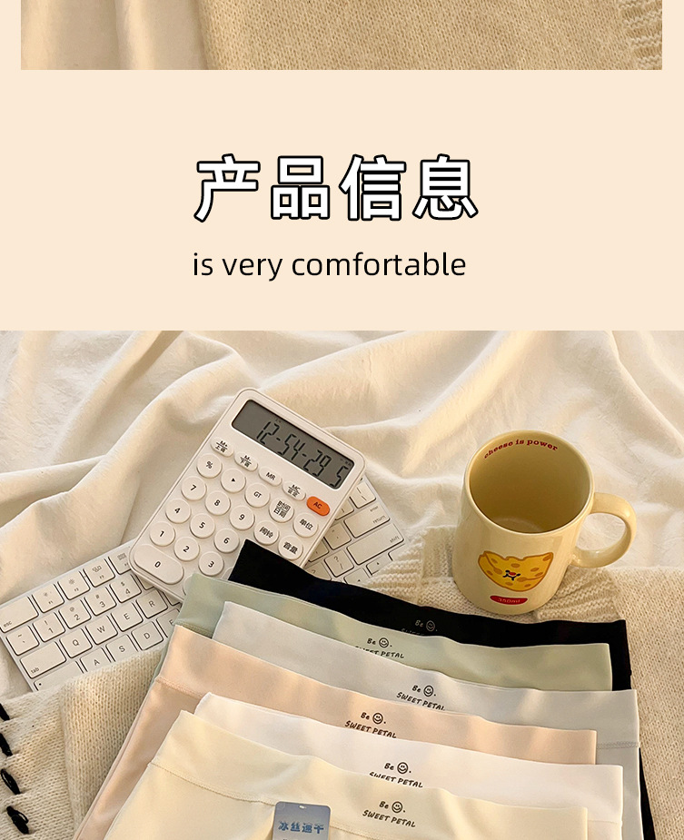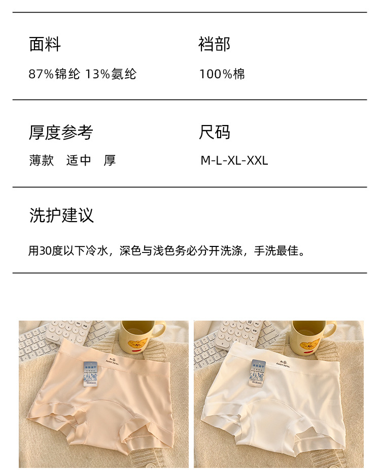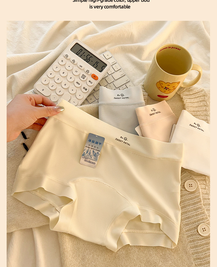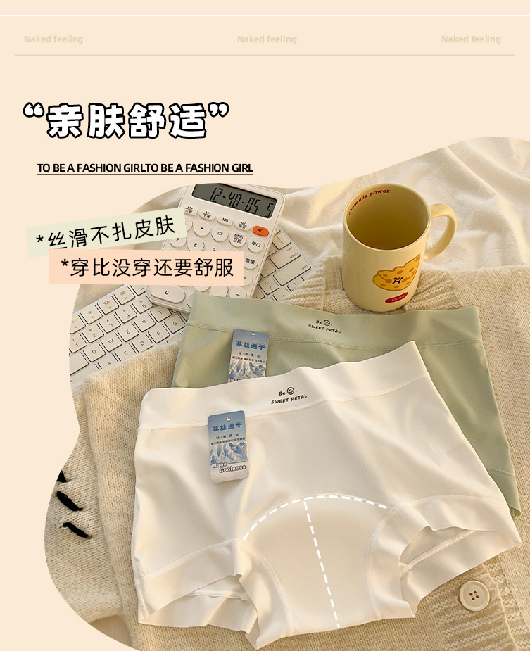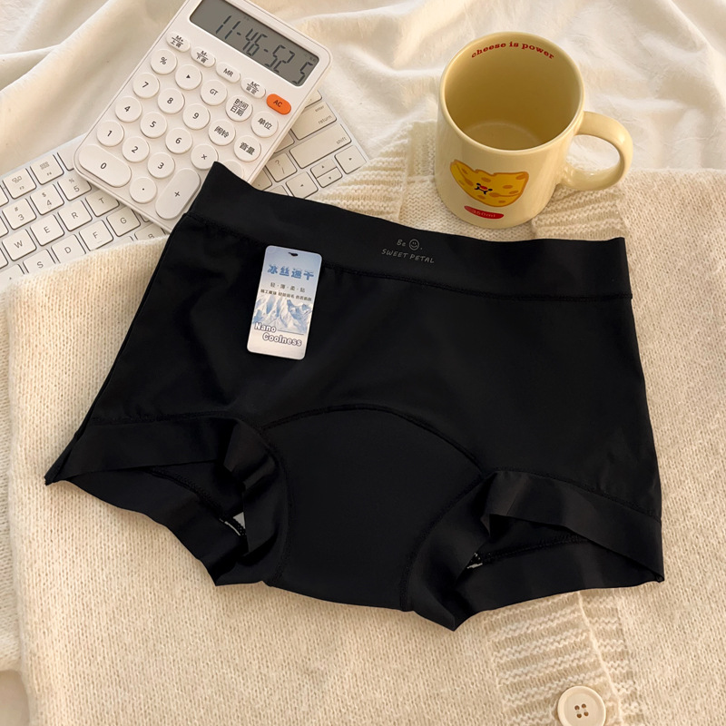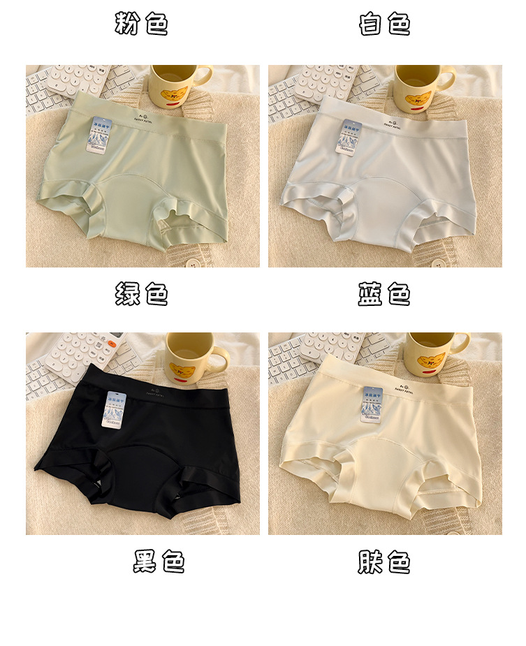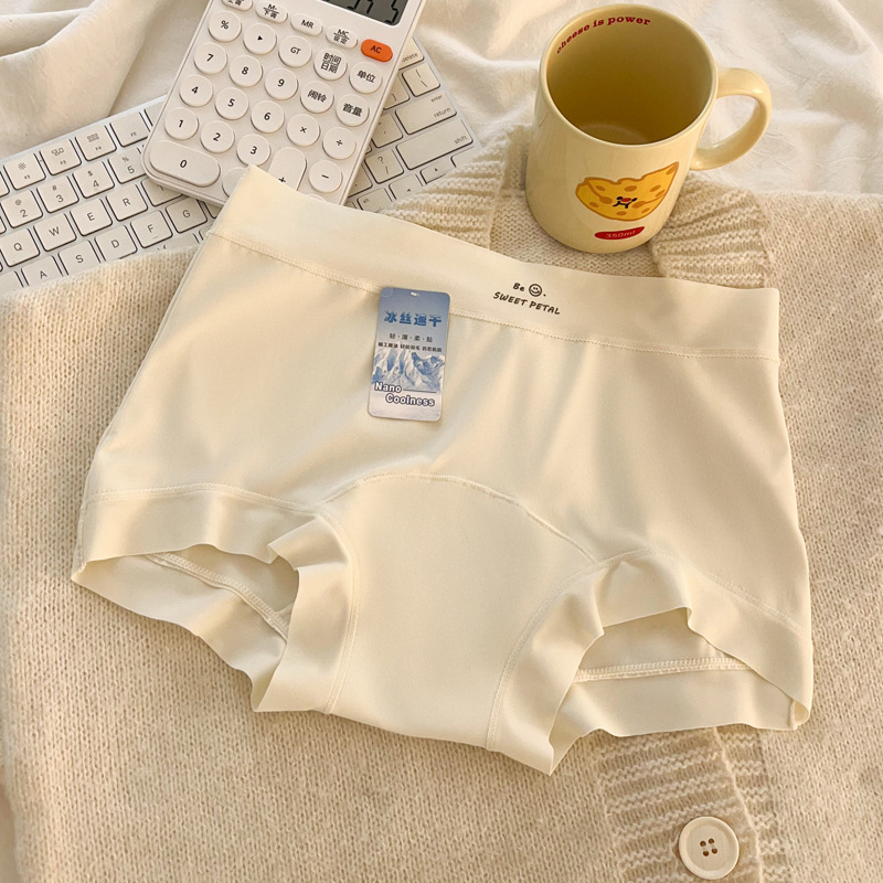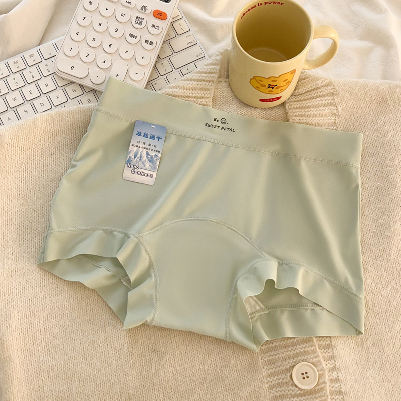 여성용 아이스 실크 심리스 복서 팬티, 10A 항균 면 가랑이, 중간 하이 웨이스트, 여학생용 사각 팬티, 가볍고 얇음