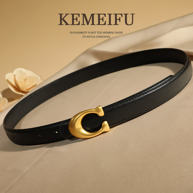 여성용 양면 소가죽 벨트, 패셔너블한 솔리드 청바지 벨트, 인 스타일 C 버클 고품질 여성용 벨트