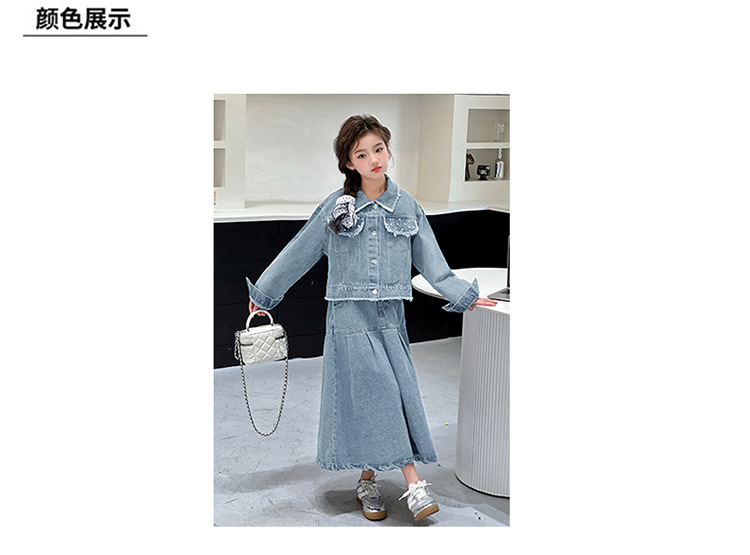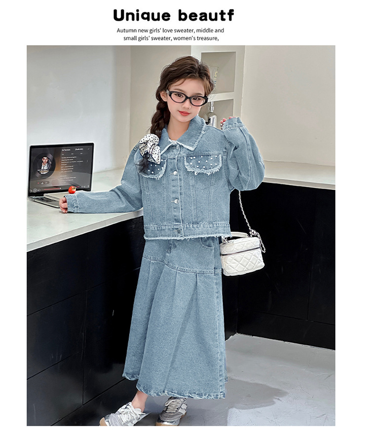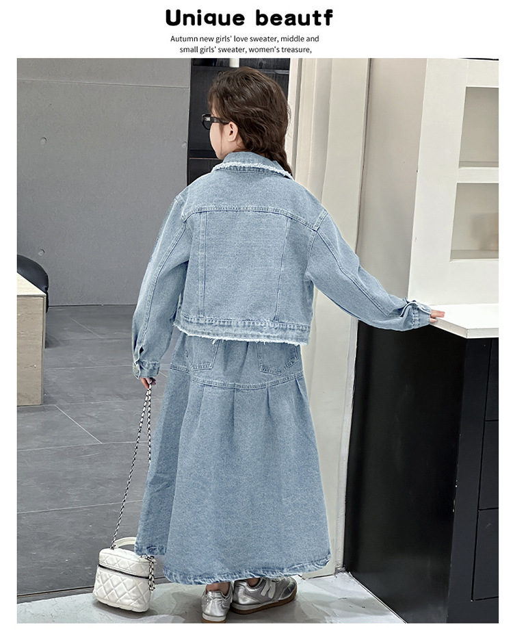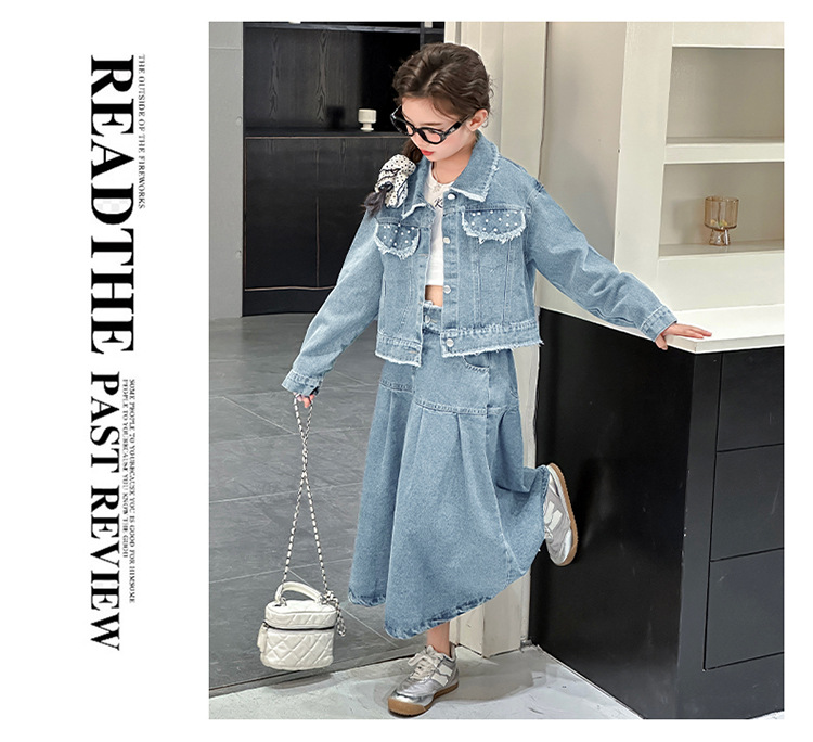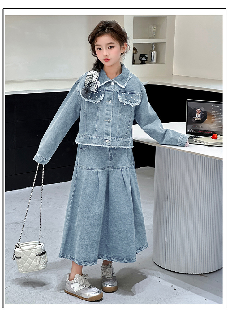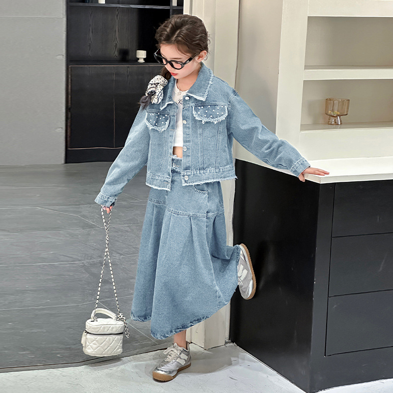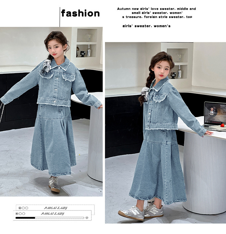 여자 로우 엣지 데님 슈트 2025 가을 새로운 스타일 어린 소녀의 세련되고 다재다능한 재킷과 스커트 투피스 트렌디 세트