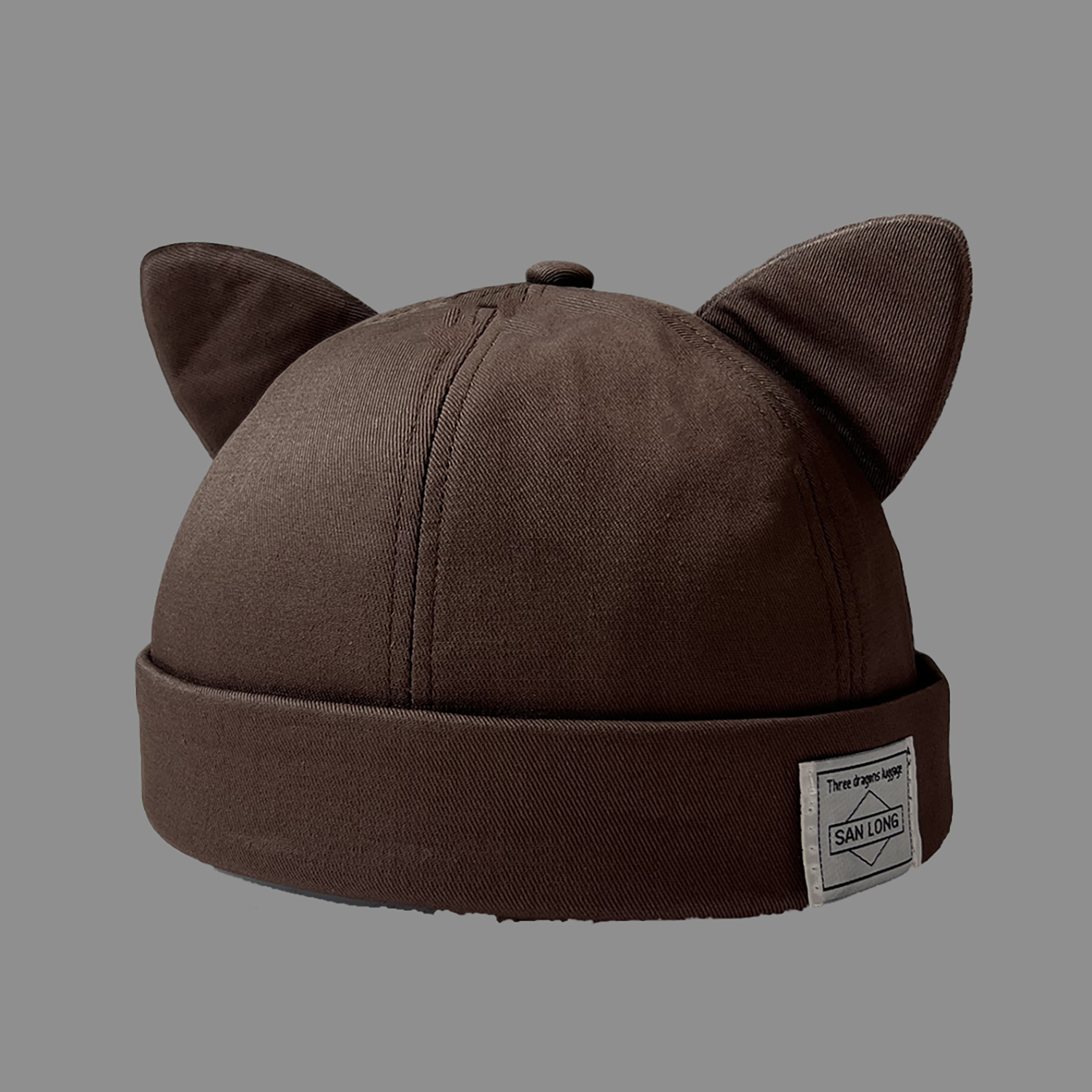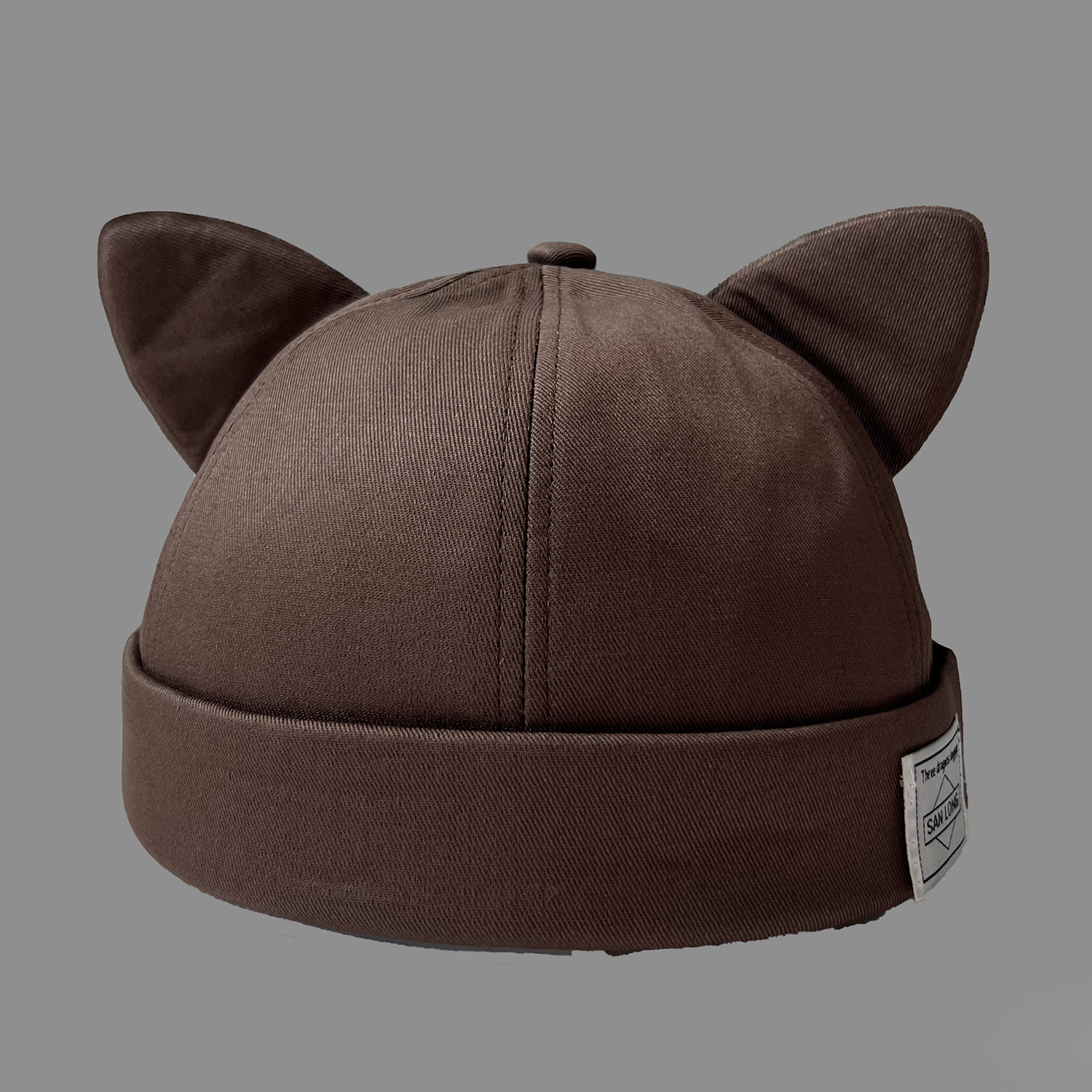여름 여성을 위한 일본의 새로운 귀엽고 다재다능한 고양이 귀 멜론 스킨 모자 한국식 챙 없는 돔 재패니즈 모자 트렌디한 주인 모자