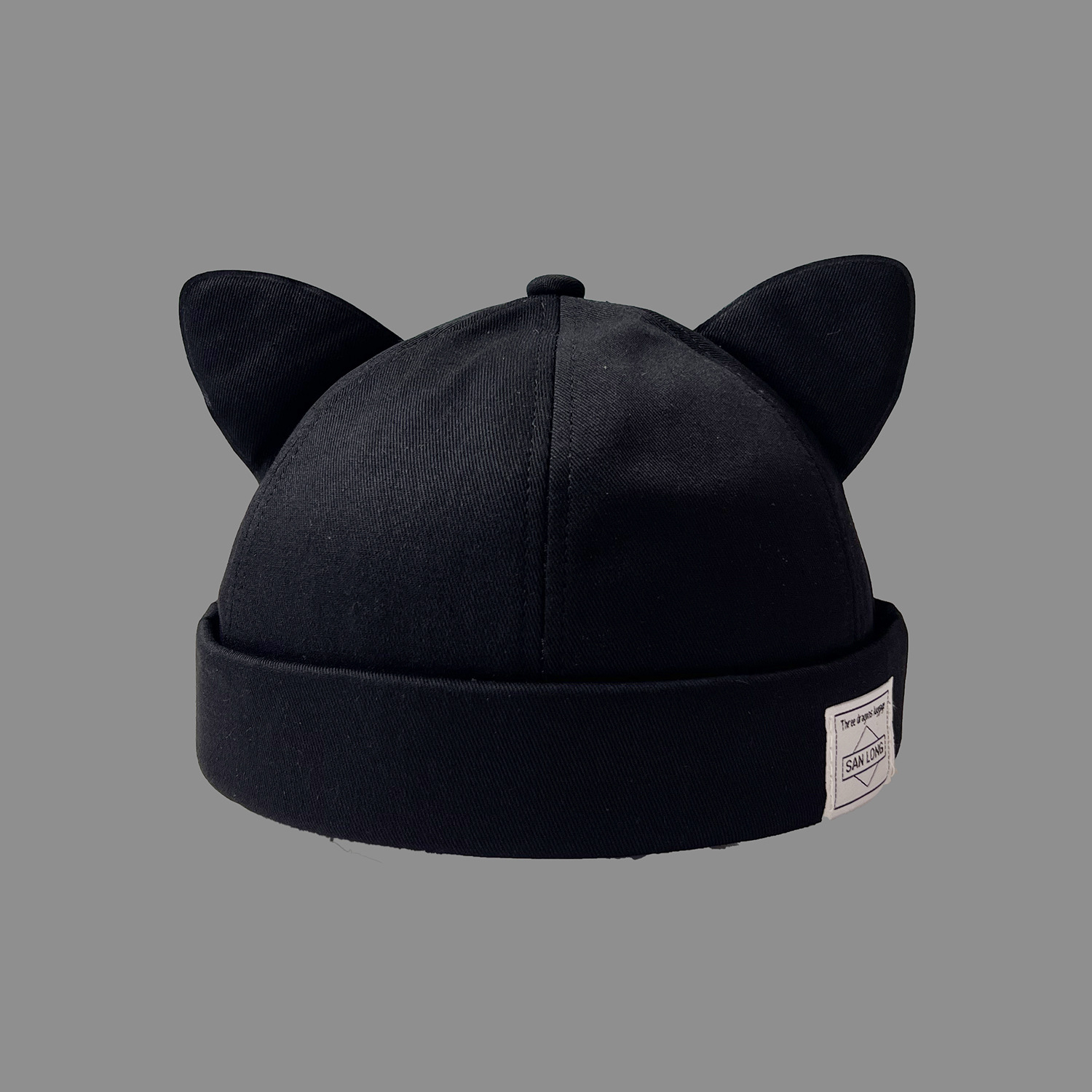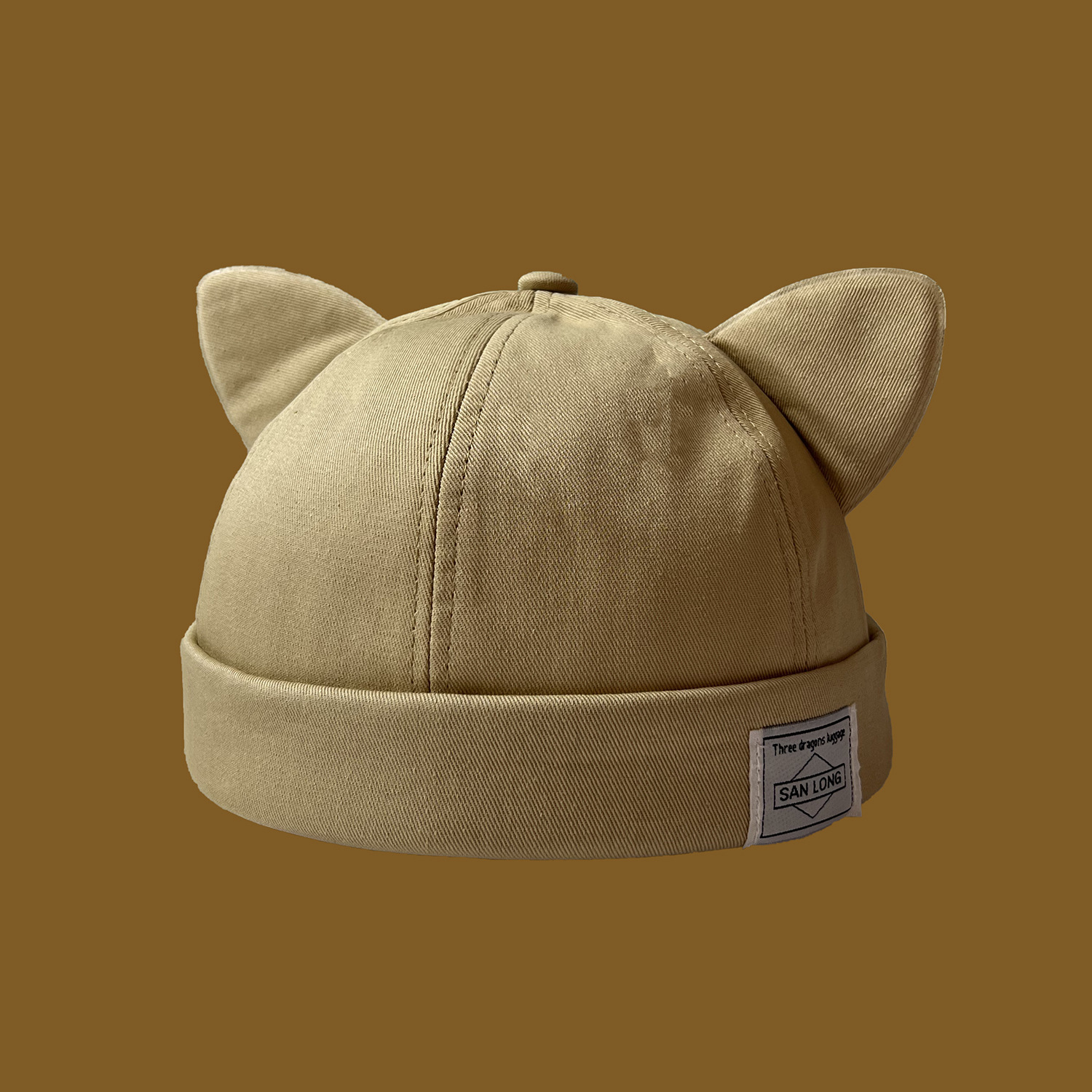 여름 여성을 위한 일본의 새로운 귀엽고 다재다능한 고양이 귀 멜론 스킨 모자 한국식 챙 없는 돔 재패니즈 모자 트렌디한 주인 모자스토어 가기