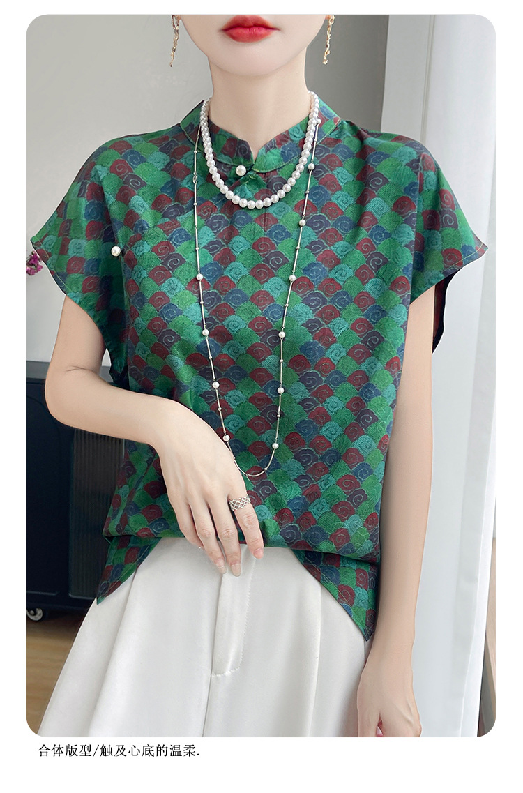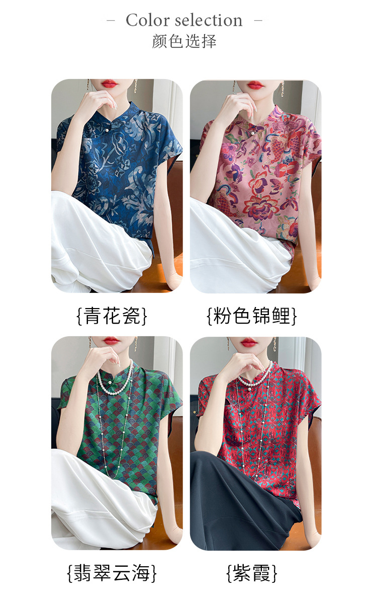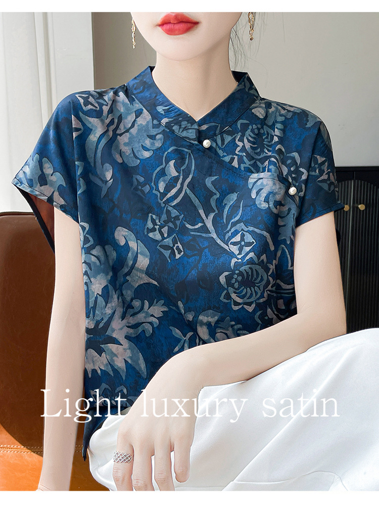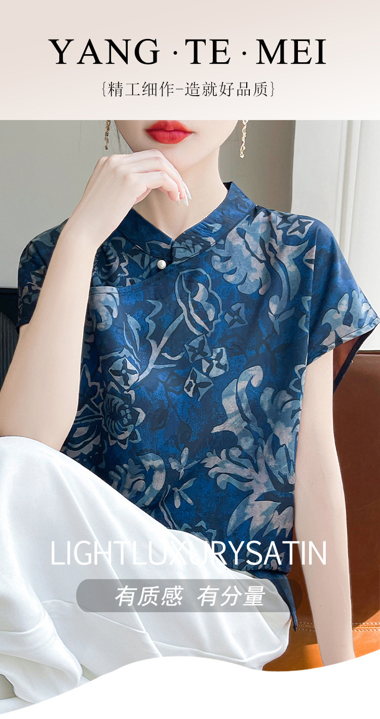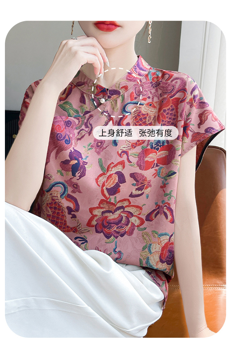 여름 실크 향기로운 구름 원사 인쇄 여성을위한 새로운 중국 스타일 반팔 탑 국가 스타일 개선 된 버튼 치파오 칼라 셔츠 dropshipping스토어 가기