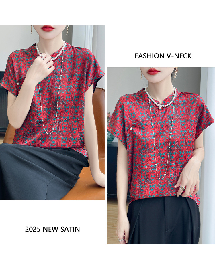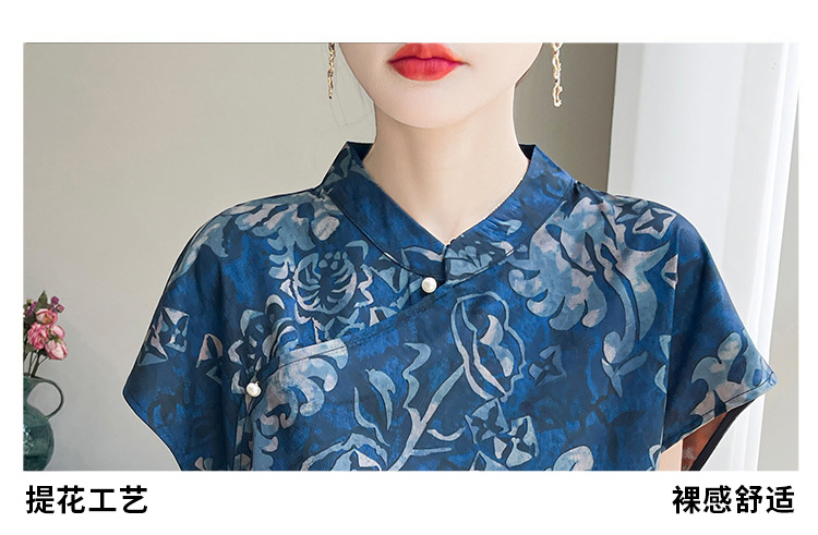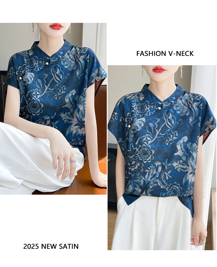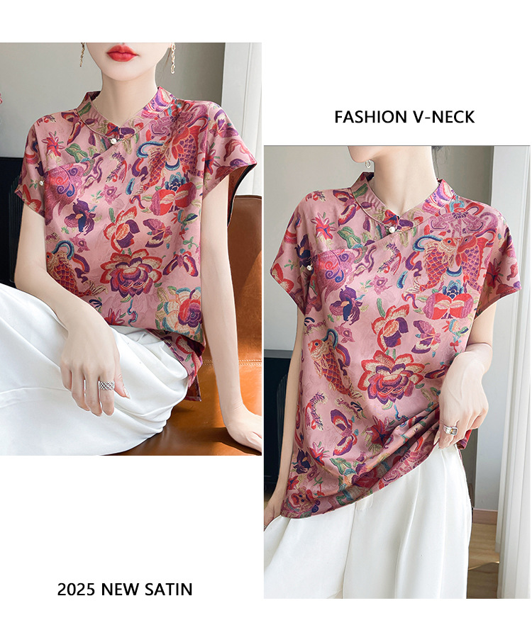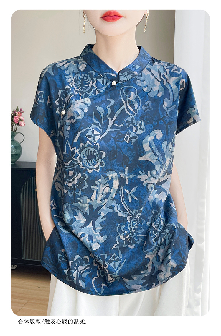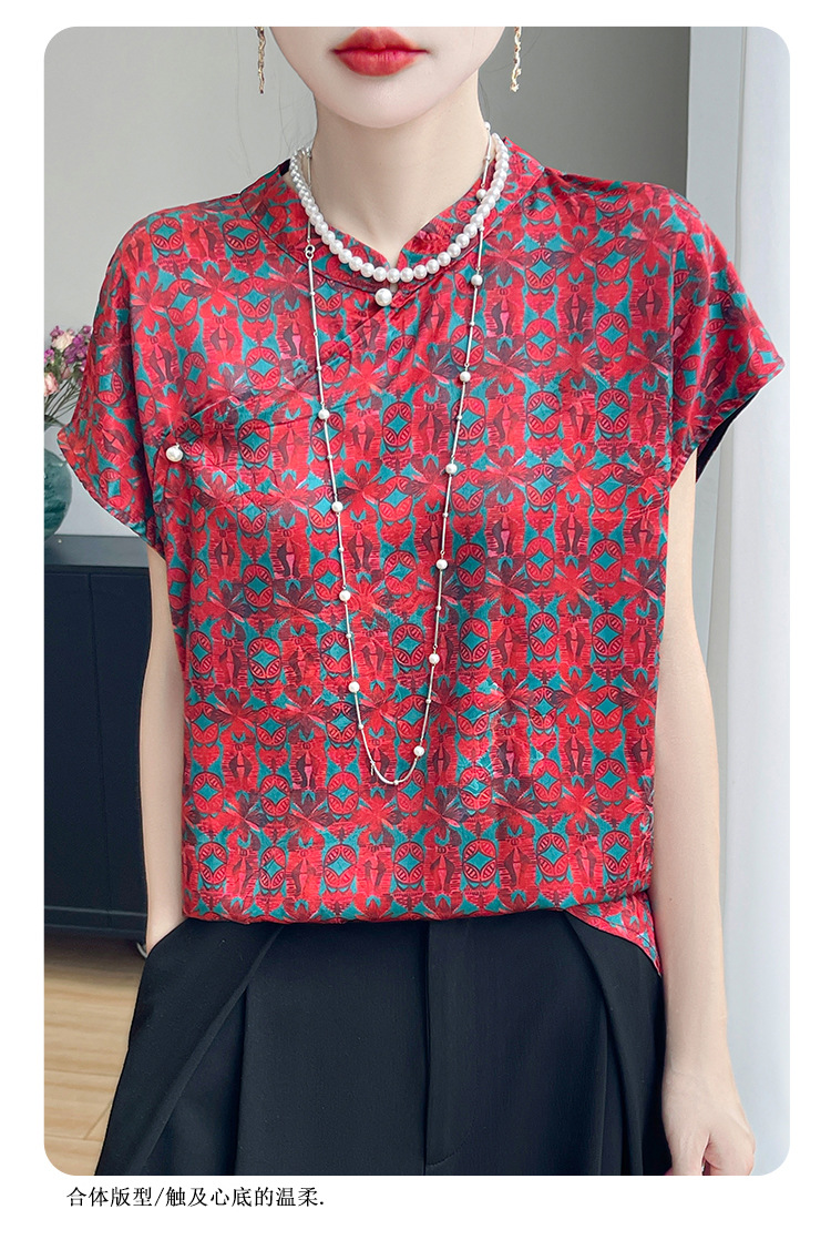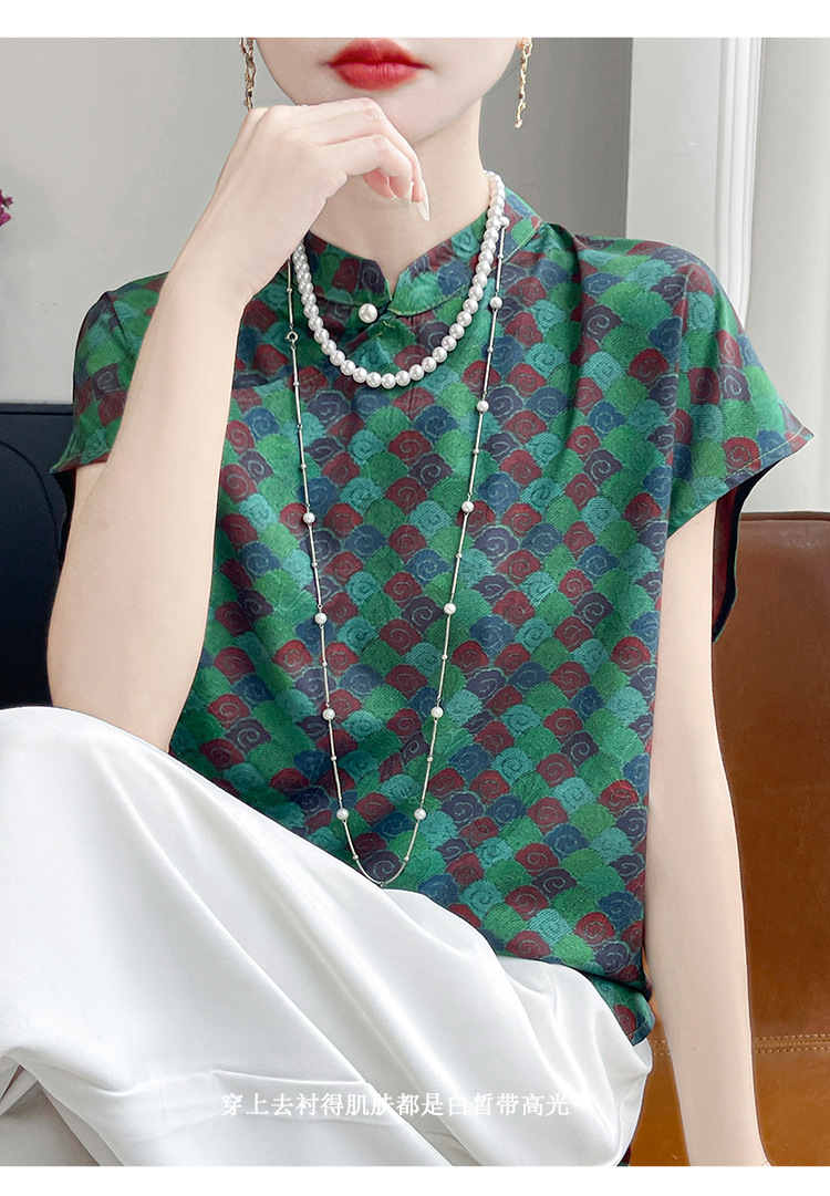 여름 실크 향기로운 구름 원사 인쇄 여성을위한 새로운 중국 스타일 반팔 탑 국가 스타일 개선 된 버튼 치파오 칼라 셔츠 dropshipping스토어 가기