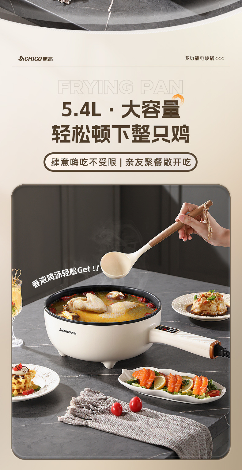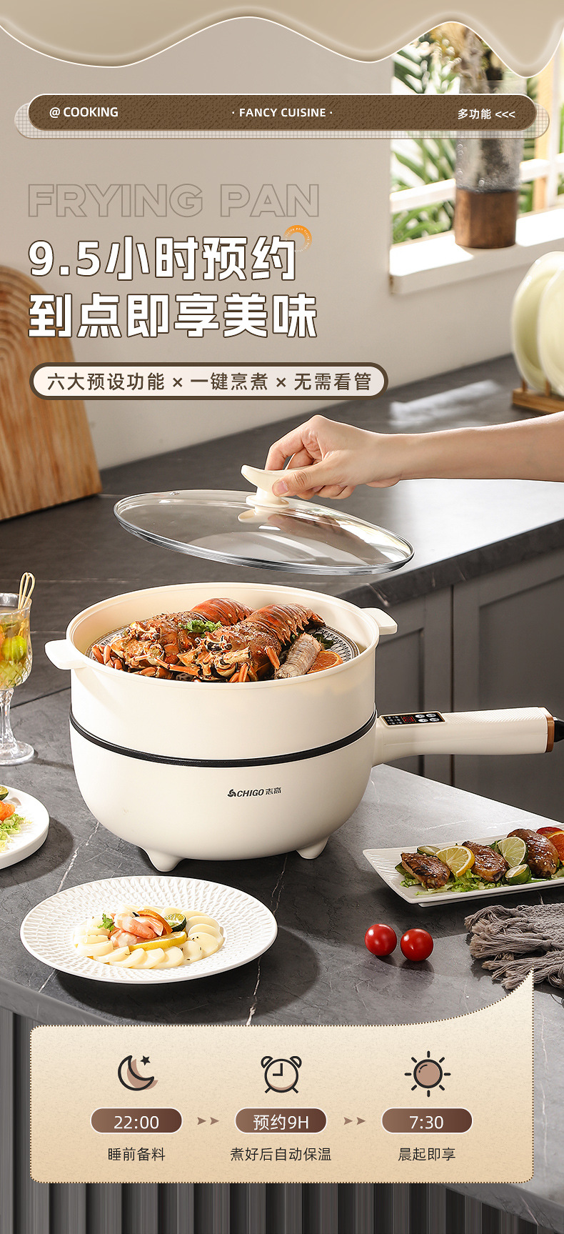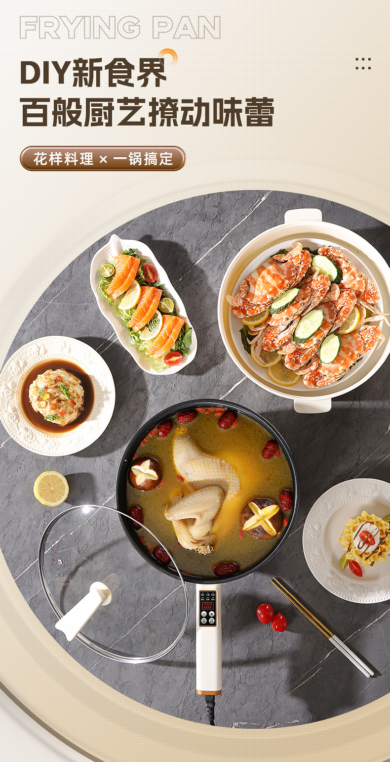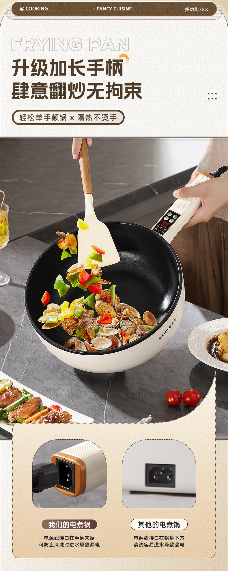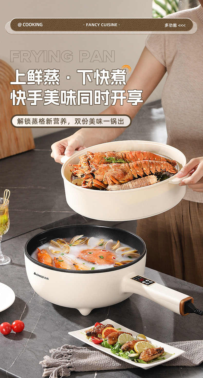 브랜드 전기 프라이팬, 다기능 논스틱 전기 냄비, 가정용 전기 냄비, 찜, 볶음, 튀김, 전기 핫팟, 스마트형스토어 가기