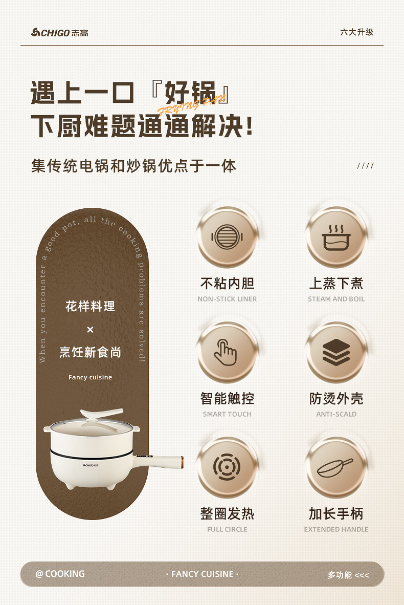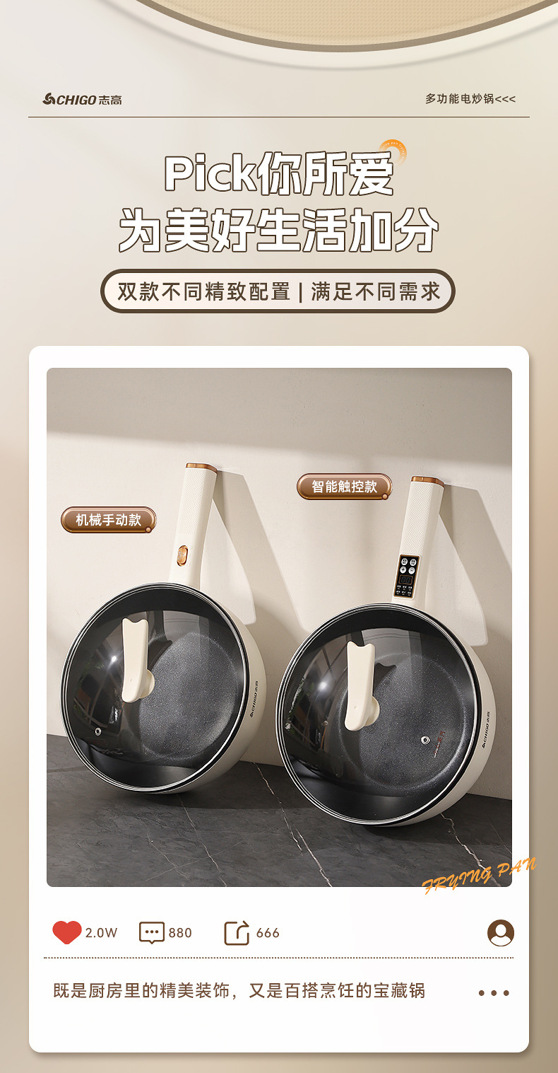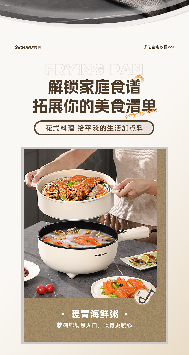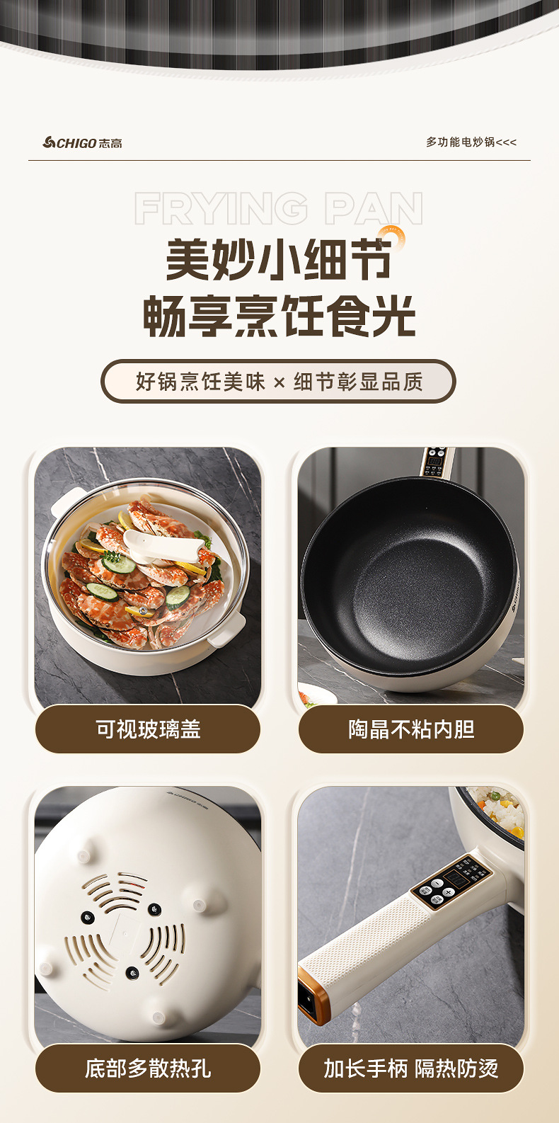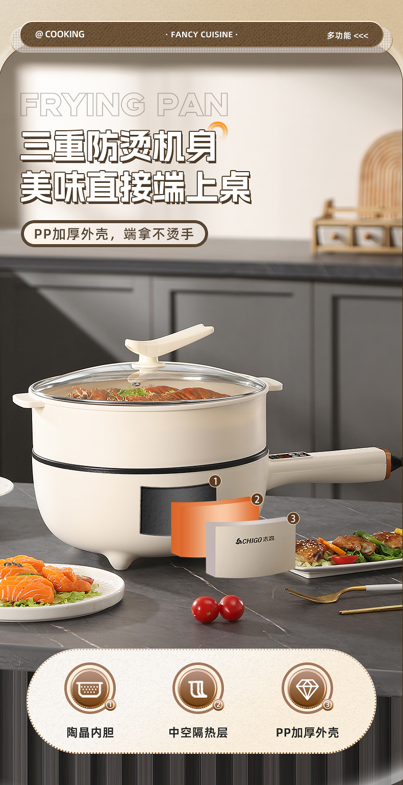 브랜드 전기 프라이팬, 다기능 논스틱 전기 냄비, 가정용 전기 냄비, 찜, 볶음, 튀김, 전기 핫팟, 스마트형스토어 가기