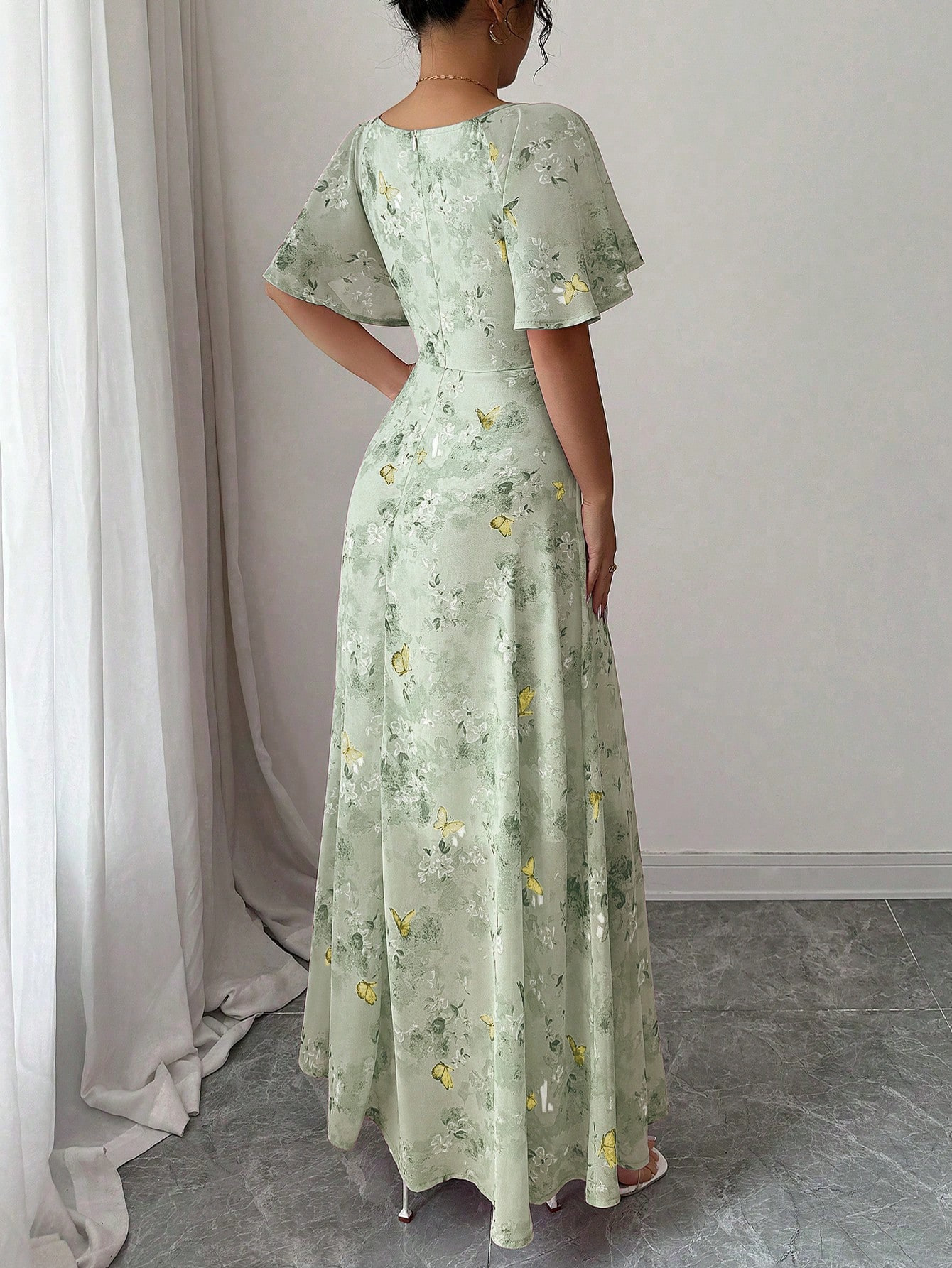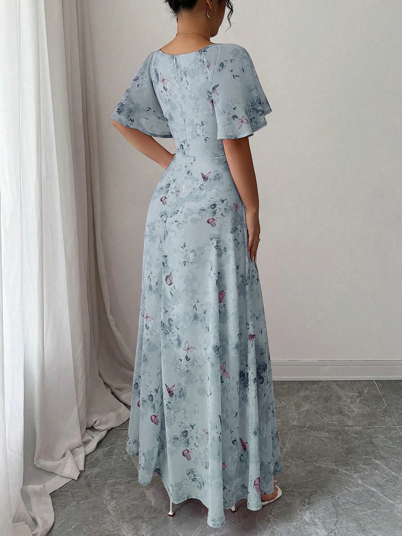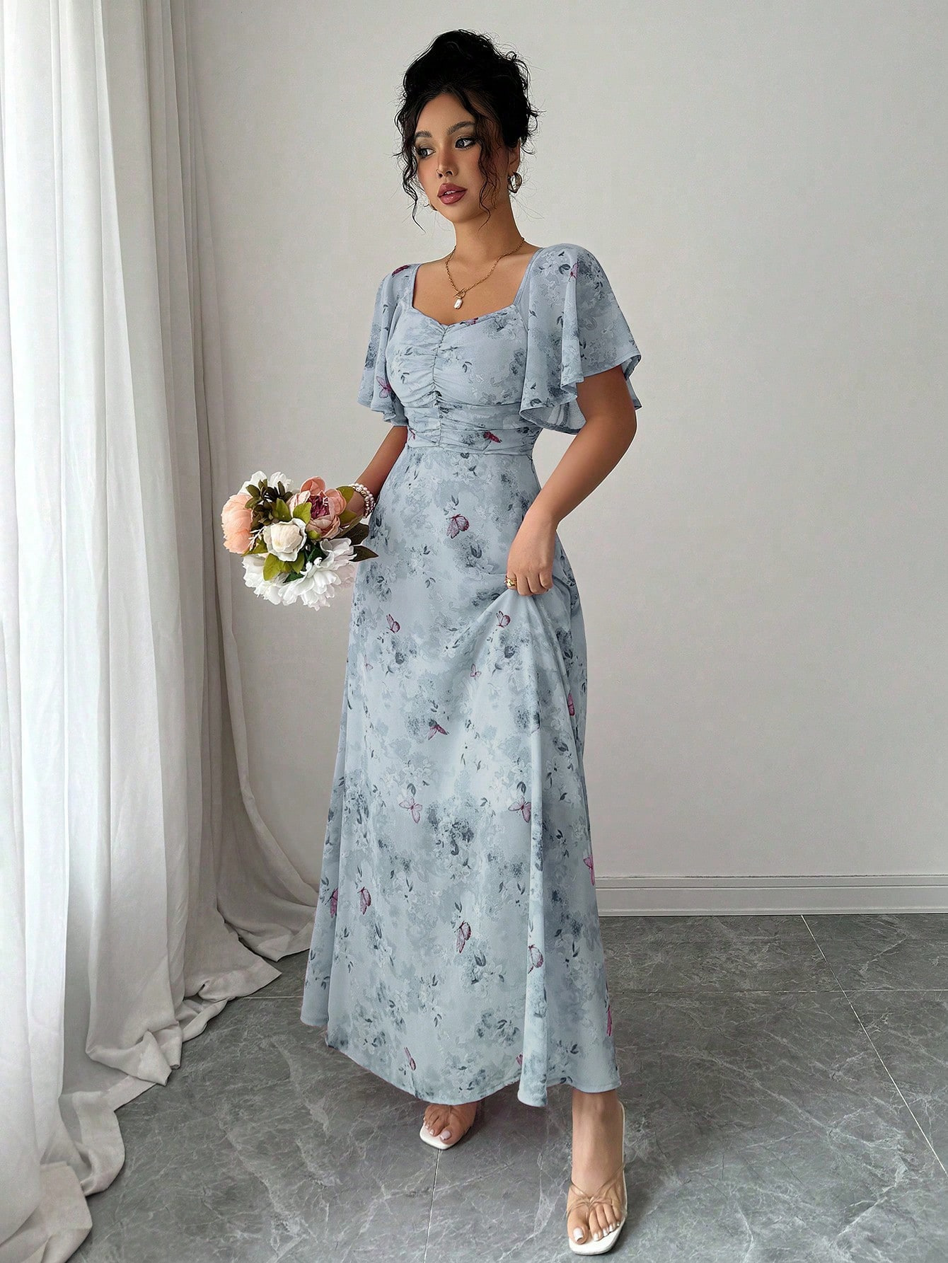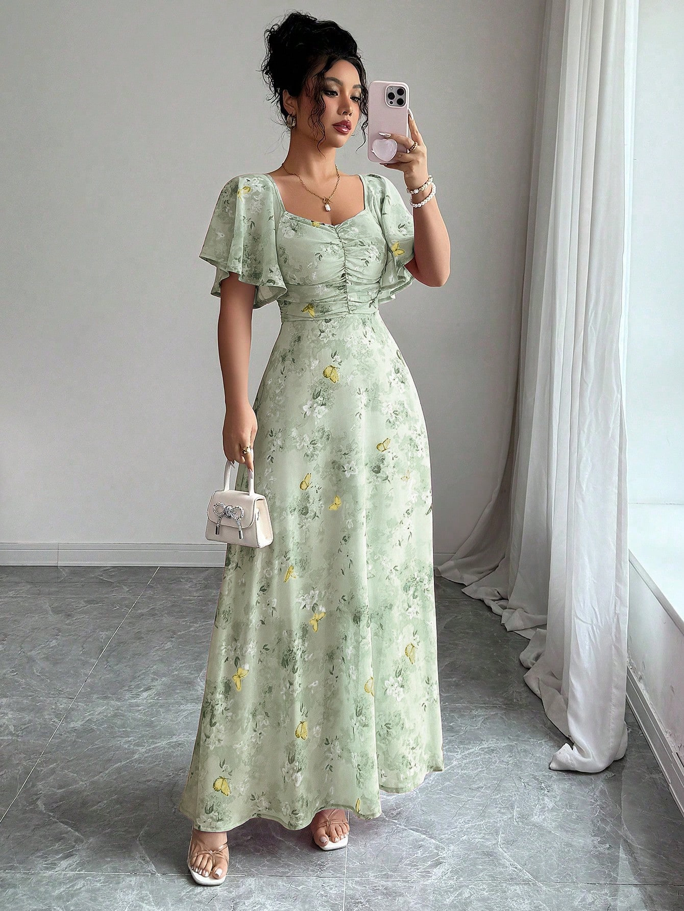 2025년 크로스보더 아마존 패션 신제품 유럽과 미국 여성 여름 꽃무늬 기질 슬리밍 및 연령 감소 롱 드레스