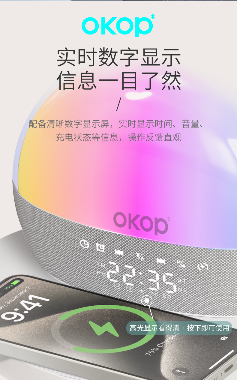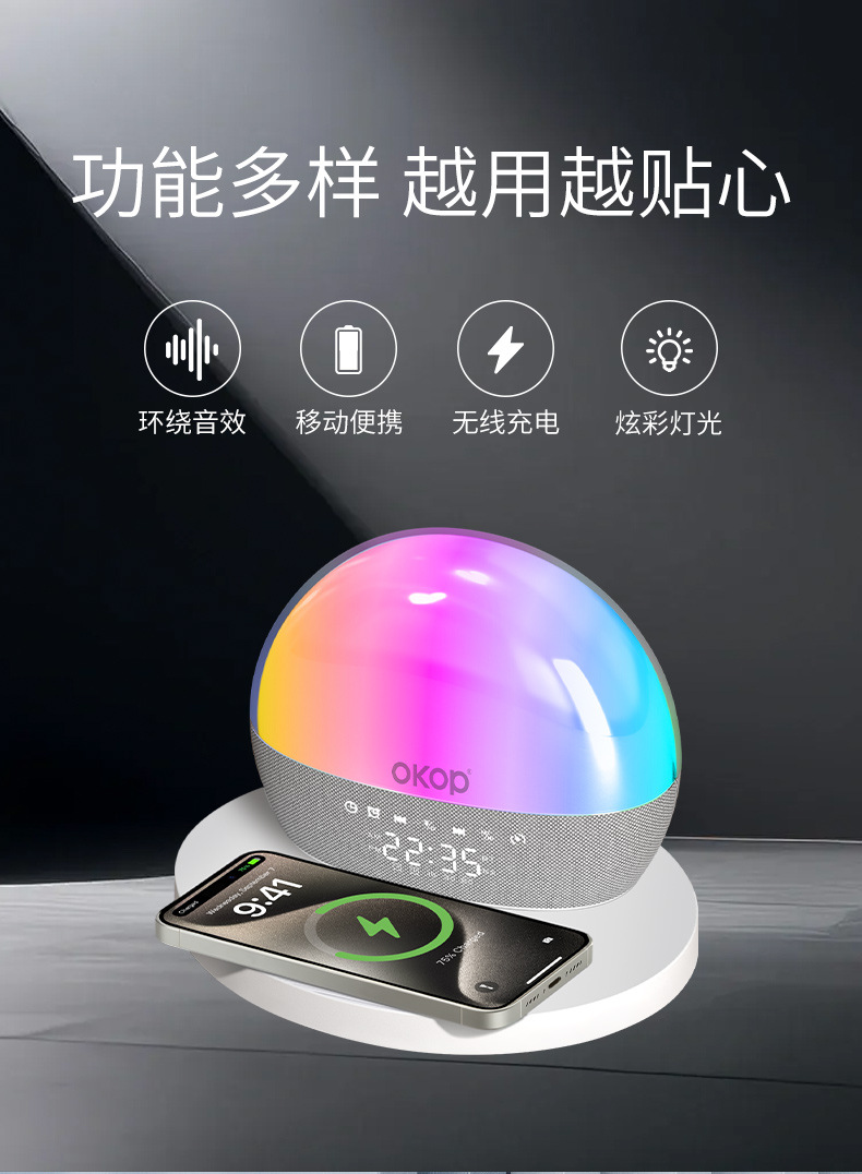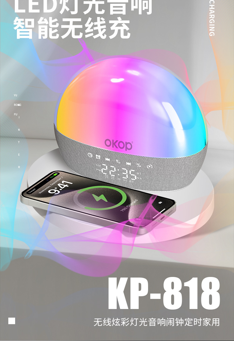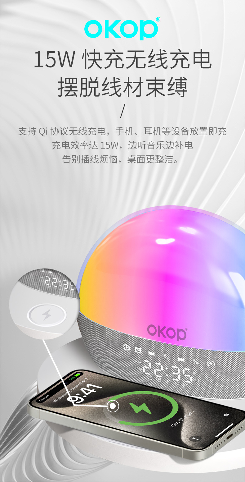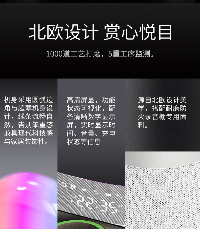 818 데스크탑 블루투스 스피커 15w 무선 충전 알람 시계 타이머 RGB 분위기 조명 화이트 노이즈 해외 인기 상품