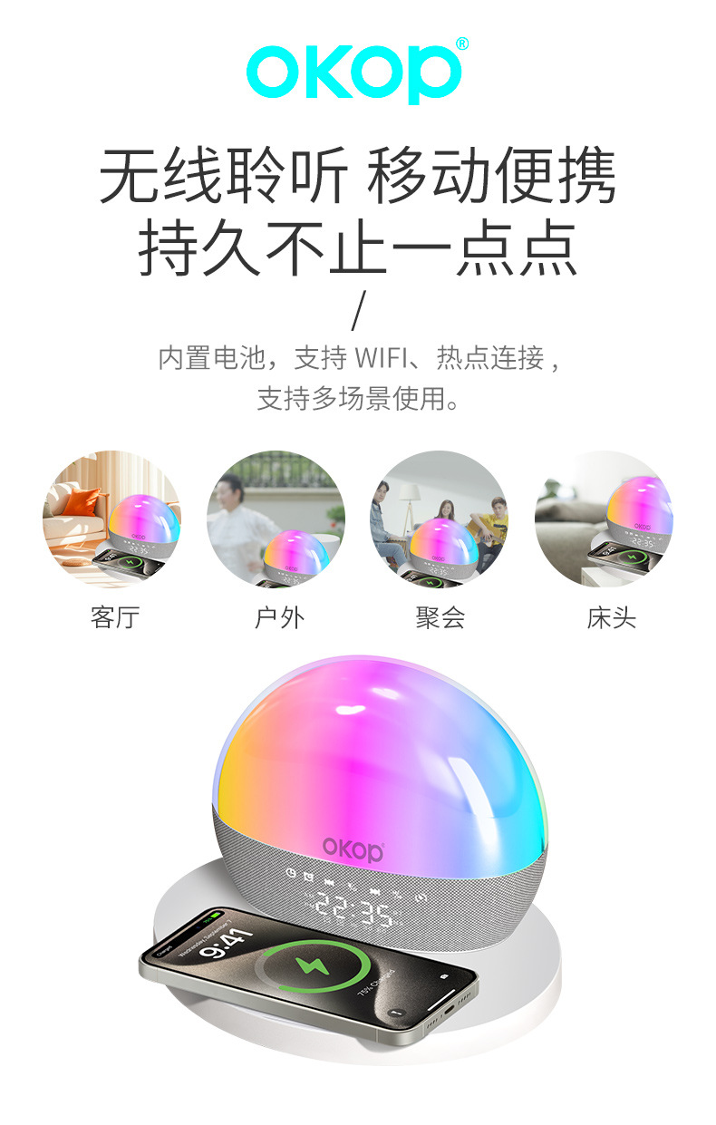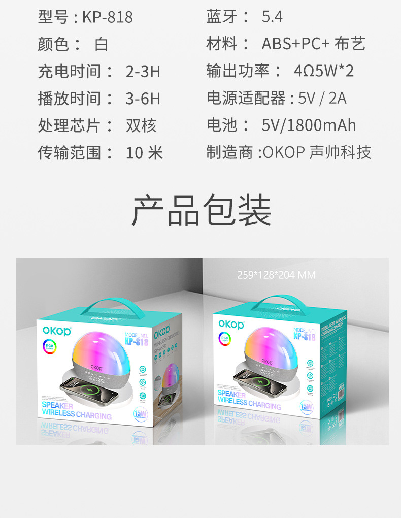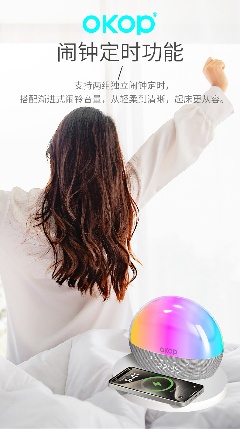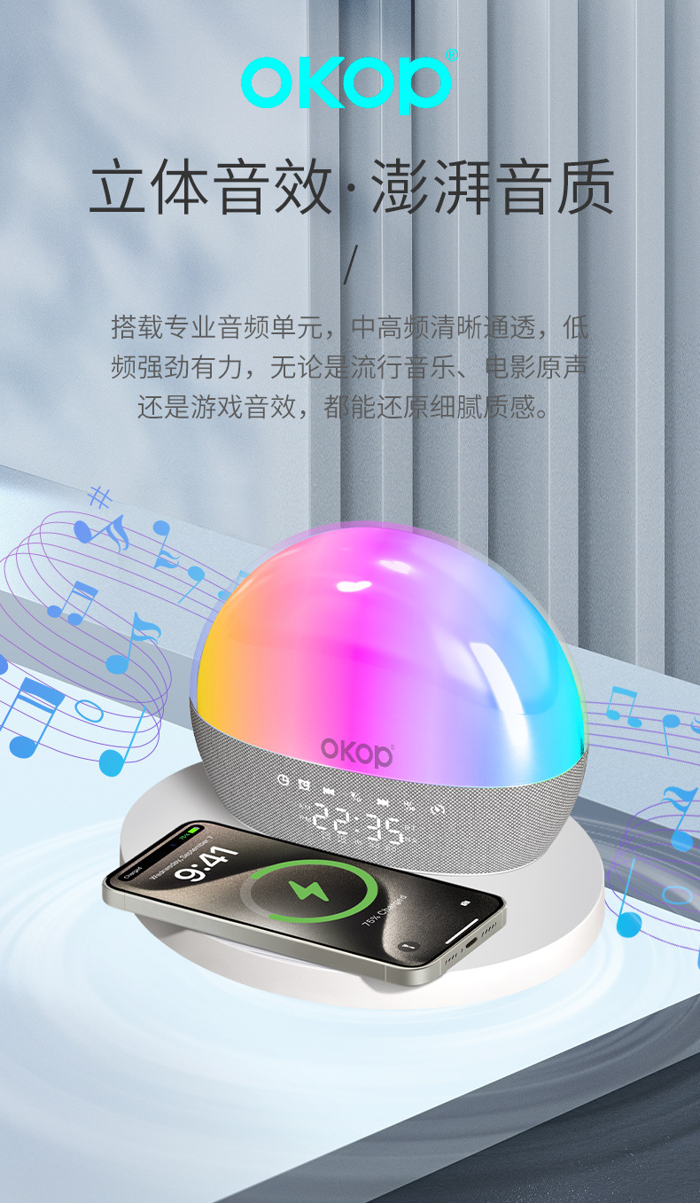 818 데스크탑 블루투스 스피커 15w 무선 충전 알람 시계 타이머 RGB 분위기 조명 화이트 노이즈 해외 인기 상품