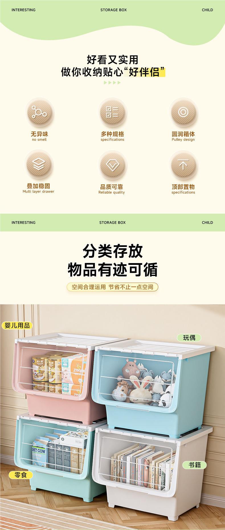 대형 플라스틱 투명 다기능 아기 간식 도서 보관 캐비닛이있는 대형 어린이 장난감 보관 상자