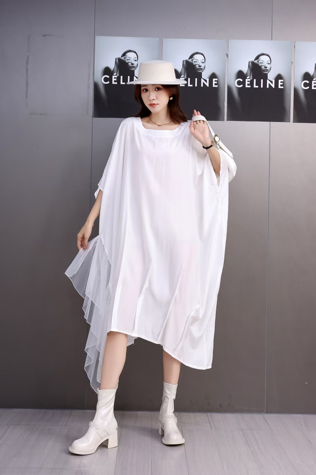 니치 디자인 2025 여름 신작 여성 드레스 루즈한 대형 불규칙한 러플 롱 스커트 패셔너블하고 슬림함스토어 가기