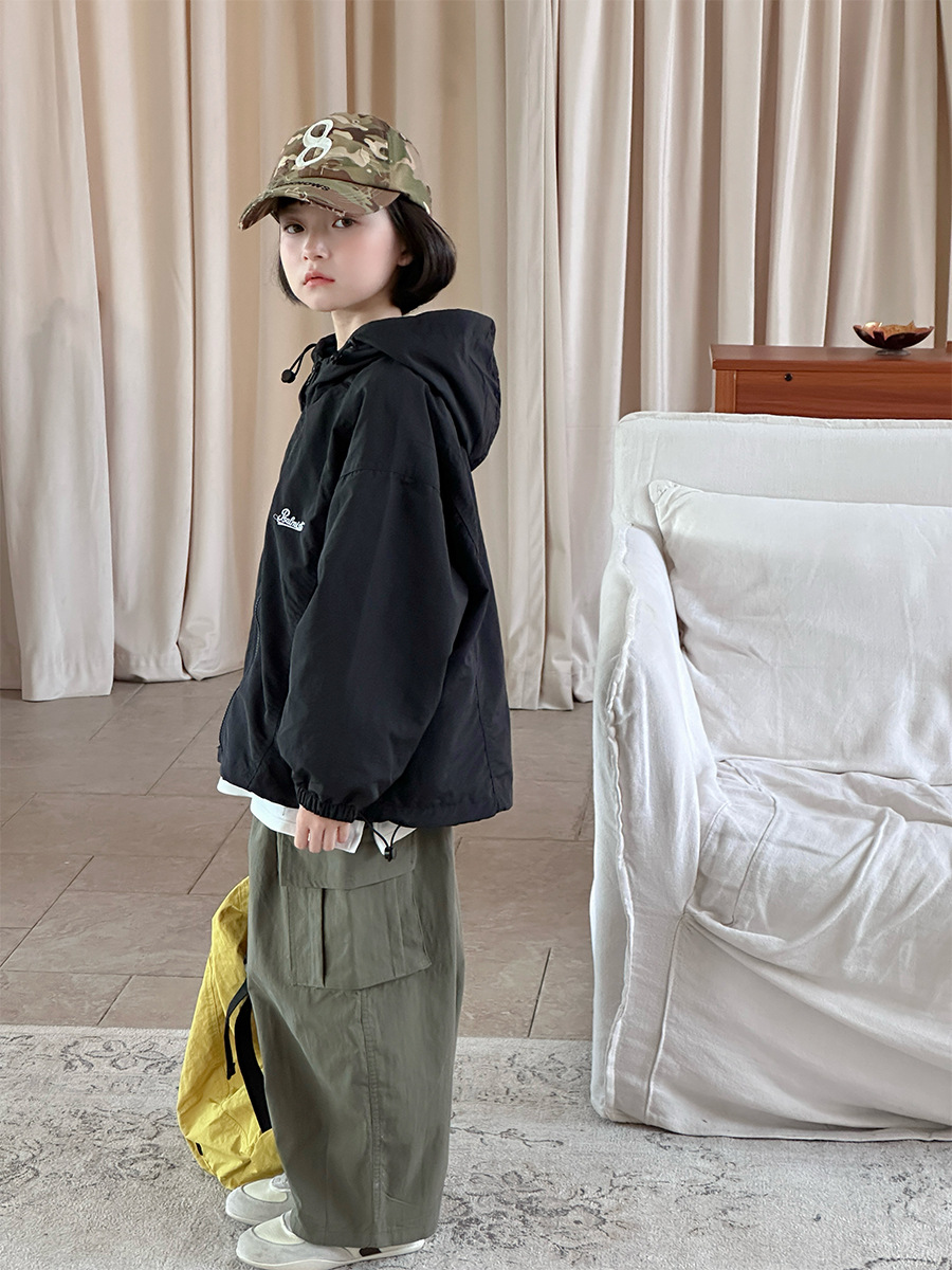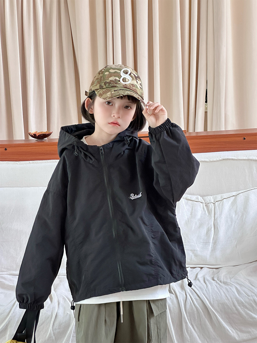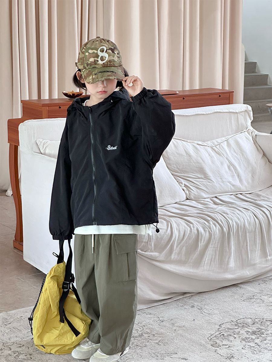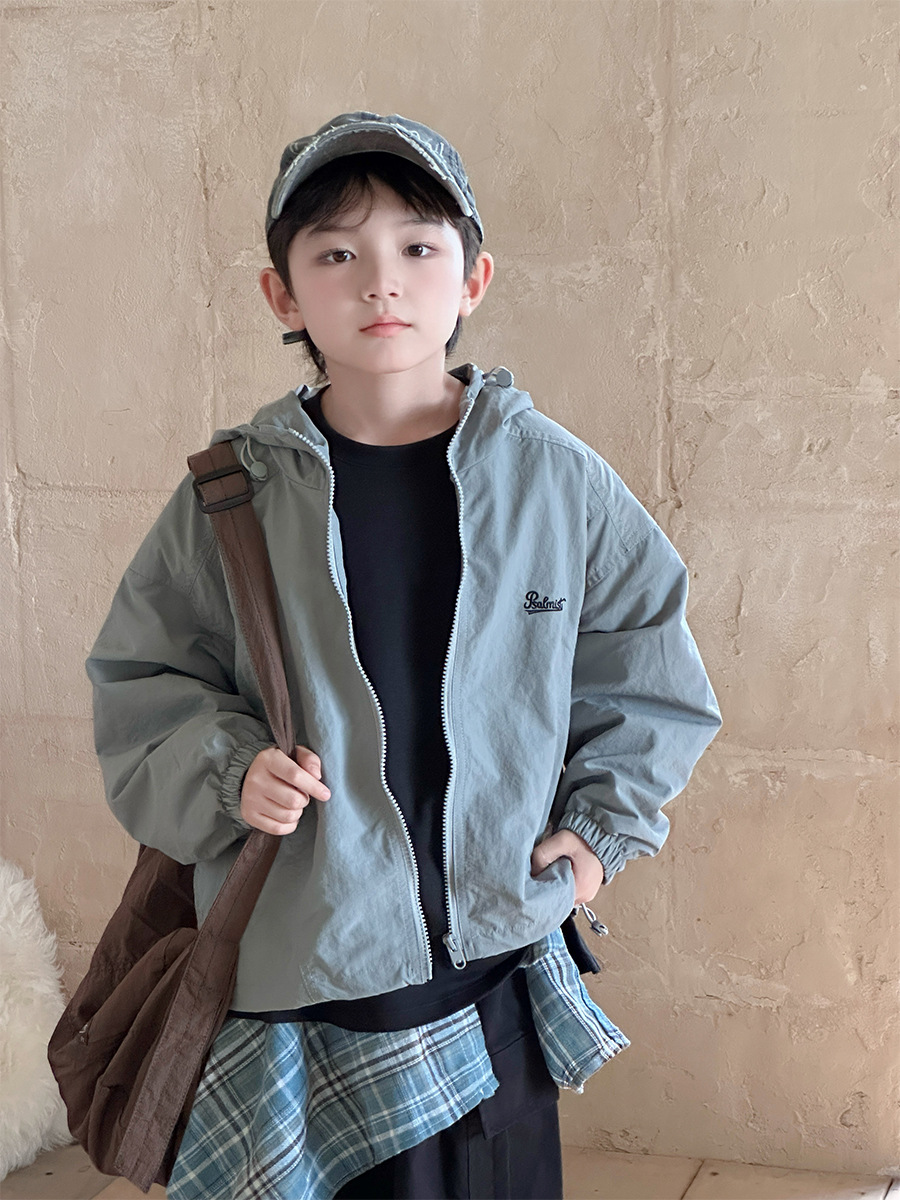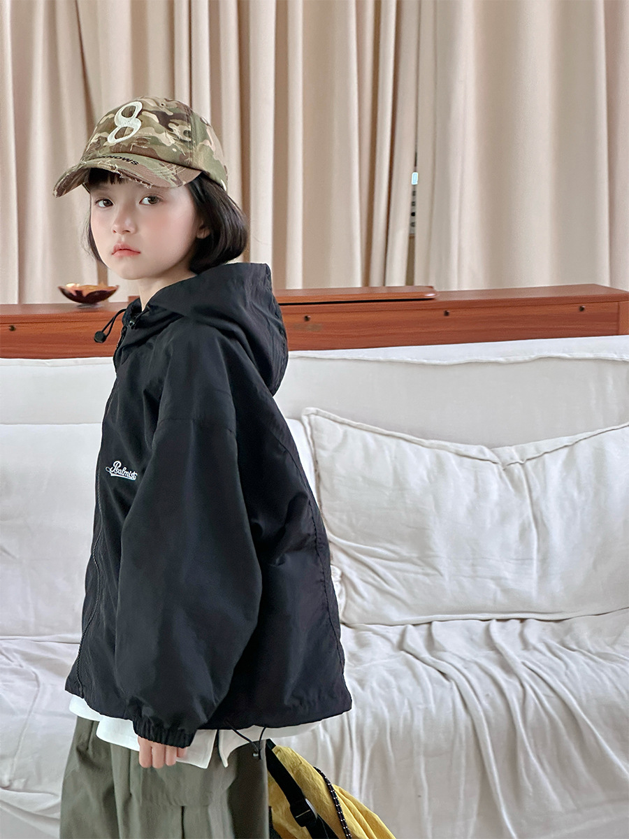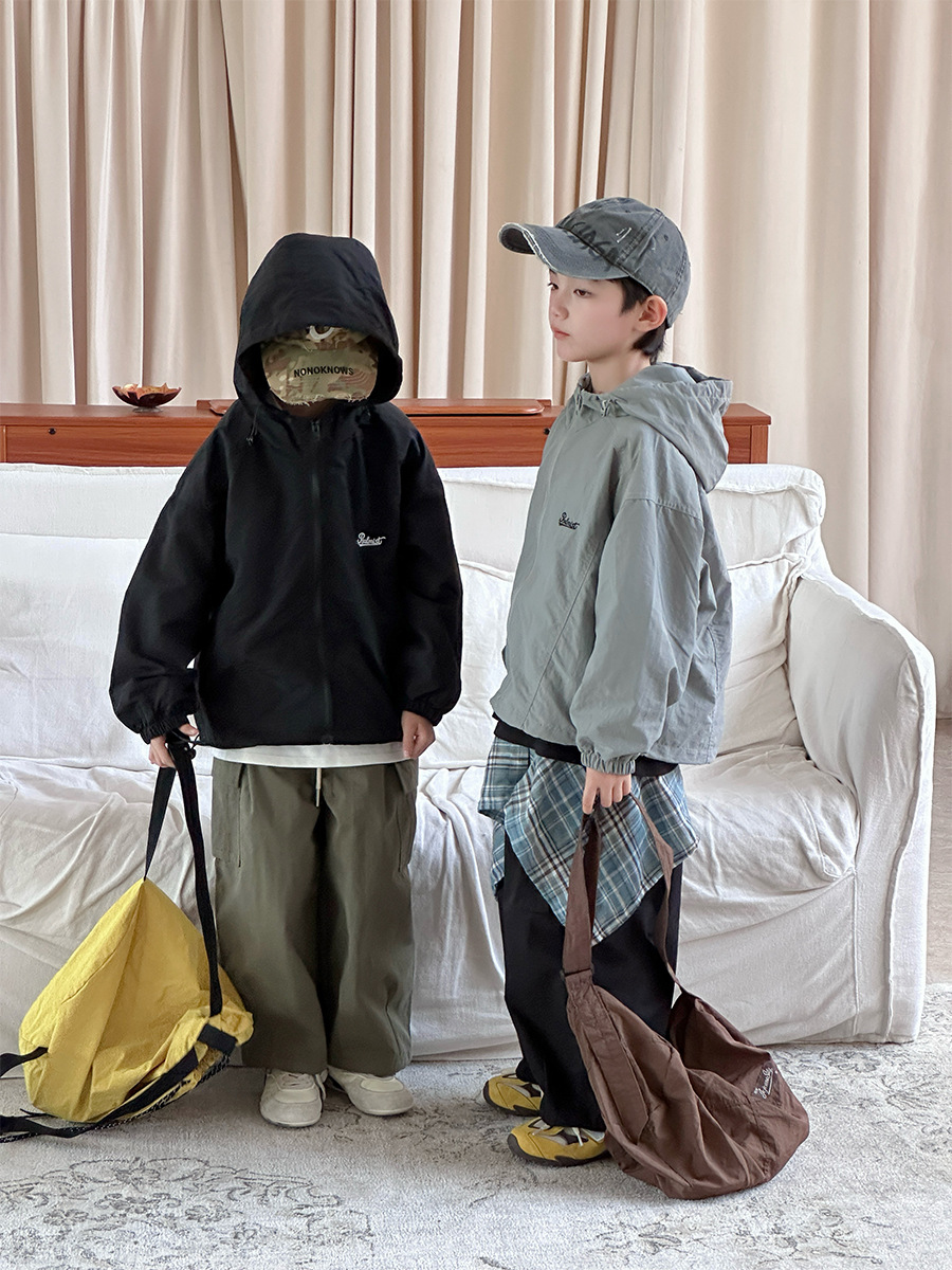 2025 새로운 가을 한국 스타일 어린이 알파벳 수 놓은 후드 재킷 소년과 소녀 야외 캐주얼 재킷 유행 스타일스토어 가기