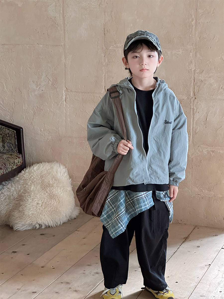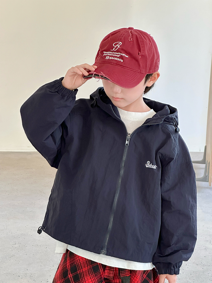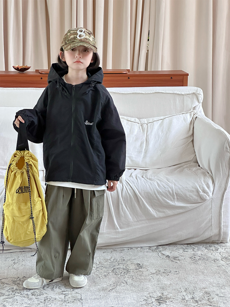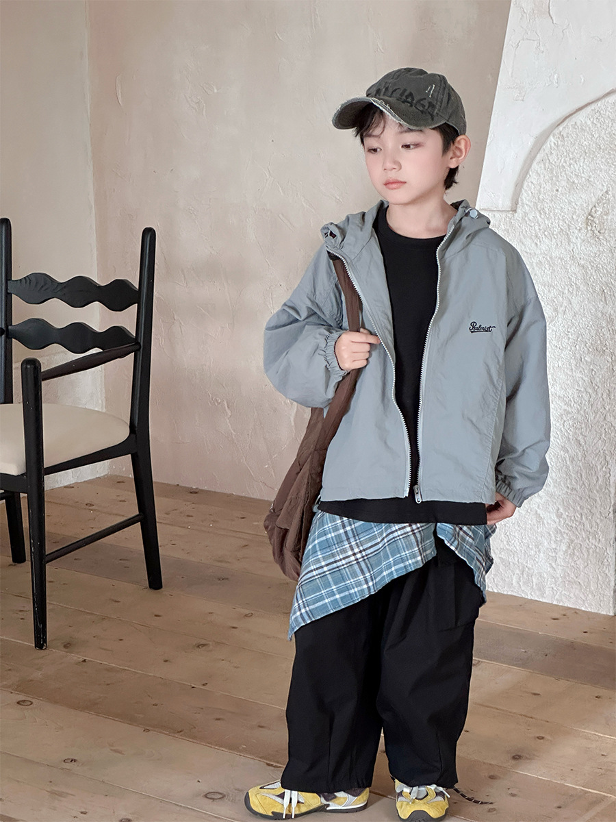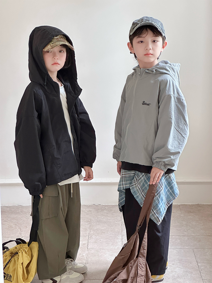 2025 새로운 가을 한국 스타일 어린이 알파벳 수 놓은 후드 재킷 소년과 소녀 야외 캐주얼 재킷 유행 스타일스토어 가기