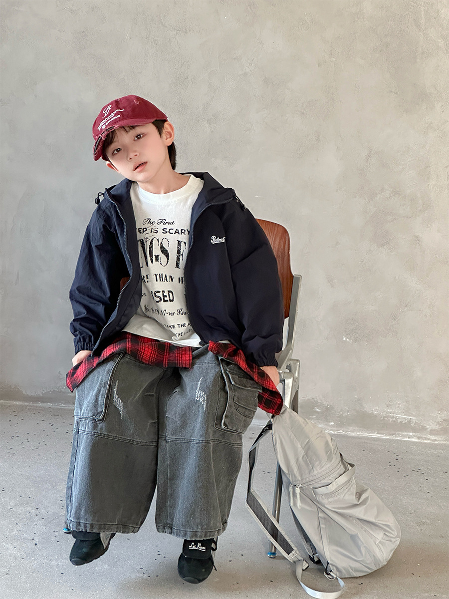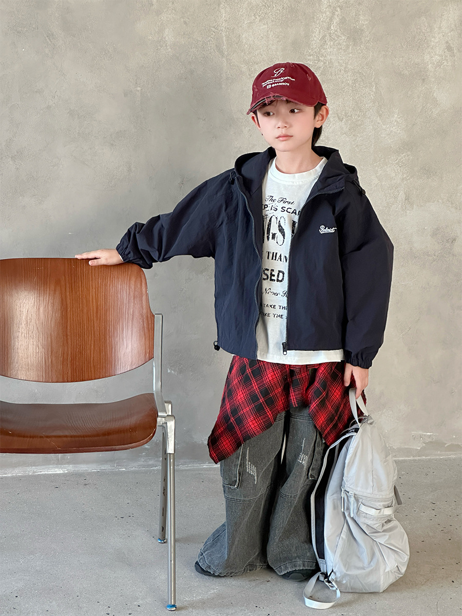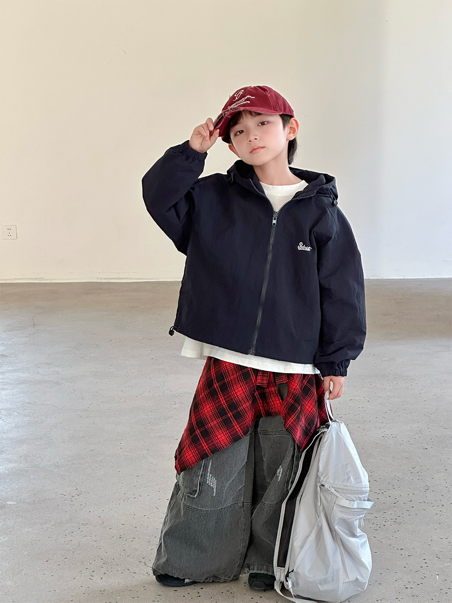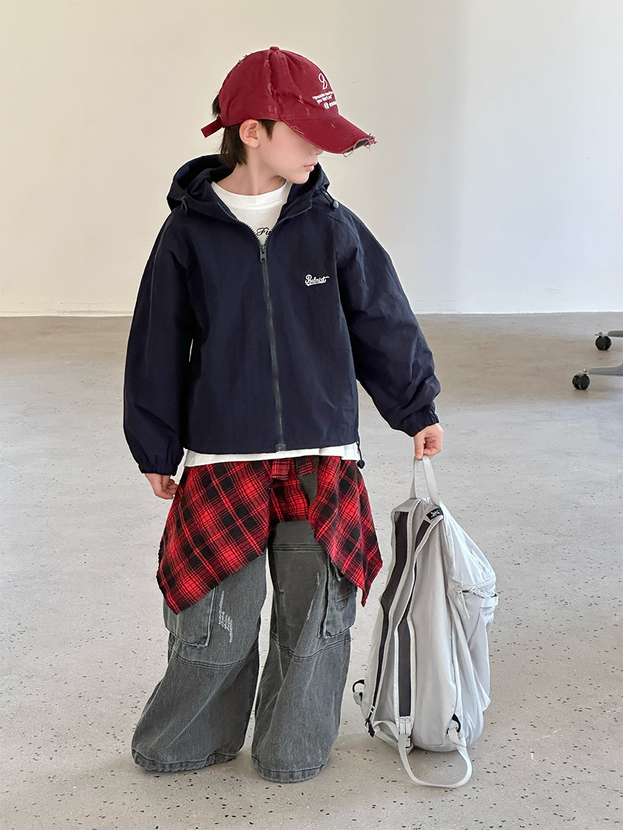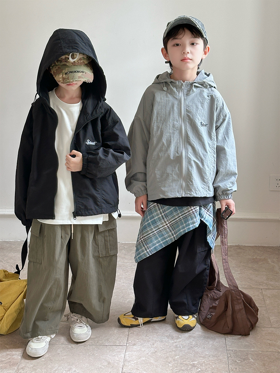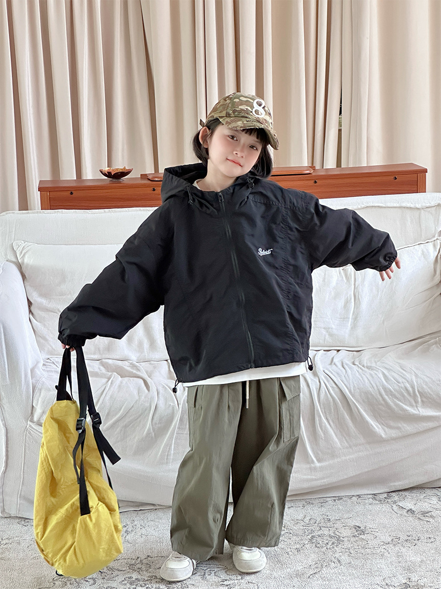 2025 새로운 가을 한국 스타일 어린이 알파벳 수 놓은 후드 재킷 소년과 소녀 야외 캐주얼 재킷 유행 스타일스토어 가기