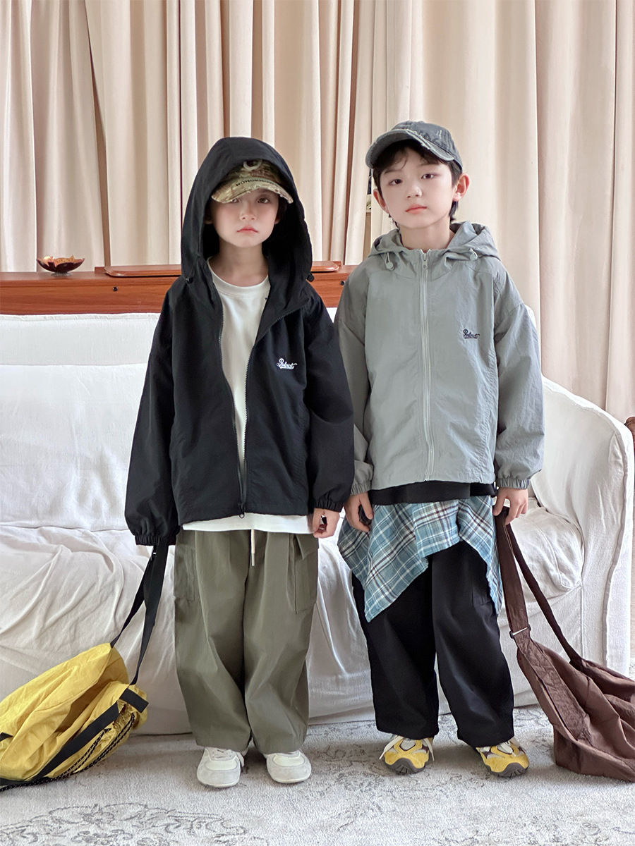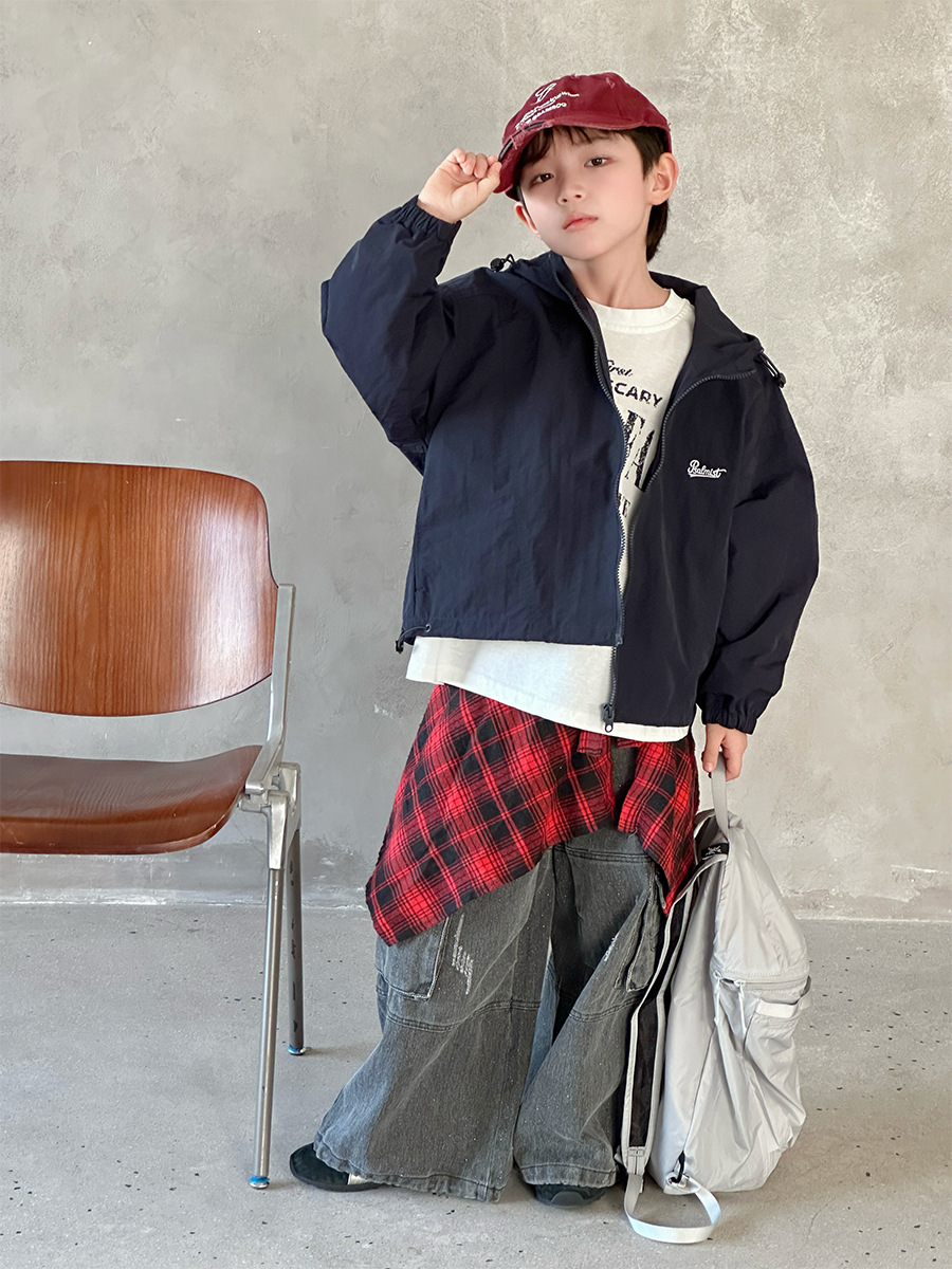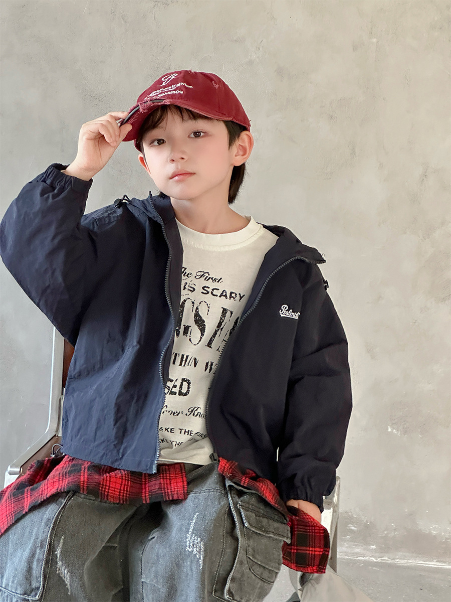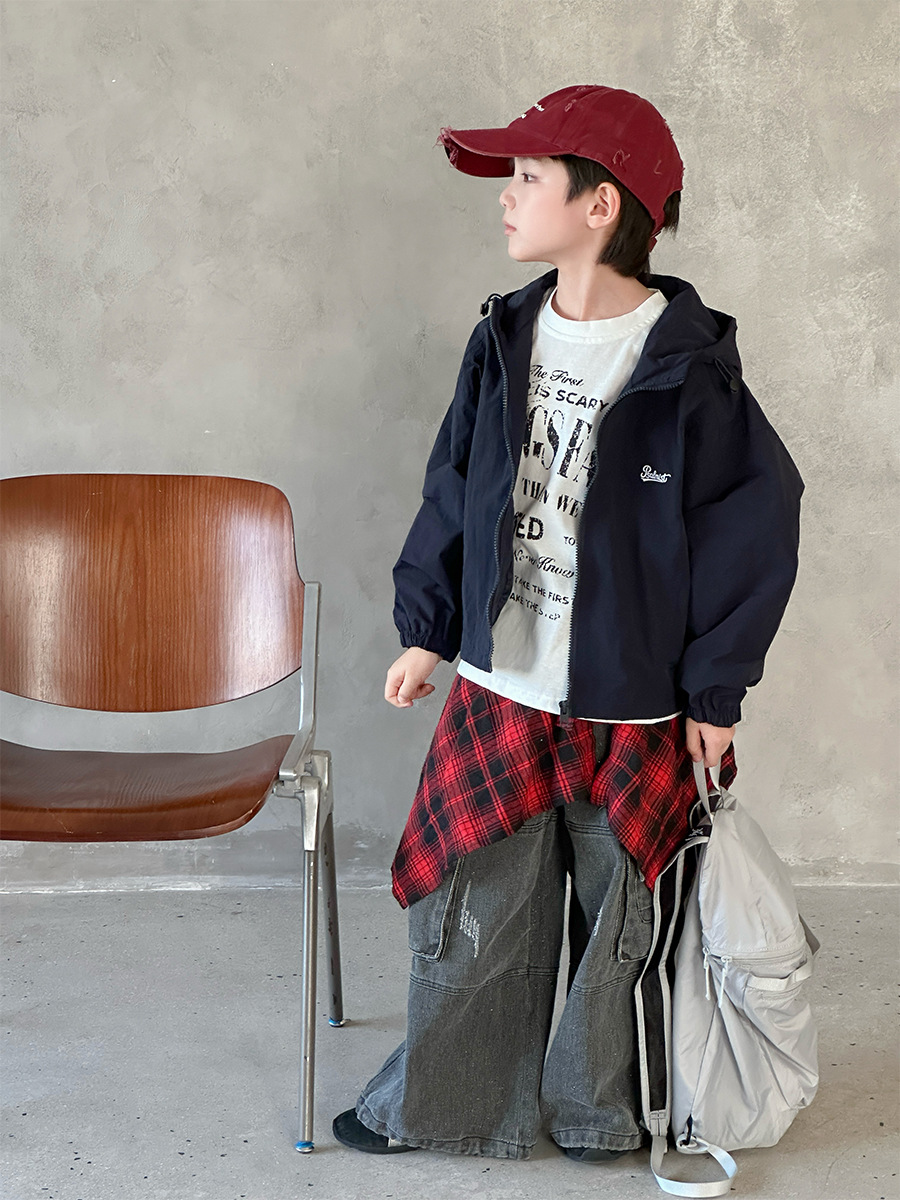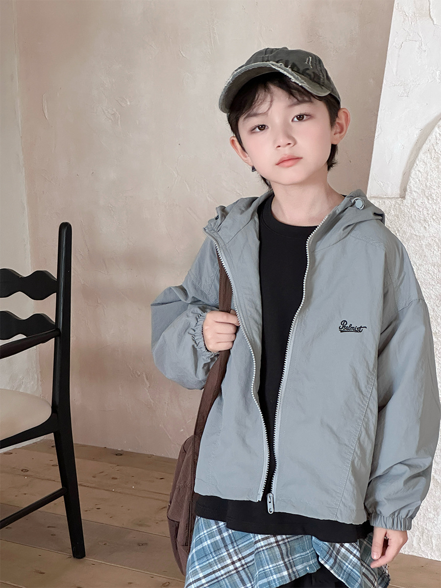 2025 새로운 가을 한국 스타일 어린이 알파벳 수 놓은 후드 재킷 소년과 소녀 야외 캐주얼 재킷 유행 스타일스토어 가기