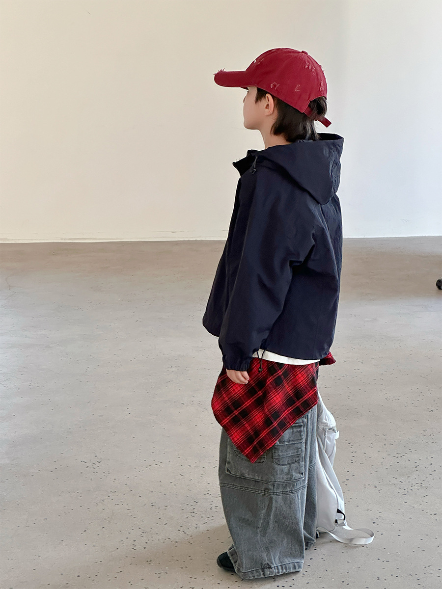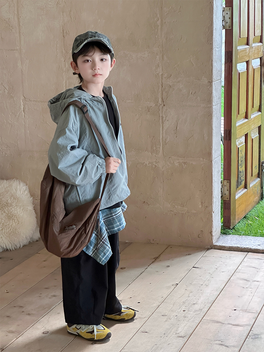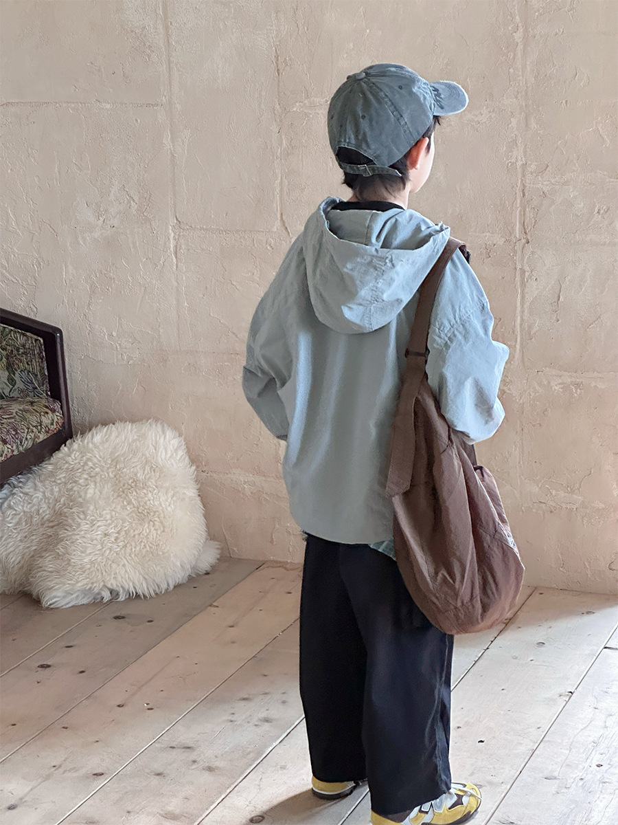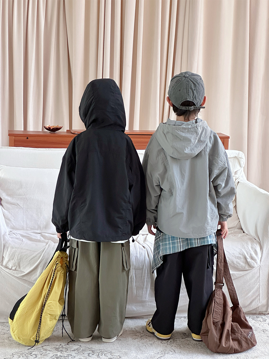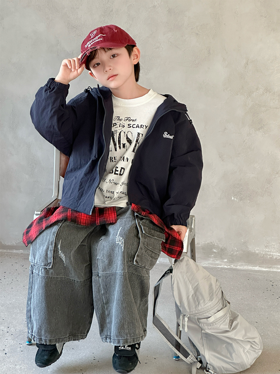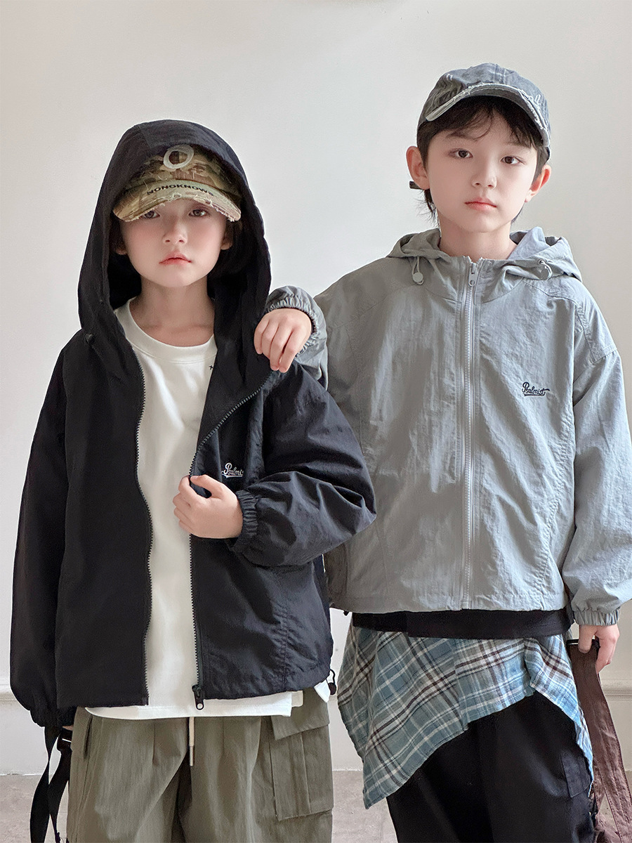 2025 새로운 가을 한국 스타일 어린이 알파벳 수 놓은 후드 재킷 소년과 소녀 야외 캐주얼 재킷 유행 스타일스토어 가기