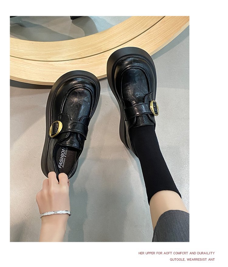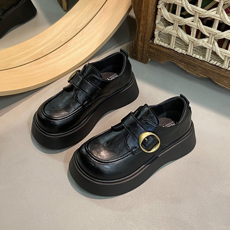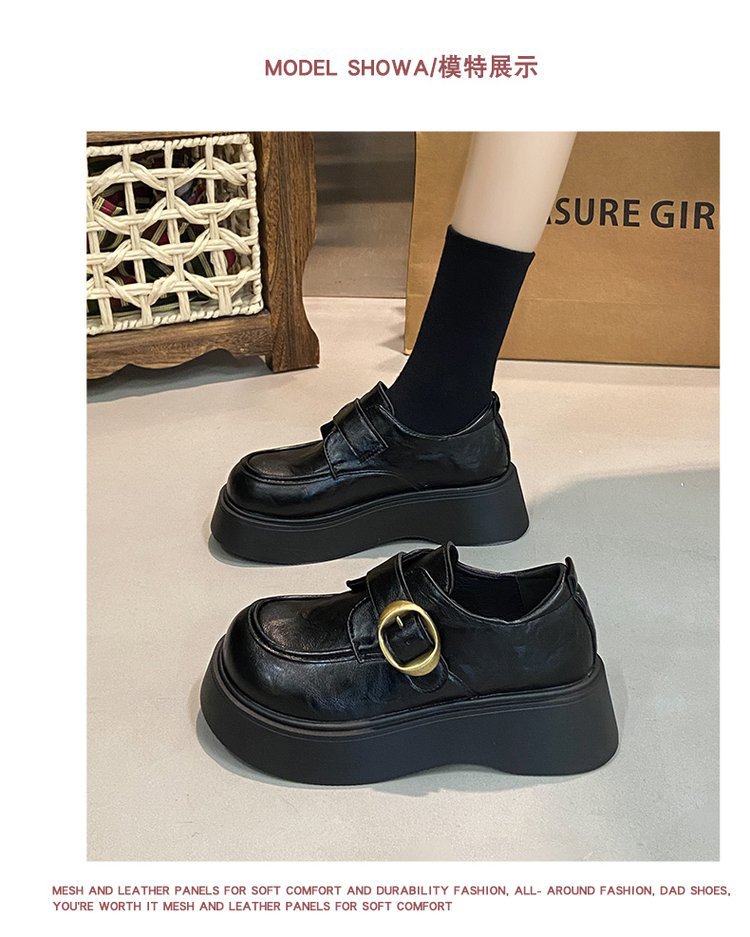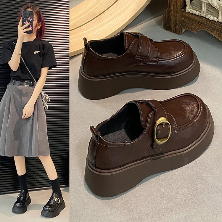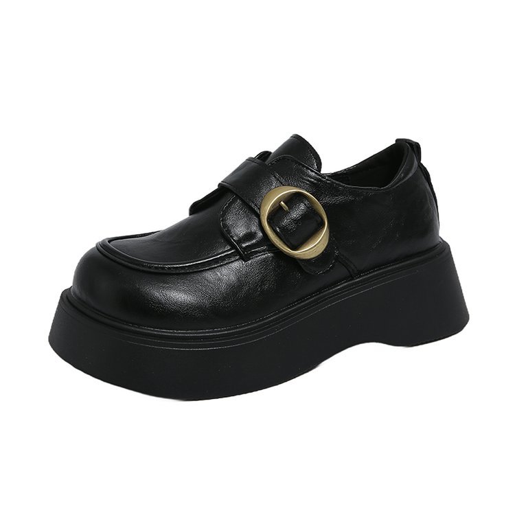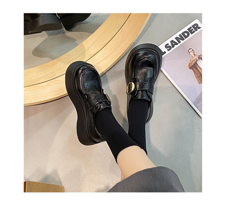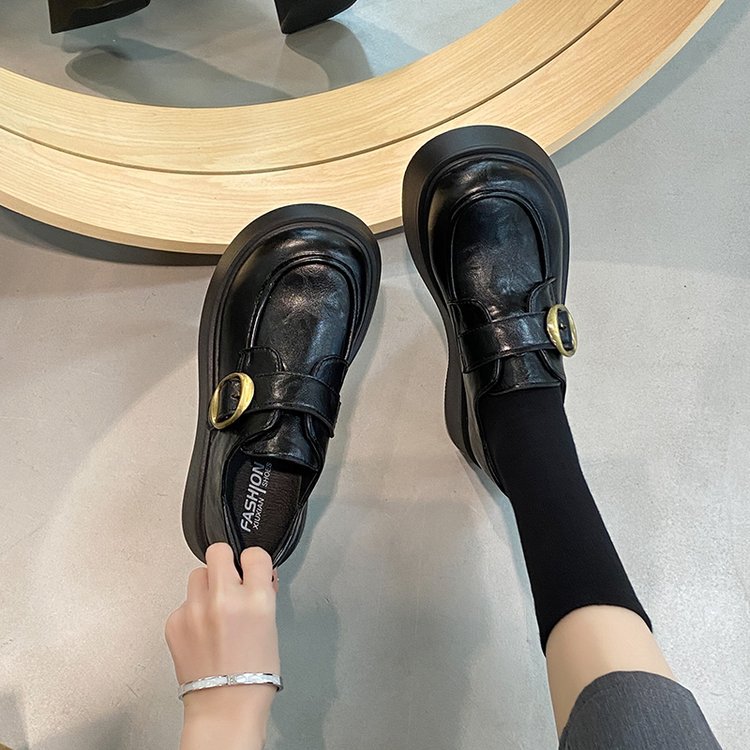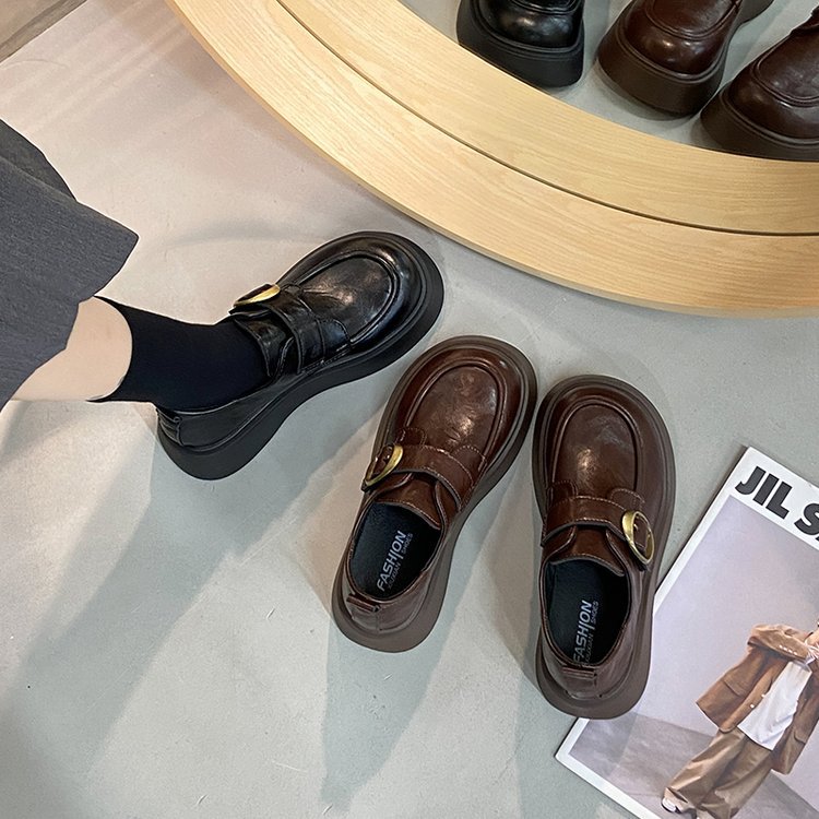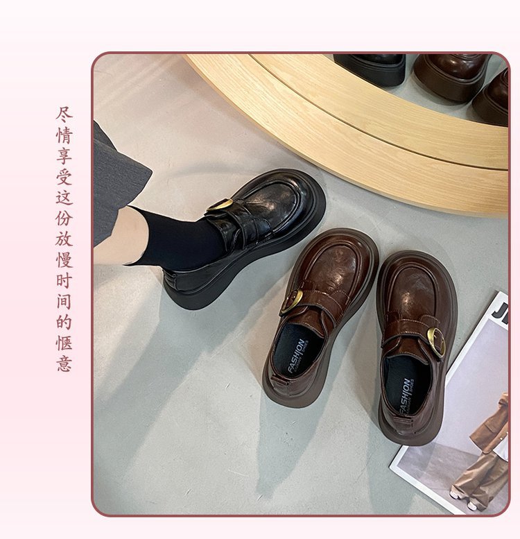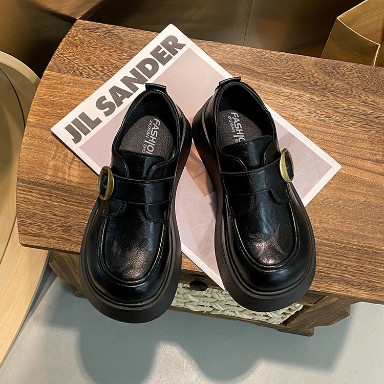 여성용 블랙 슬립온 로퍼 2025 봄 신작 다용도 두꺼운 밑창 신발 영국식 부드러운 밑창 작은 가죽 신발스토어 가기